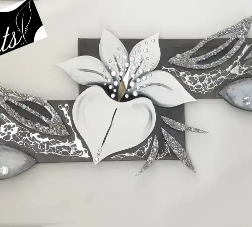 €190,00Appendiabiti D'Arredo realizzato su tela multi-materica, pronto da appendere, creato, realizzato, dipinto e Decorato a mano Artigianalmente. Impreziosito da inserti in legno arricchiti da pietre decorative glitterate, particolari a rilievo in foglia Argento Glitter e Strass. I dipinti Les Arts sono realizzati mediante la scelta di materiali di altissima qualità la tela è stesa su un telaio stondato in abete stagionato che dona al bordo un effetto cornice, le tele sono già pronte da appendere e fornite di attaccaglie per la posa in opera. Prodotto 100% made in italy Dimensioni tela : cm 85/90 × 44/47 circa Tempi di realizzazione 10/15 giorni lavorativi circa dal momento dell'ordine Per maggiori informazioni WhatsApp 328-9210448