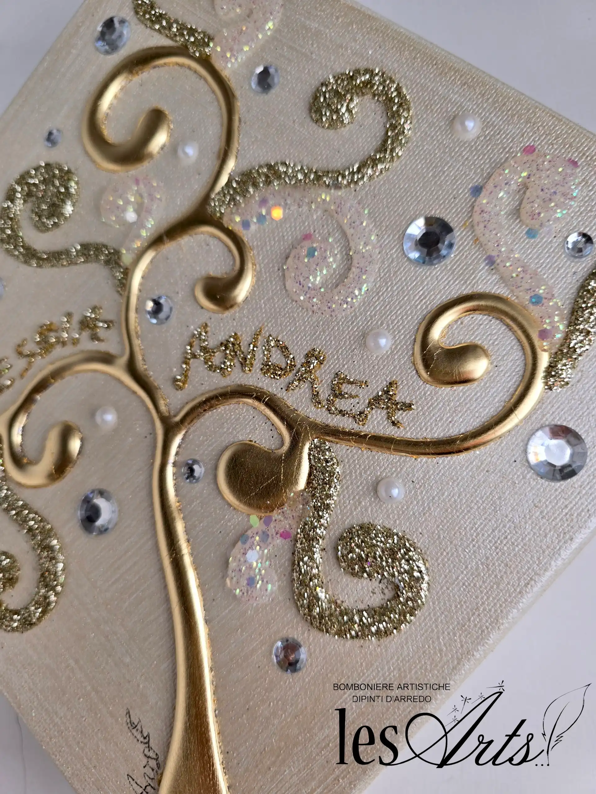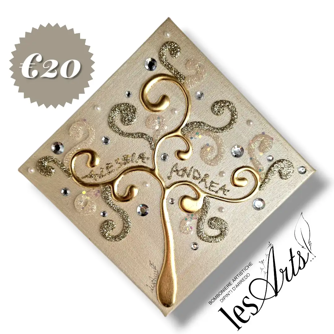 Albero della Vita Interamente realizzato dipinto e decorato a mano su tela gallery misura 20x20..appesa a rombo. Impreziosito da particolari in foglia oro, glitter, strass e perline.