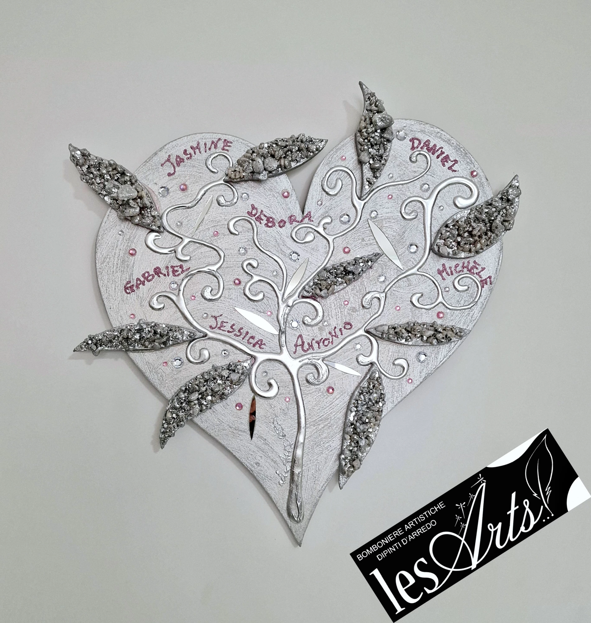 Albero della Vita Interamente realizzato dipinto e decorato a mano su tavola sagomata a forma di cuore.