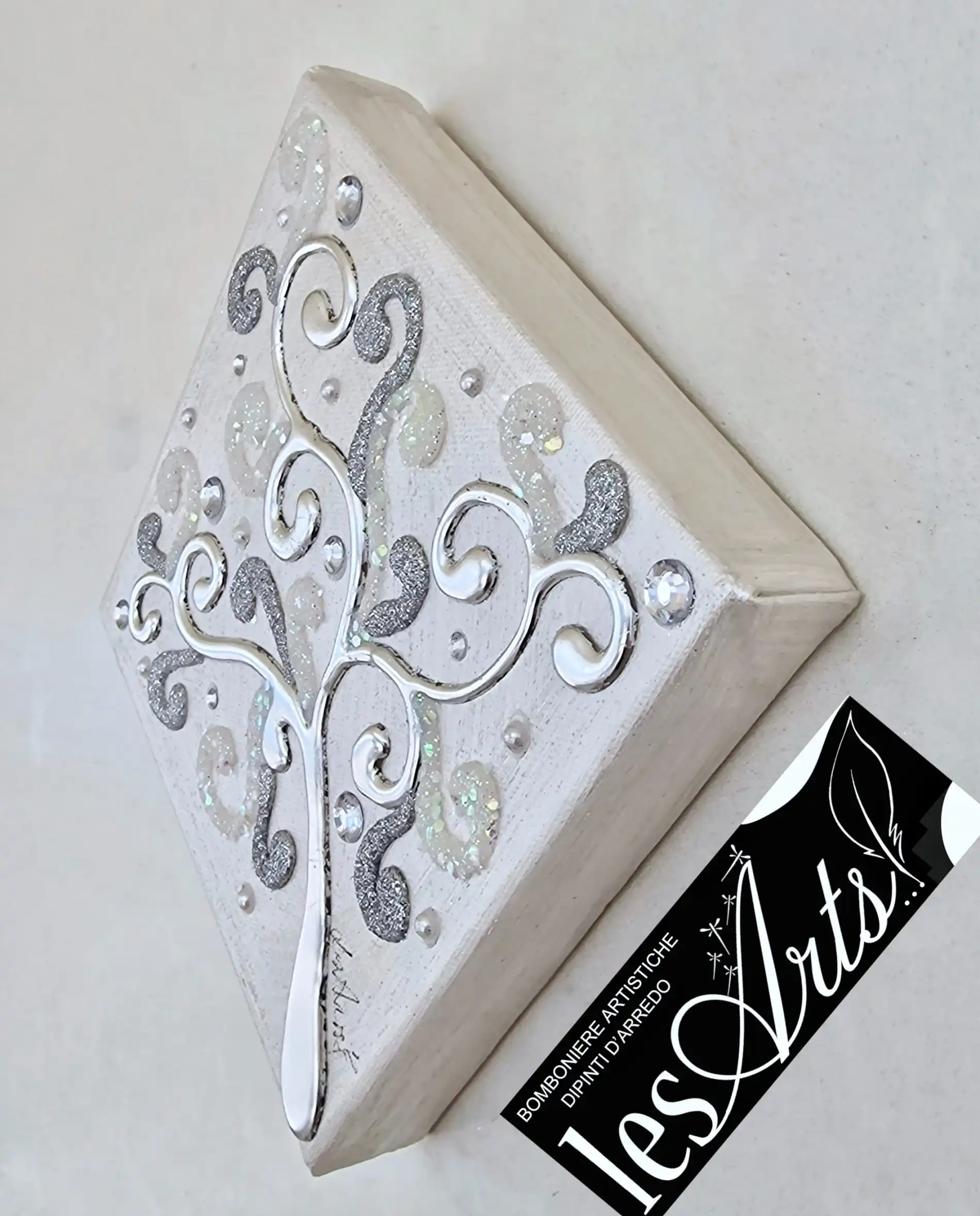 Impreziosito da particolari in foglia argento, Glitter, Strass e perline.