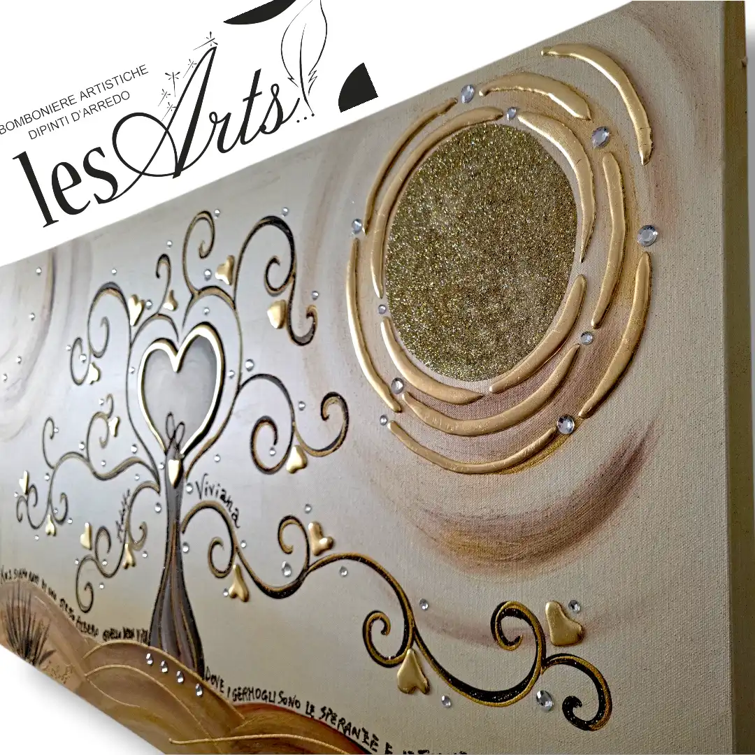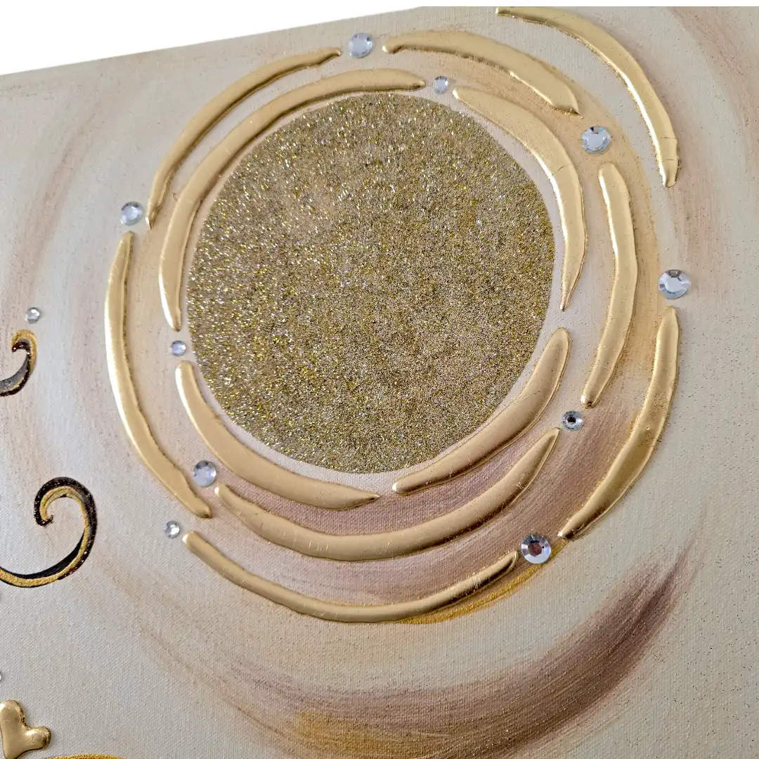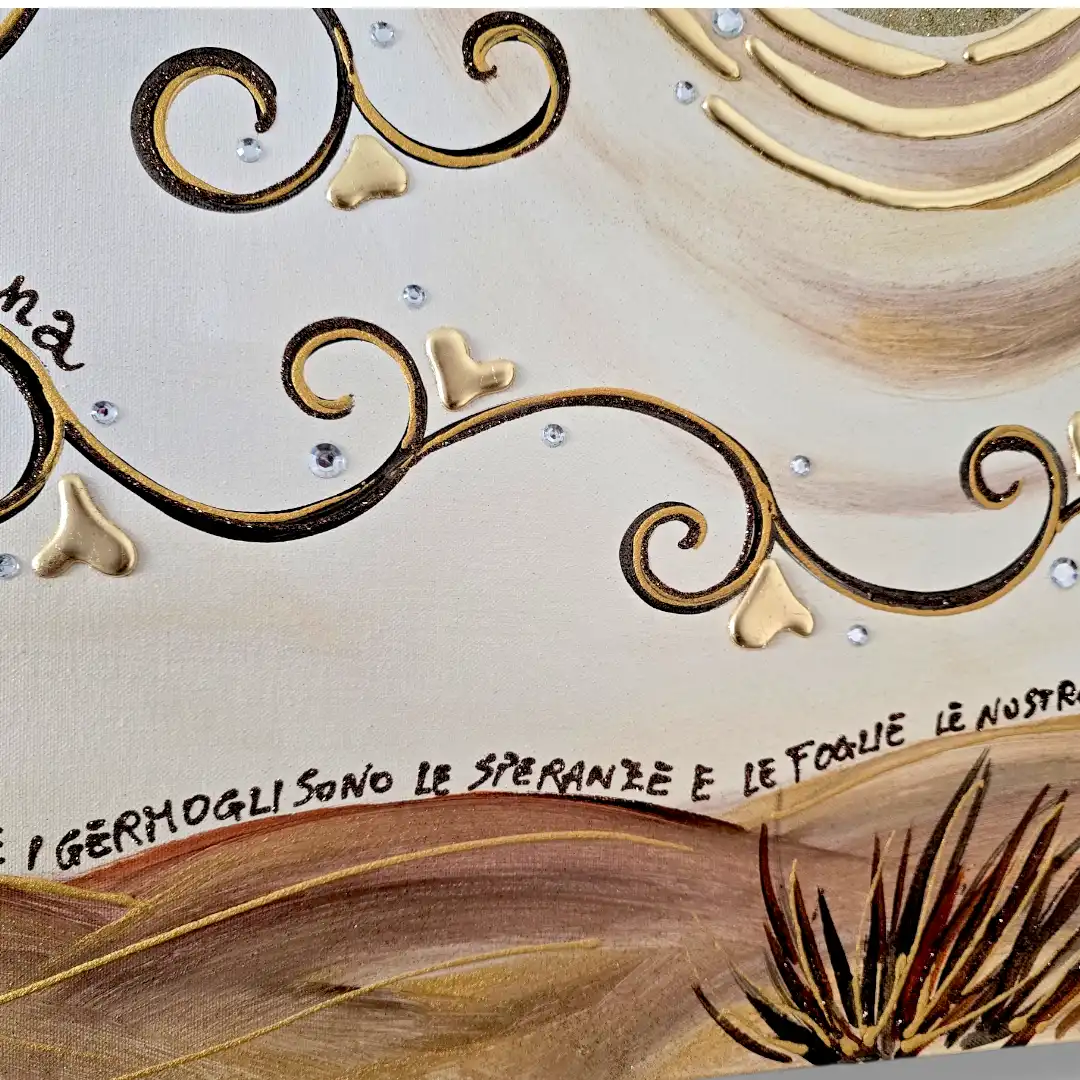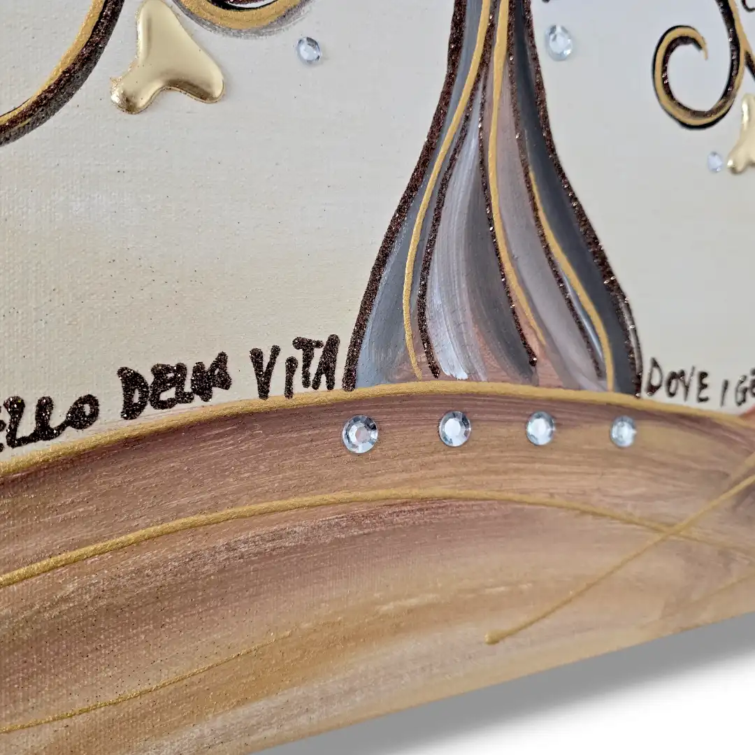 Dipinto D'Arredo realizzato su tela gallery multi-materica, realizzato , dipinto e Decorato a mano Artigianalmente. Impreziosito da particolari a rilievo in foglia Oro Glitter e Strass. I dipinti Les Arts sono realizzati mediante la scelta di materiali di altissima qualità e sono già pronti da appendere e fornite di attaccaglie per la posa in opera. Prodotto 100% made in italy Dimensioni tela gallery: cm 120x60.
