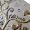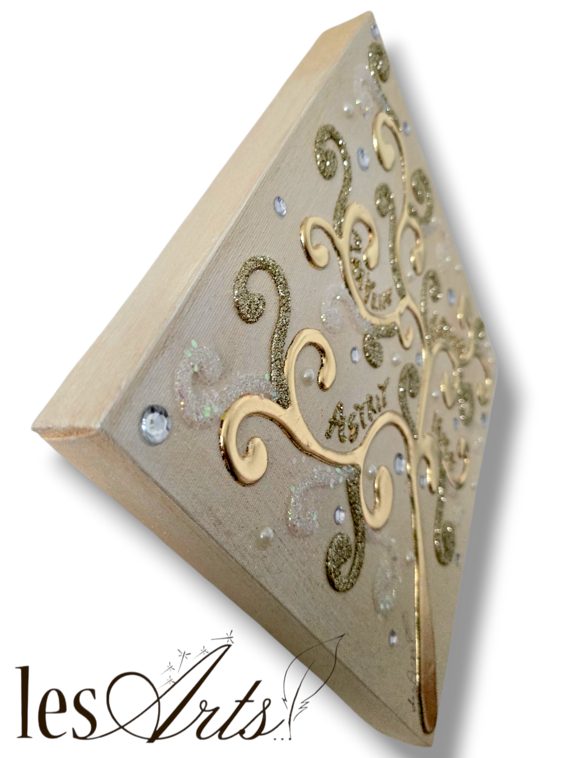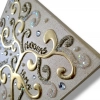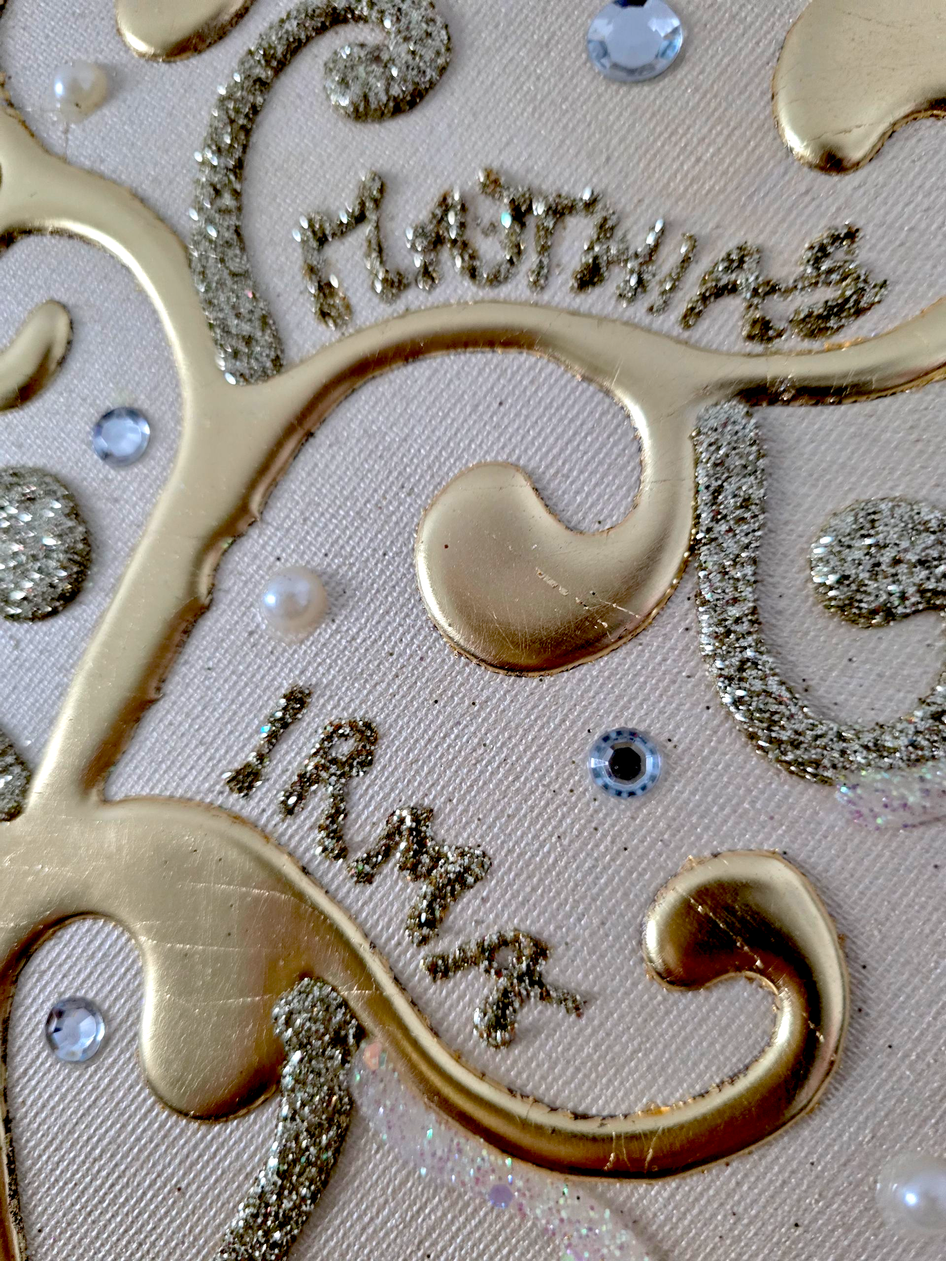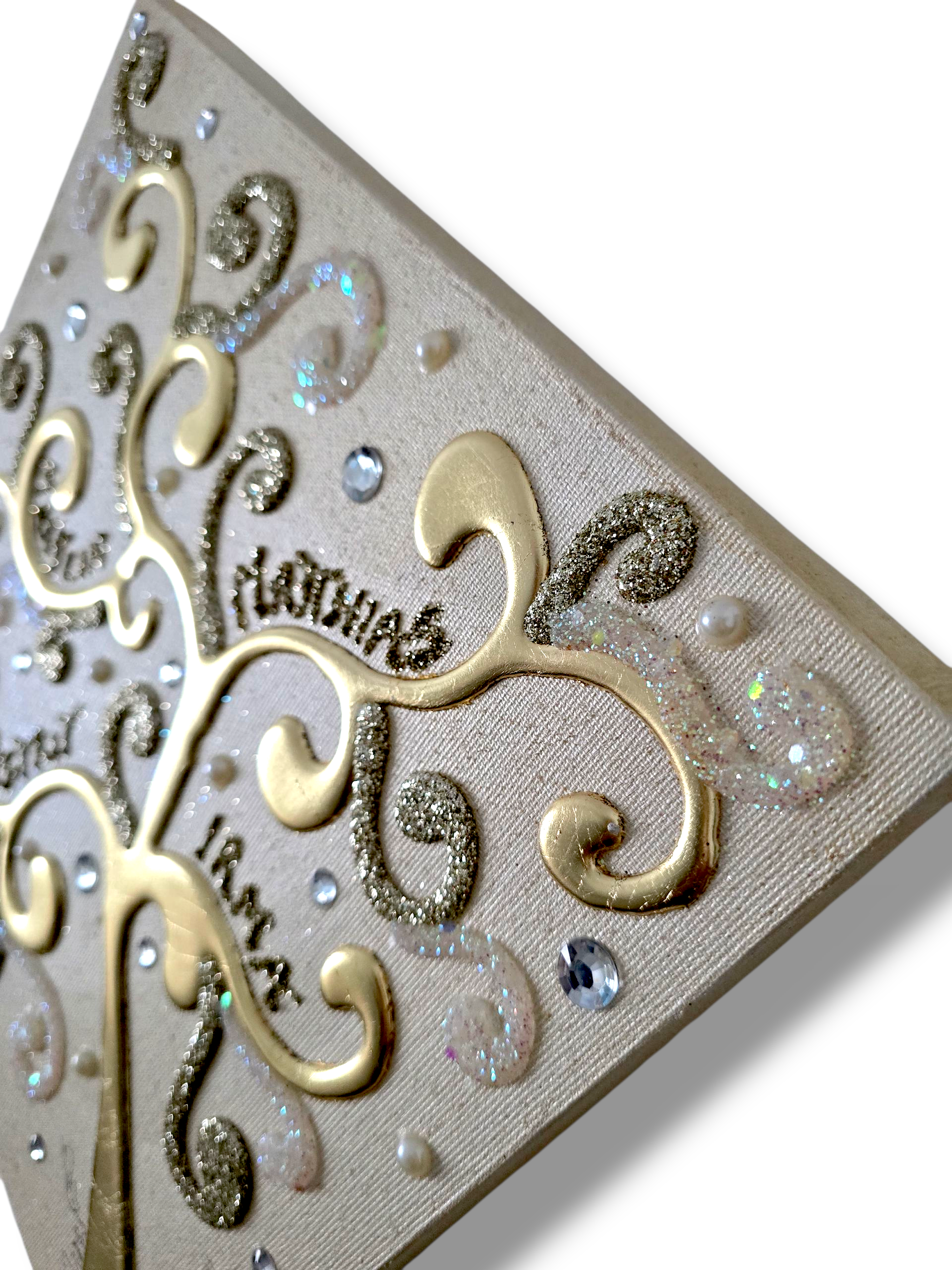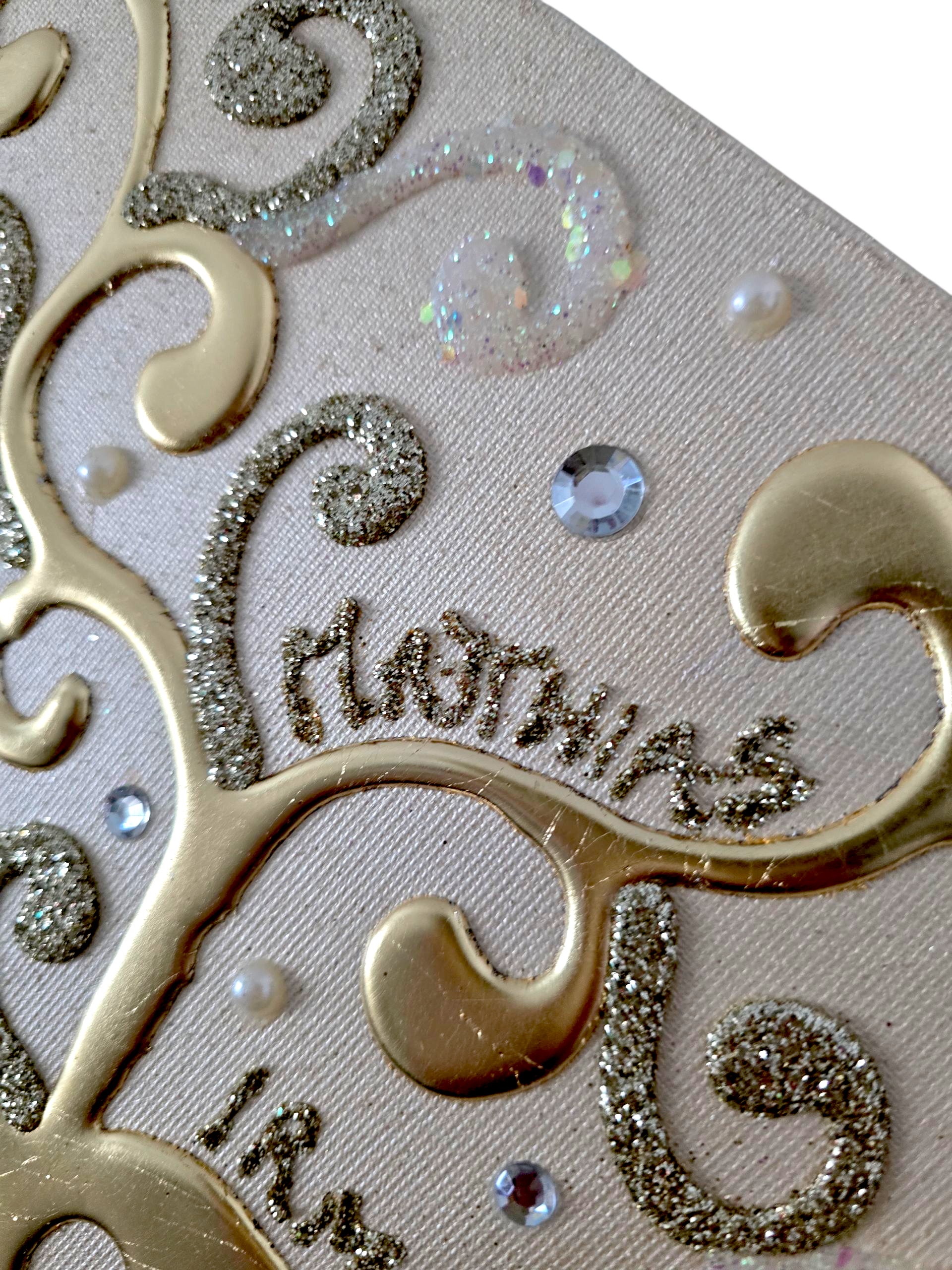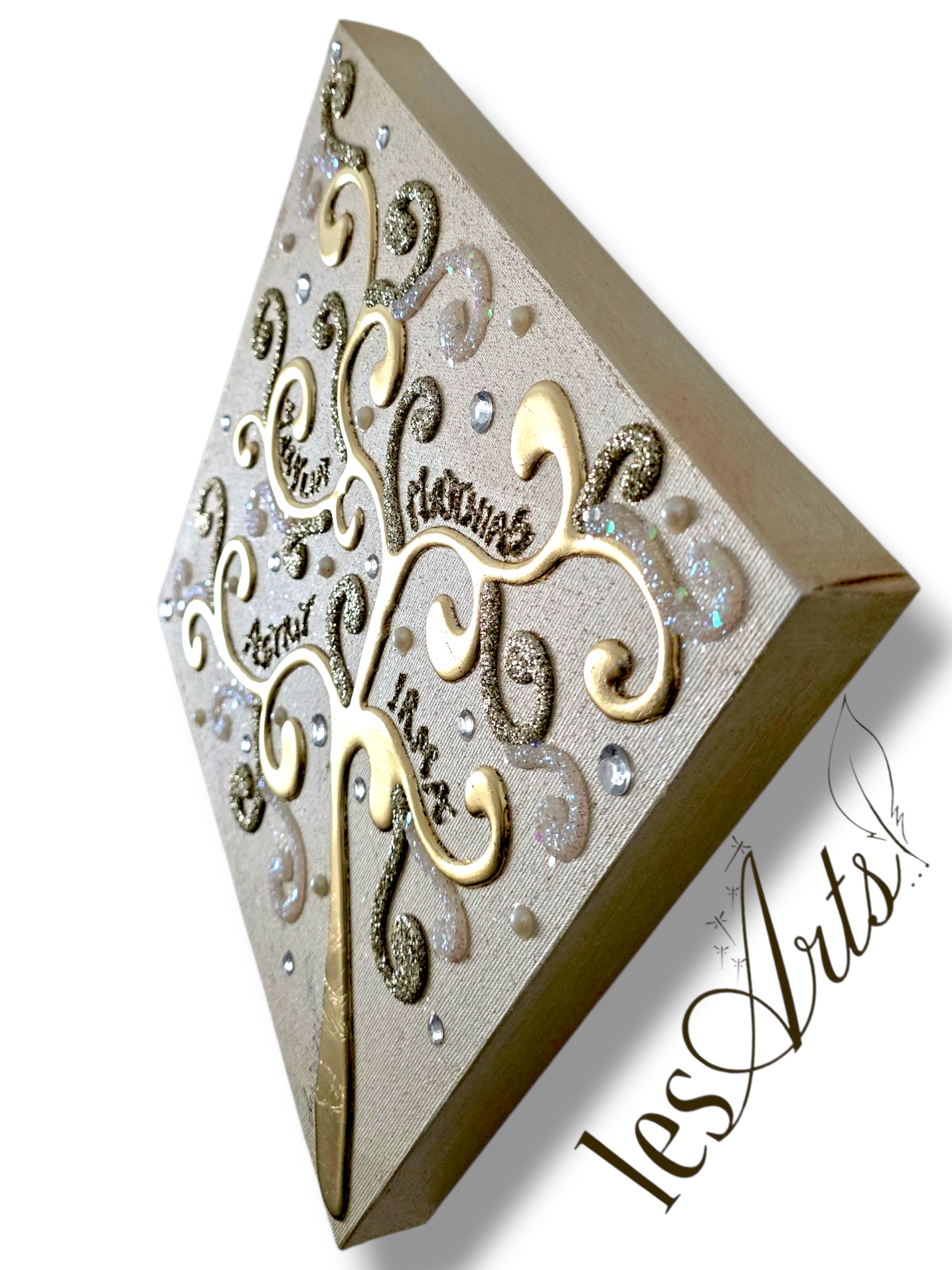 Impreziosito da particolari a rilievo in foglia Oro, Glitter , Strass e Perline.