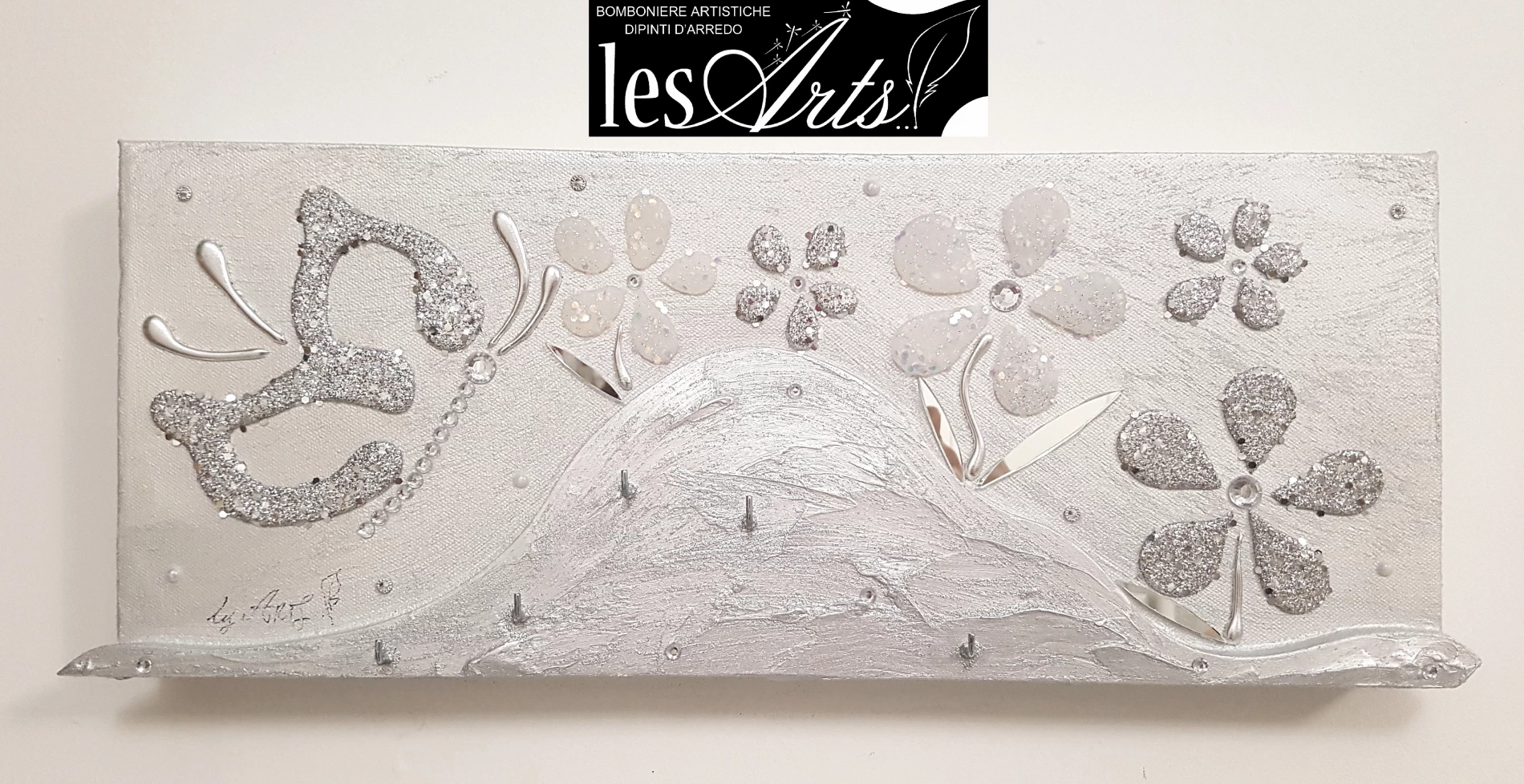 Appendichiavi d'arredo interamente realizzato dipinto e decorato a mano su tela gallery misura 20x50. Impreziosito da particolari in foglia argento..glitter..strass e specchietti. Tempi di realizzazione 7/10 gg lavorativi circa Per maggiori informazioni : WhatsApp 328-9210448