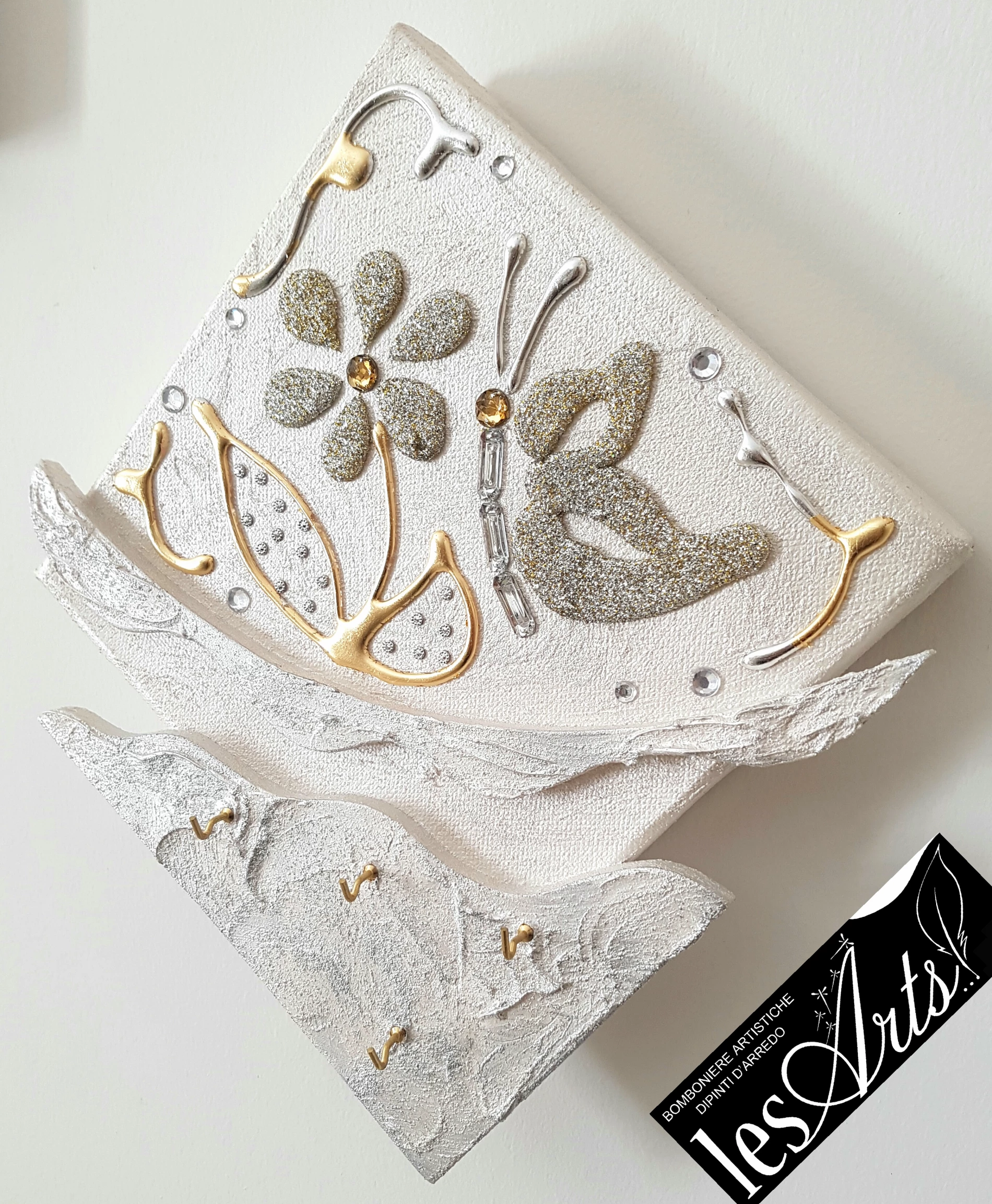 Impreziosito da particolari in foglia oro argento..glitter..strass.