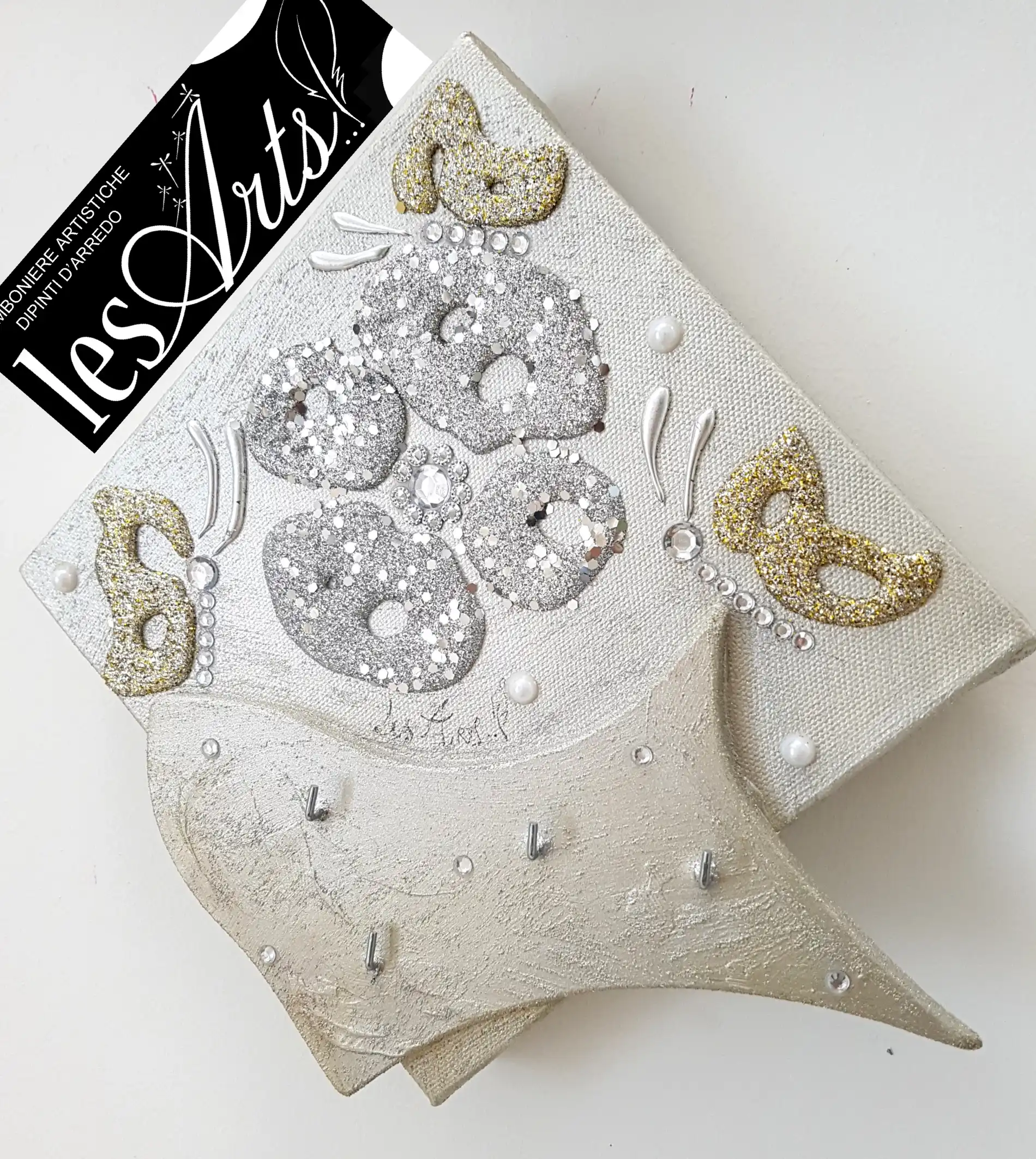 Impreziosito da particolari in foglia argento..glitter..strass e perline