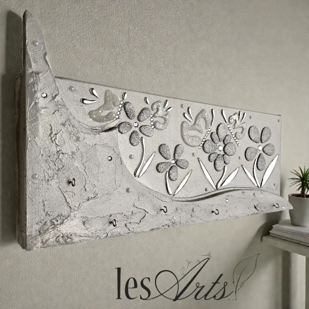 Appendichiavi D'Arredo realizzato su tela gallery multi-materica, realizzata, dipinta e Decorata a mano Artigianalmente.