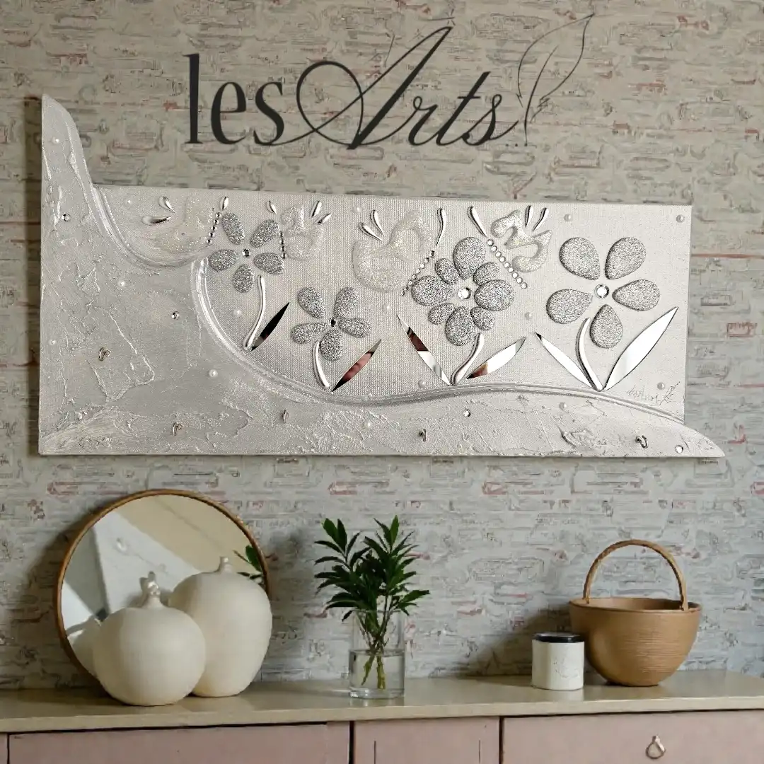 I dipinti Les Arts sono realizzati mediante la scelta di materiali di altissima qualità e sono già pronti da appendere e fornite di attaccaglie per la posa in opera.