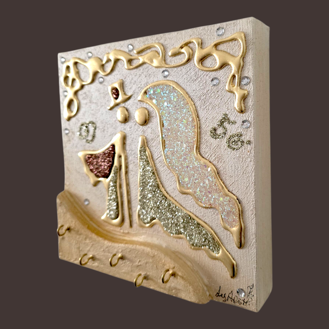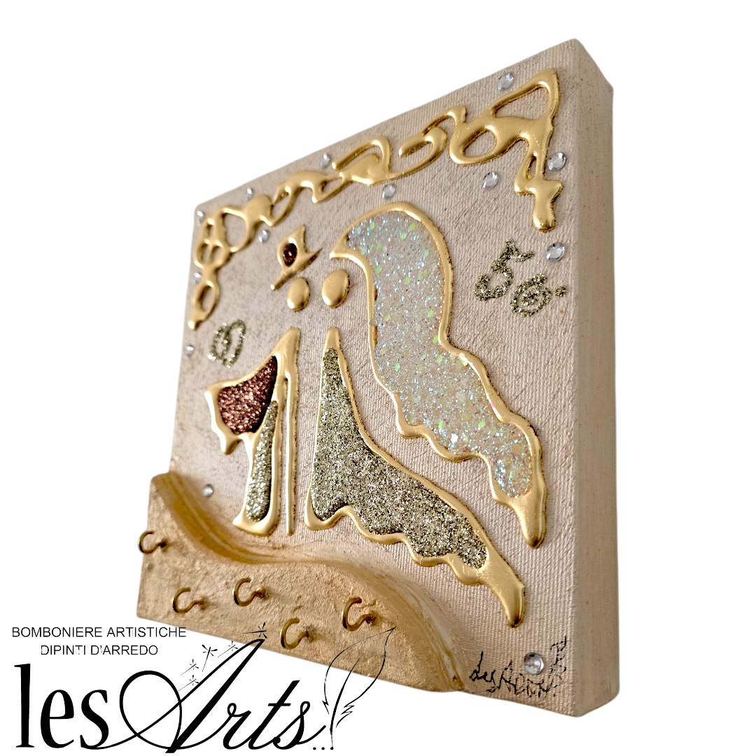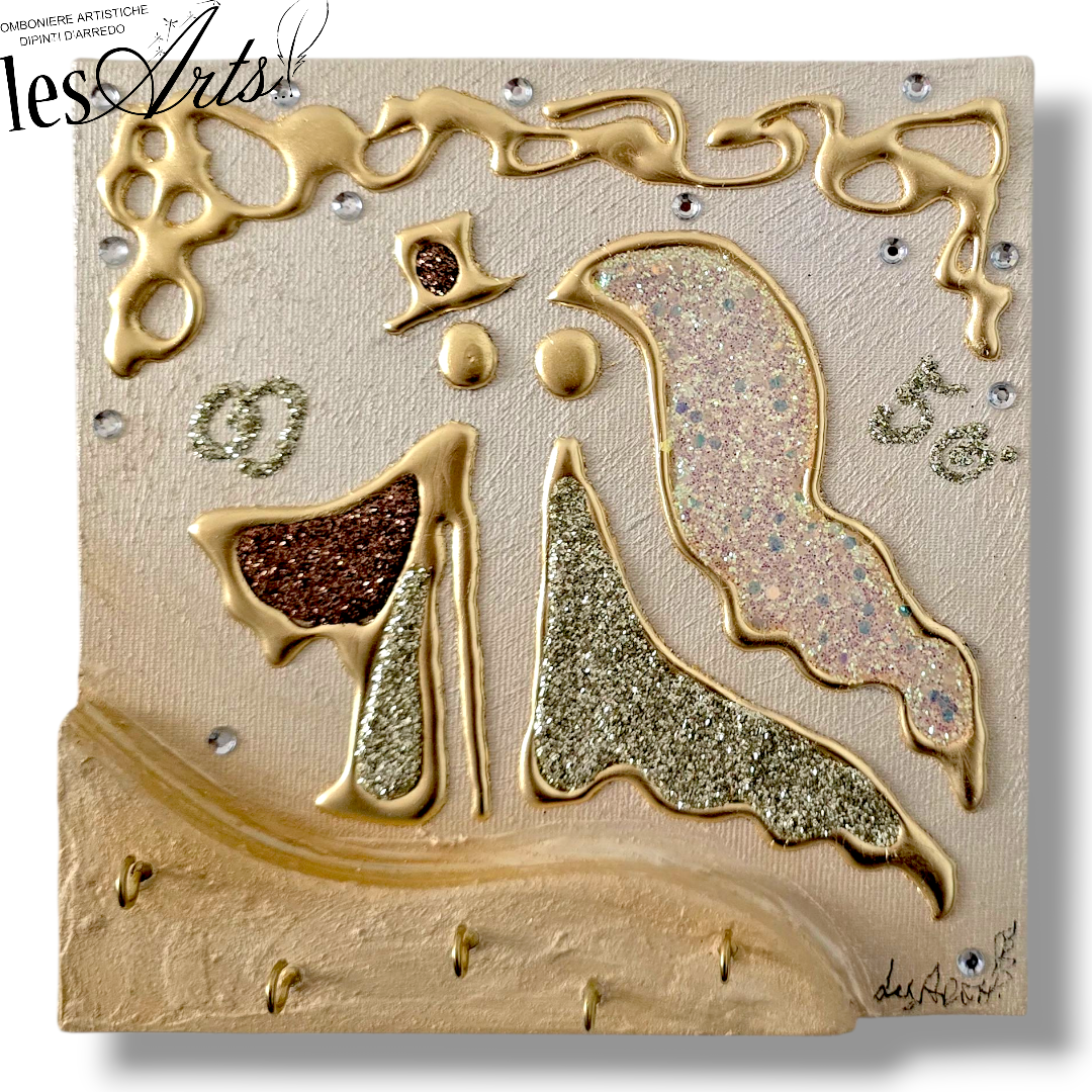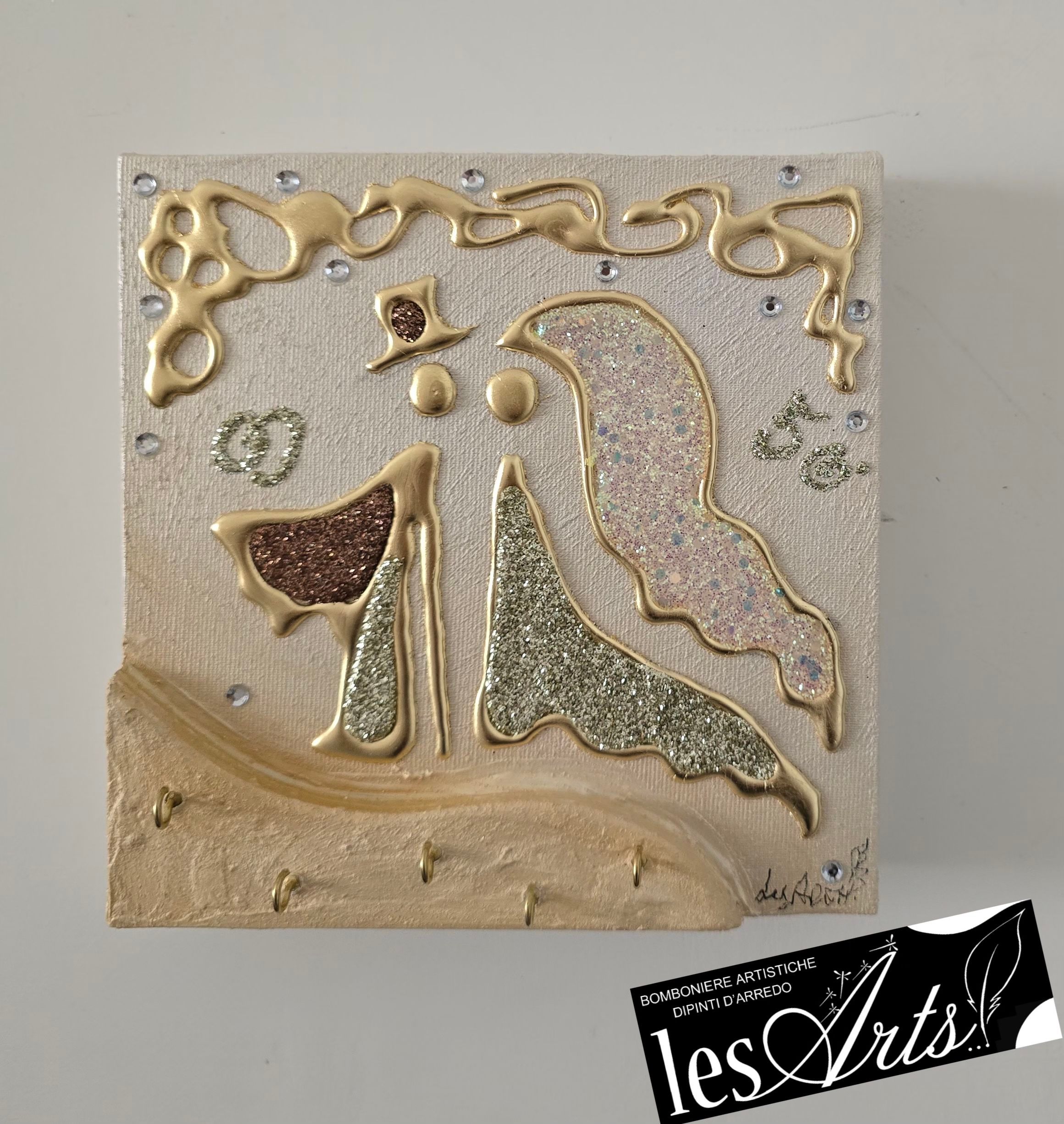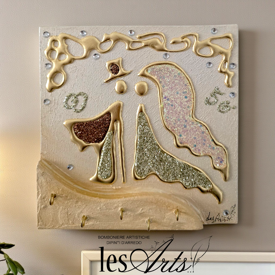 Bomboniera Artistica Appendichiavi, realizzata su tela multi-materica, pronta da appendere, creata, realizzata, dipinta e Decorata a mano Artigianalmente.
