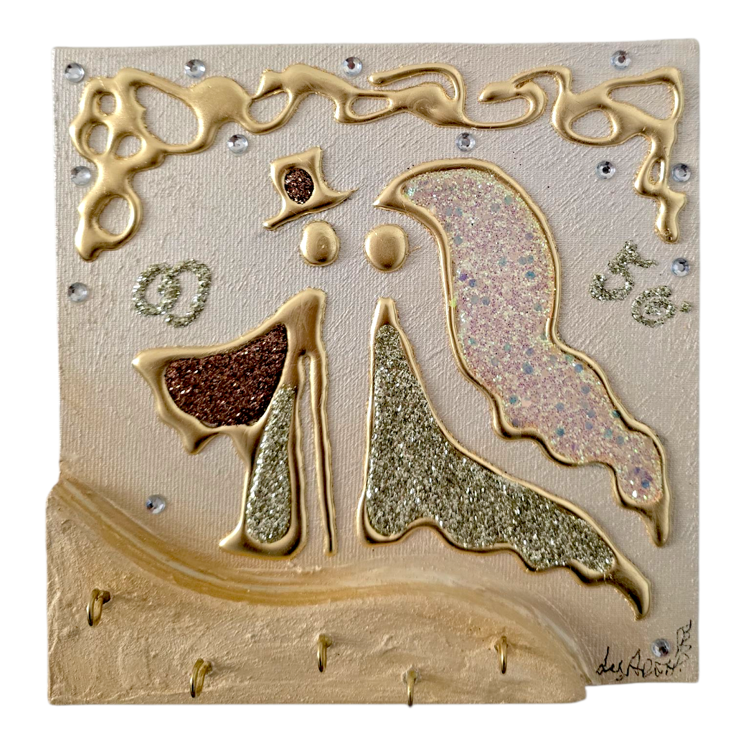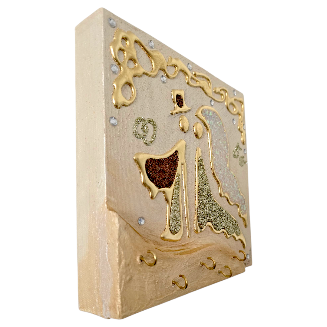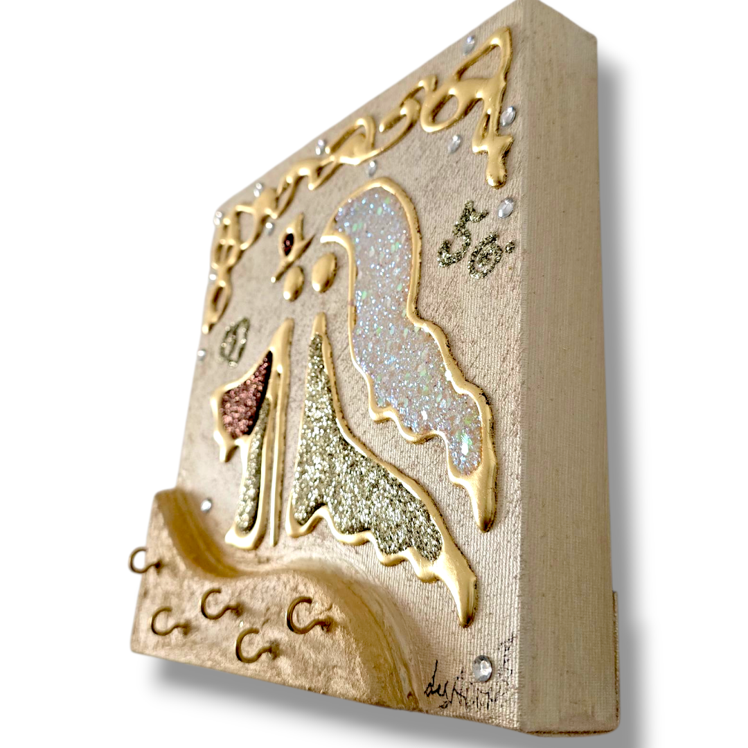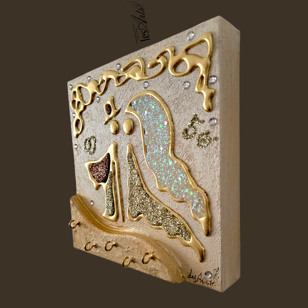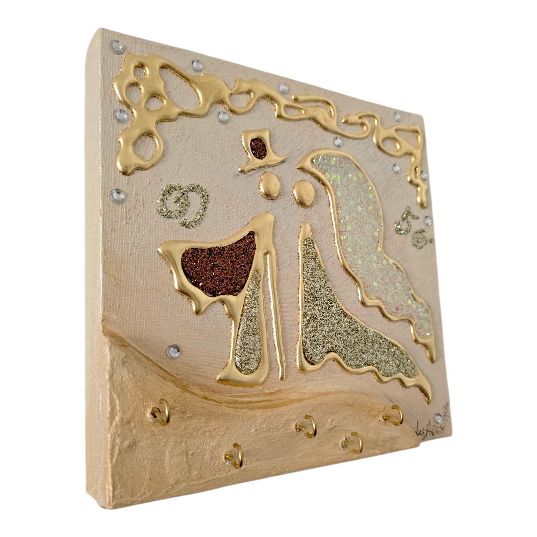 Bomboniera Artistica Appendichiavi, realizzata su tela multi-materica, pronta da appendere, creata, realizzata, dipinta e Decorata a mano Artigianalmente.