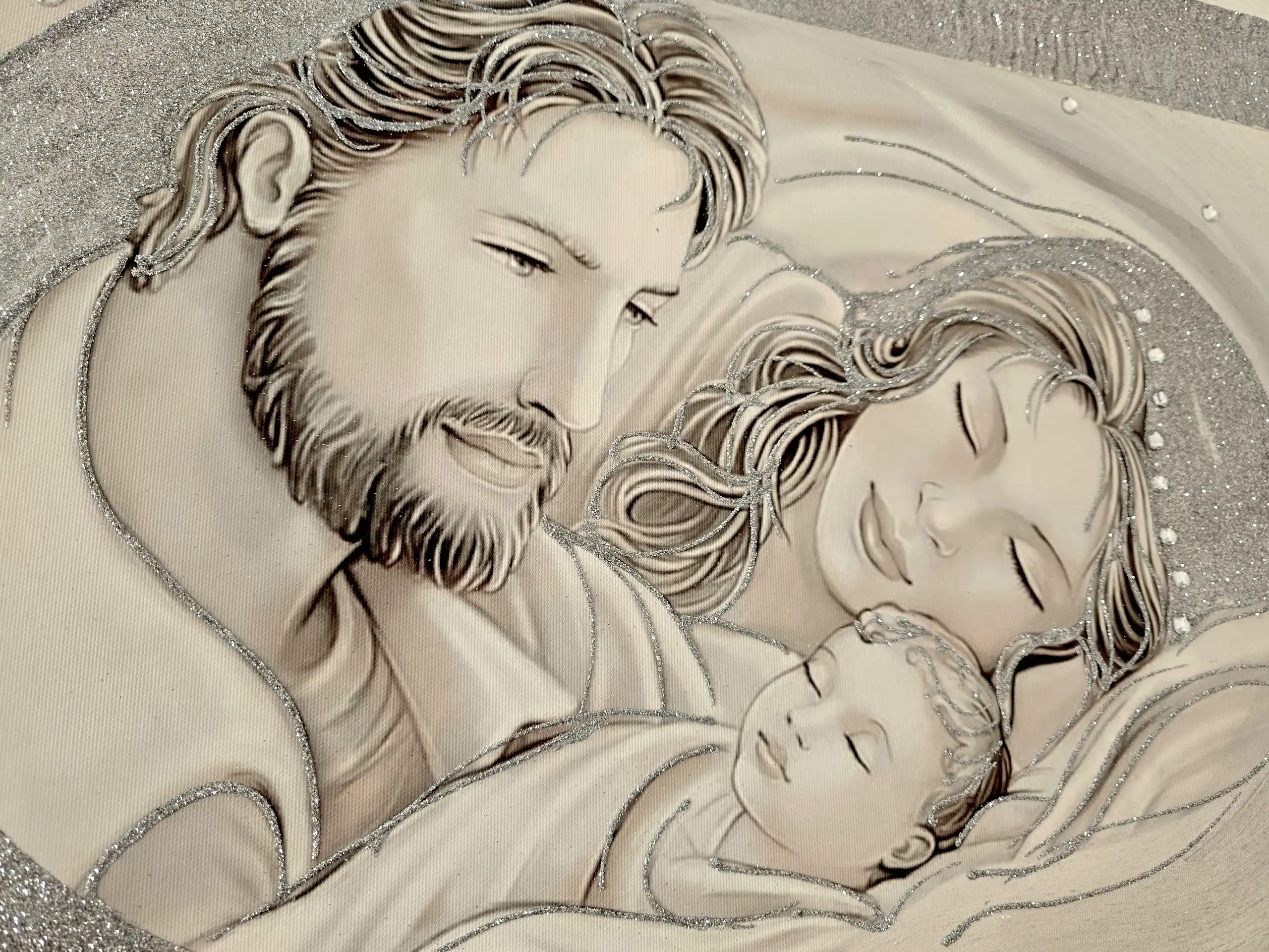 Capezzale D'Arredo realizzato su tela gallery multi-materica, realizzato , dipinto e Decorato a mano Artigianalmente.