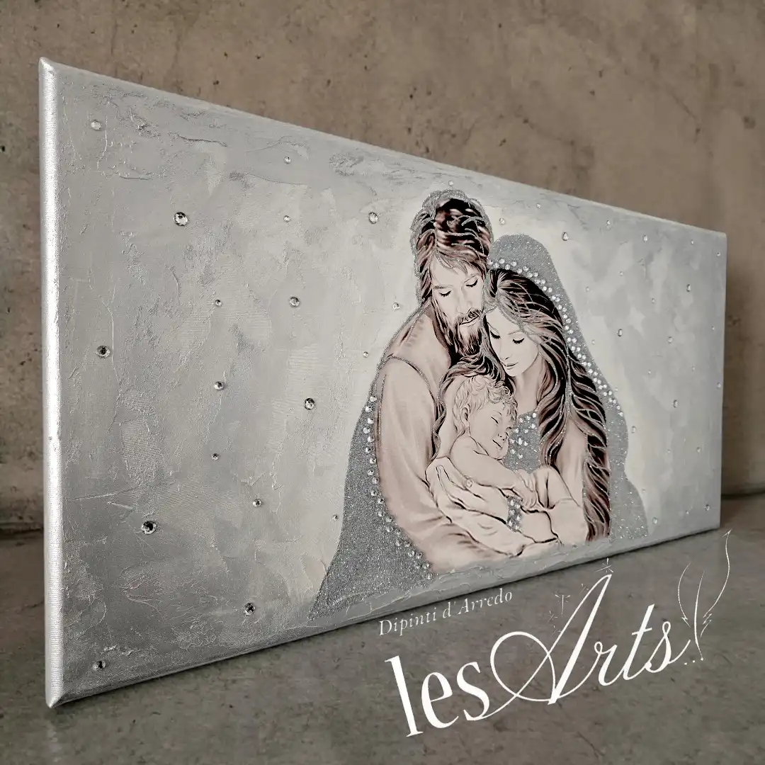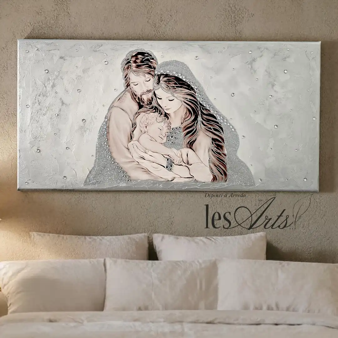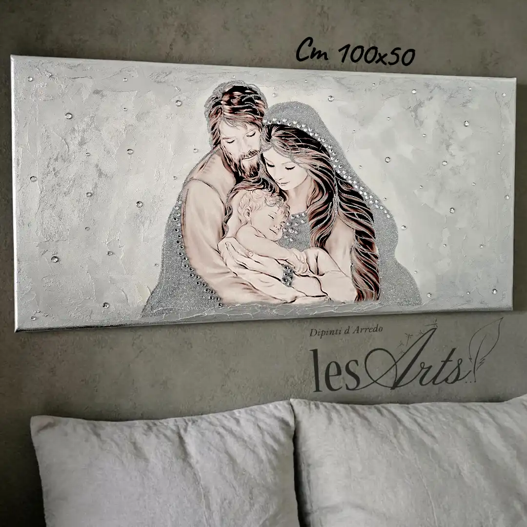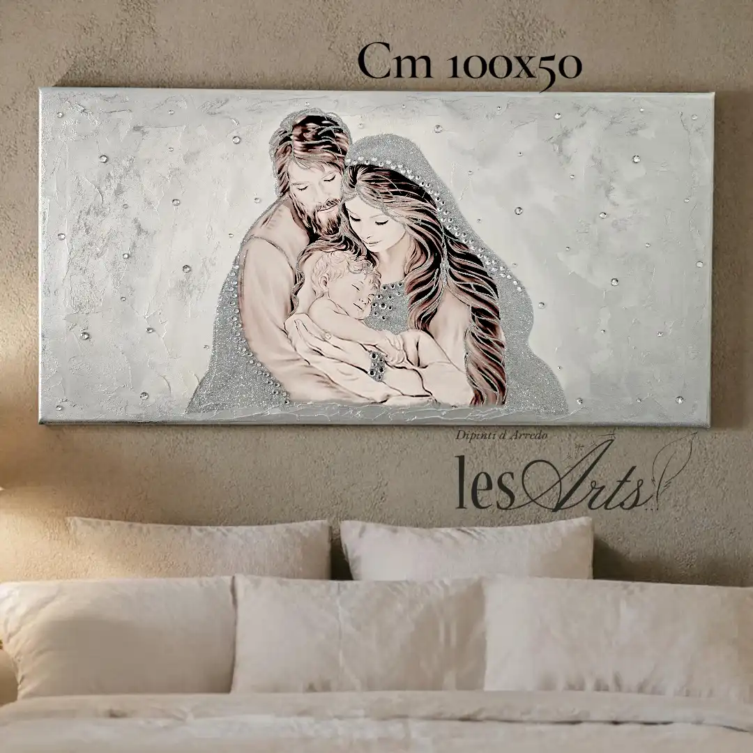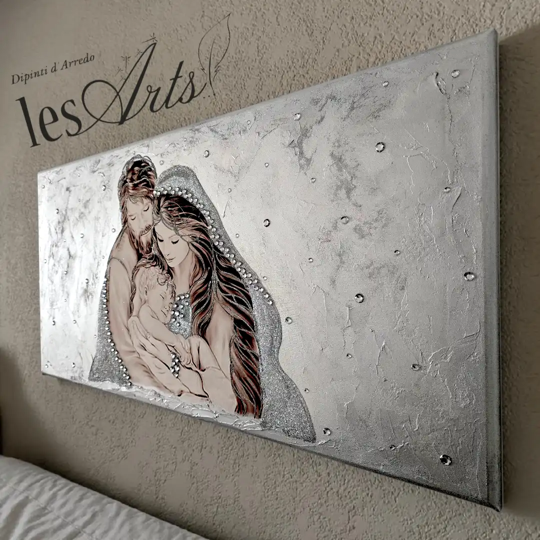 Capezzale D'Arredo realizzato su tela gallery multi-materica, realizzato , dipinto e Decorato a mano Artigianalmente. Impreziosito da particolari in Glitter e Strass. I dipinti Les Arts sono realizzati mediante la scelta di materiali di altissima qualità e sono già pronti da appendere e fornite di attaccaglie per la posa in opera. Prodotto 100% made in italy Dimensioni tela gallery: cm 100x50.Personalizzabile con Nomi e/o data. Tempi di realizzazione 10 giorni lavorativi circa dal momento dell'ordine Per maggiori informazioni WhatsApp 328-9210448