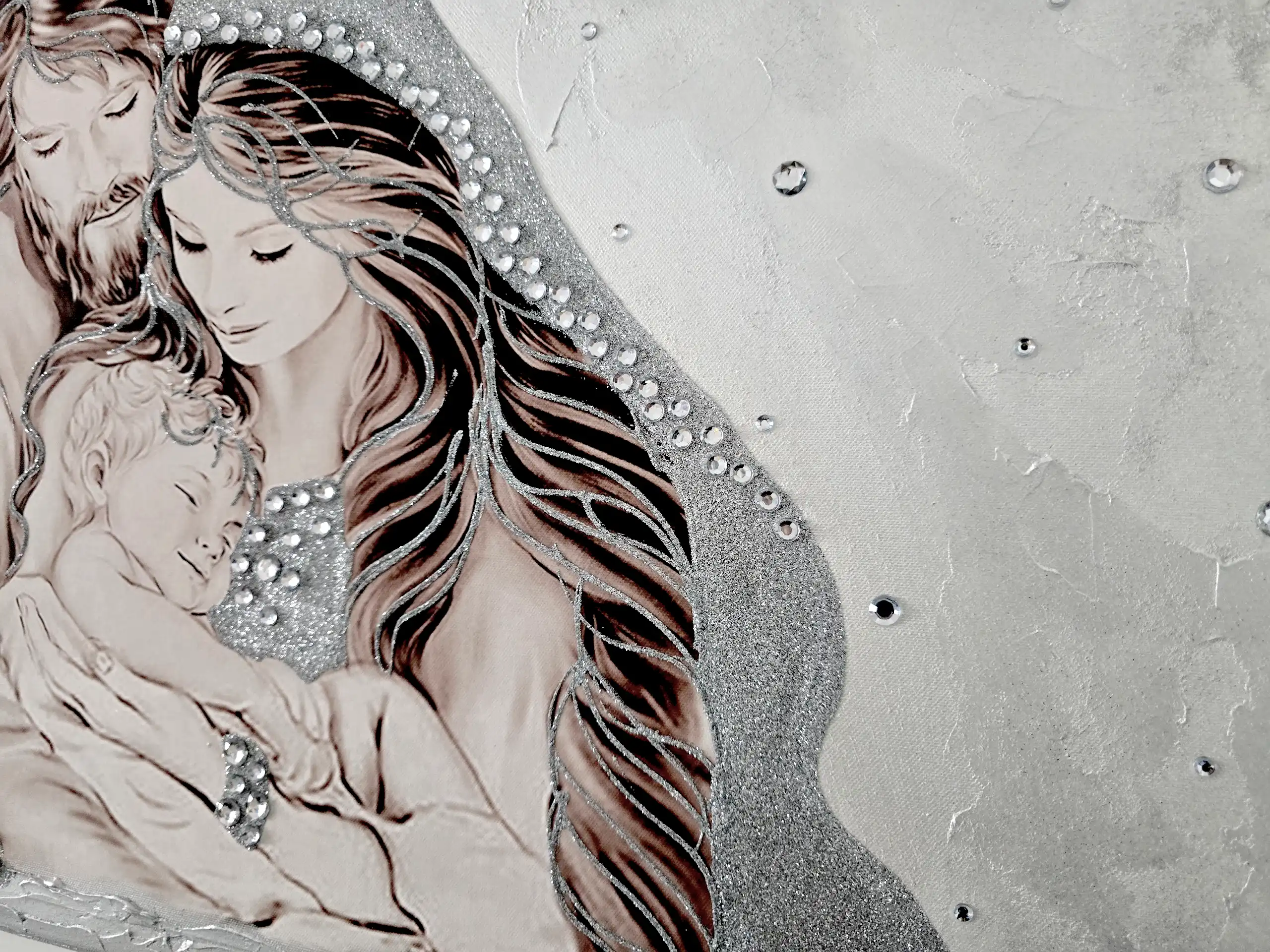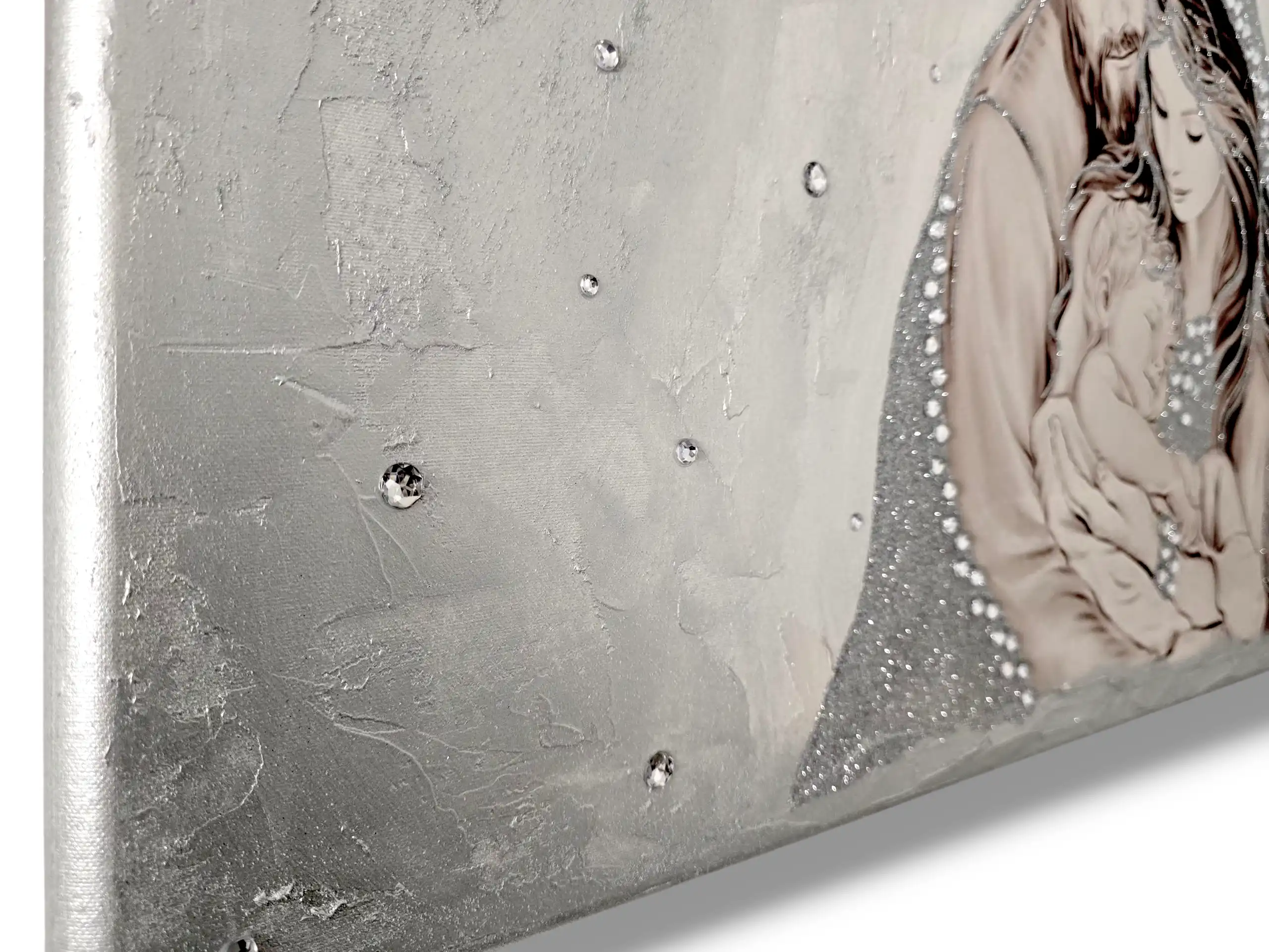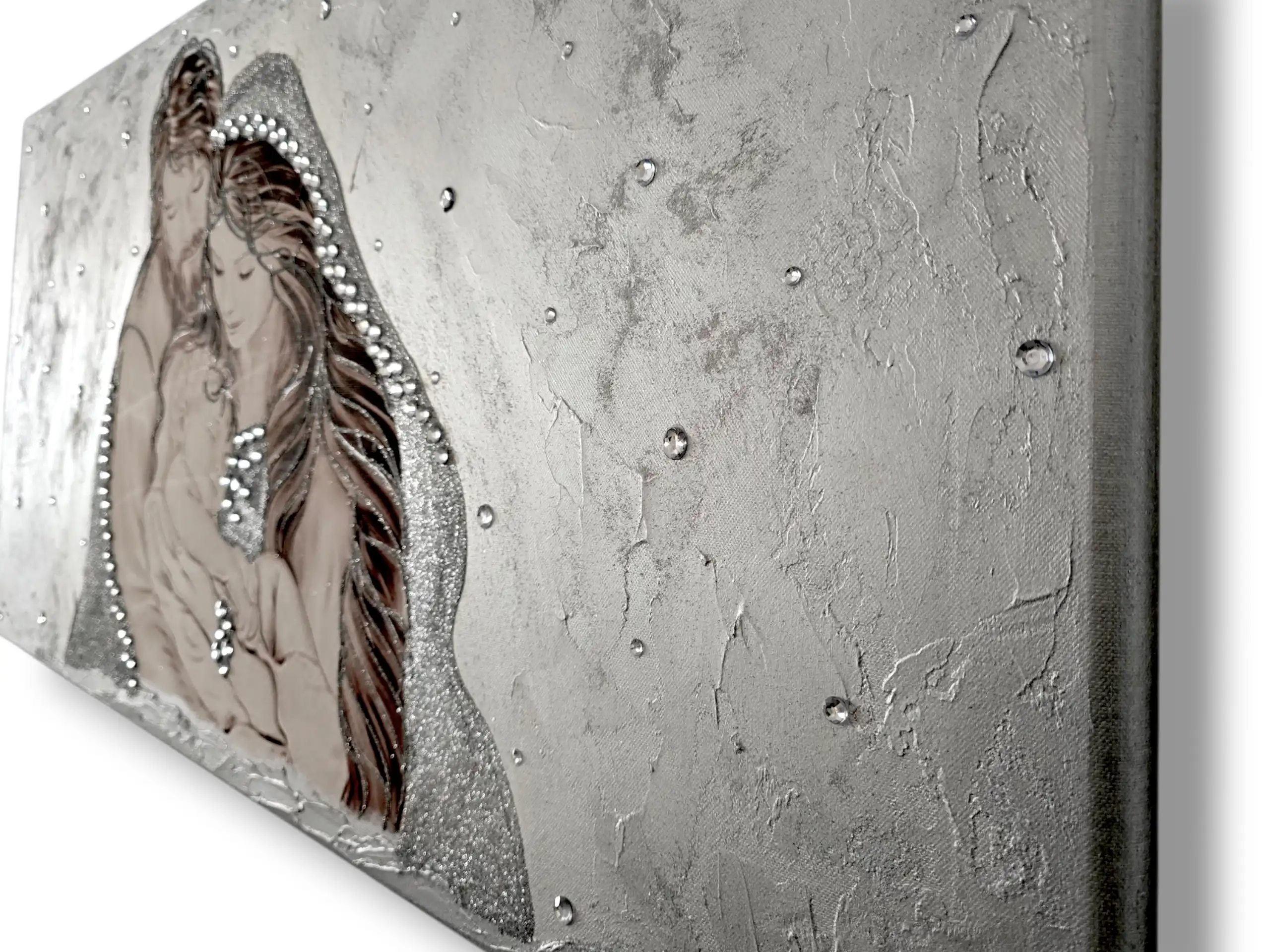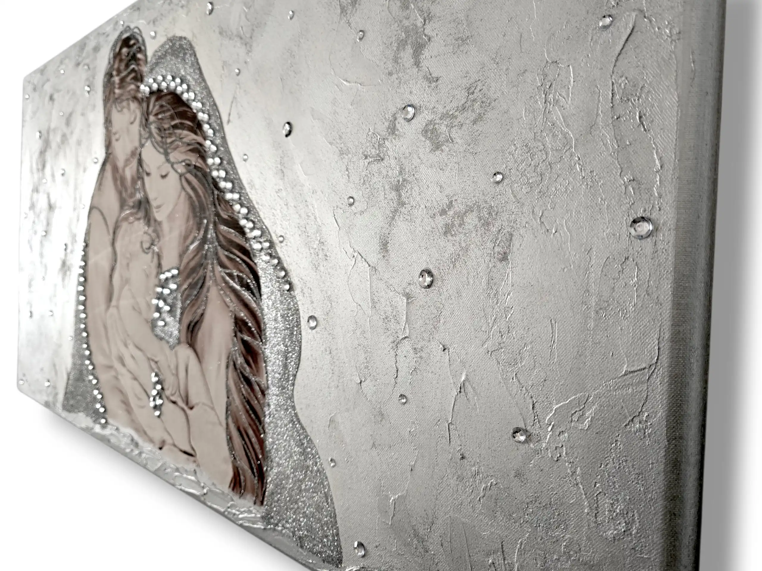 Capezzale D'Arredo realizzato su tela gallery multi-materica, realizzato , dipinto e Decorato a mano Artigianalmente. Impreziosito da particolari in Glitter e Strass. I dipinti Les Arts sono realizzati mediante la scelta di materiali di altissima qualità e sono già pronti da appendere e fornite di attaccaglie per la posa in opera. Prodotto 100% made in italy Dimensioni tela gallery: cm 100x50.Personalizzabile con Nomi e/o data. Tempi di realizzazione 10 giorni lavorativi circa dal momento dell'ordine Per maggiori informazioni WhatsApp 328-9210448