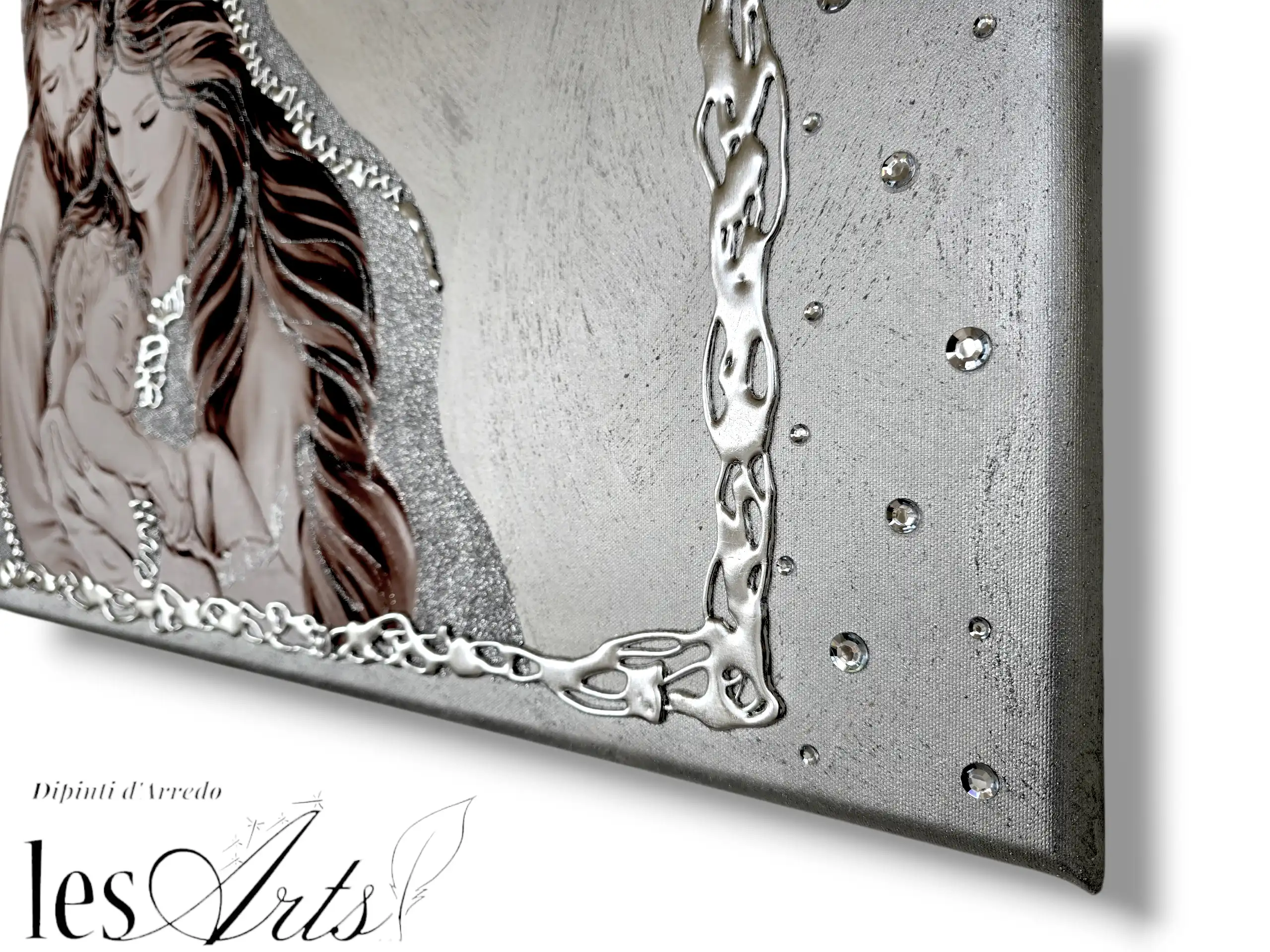 I dipinti Les Arts sono realizzati mediante la scelta di materiali di altissima qualità e sono già pronti da appendere e fornite di attaccaglie per la posa in opera.