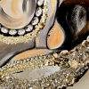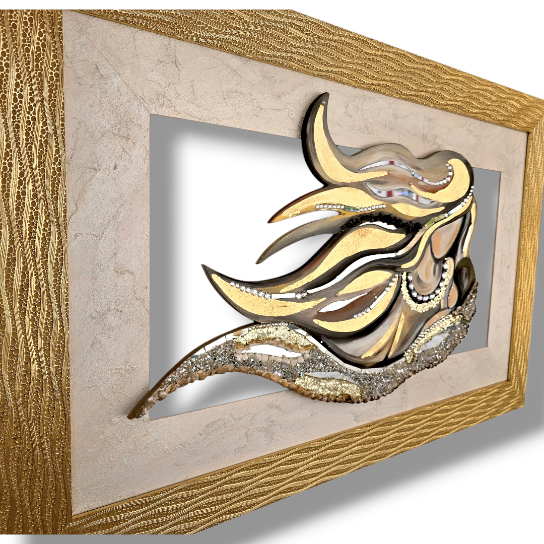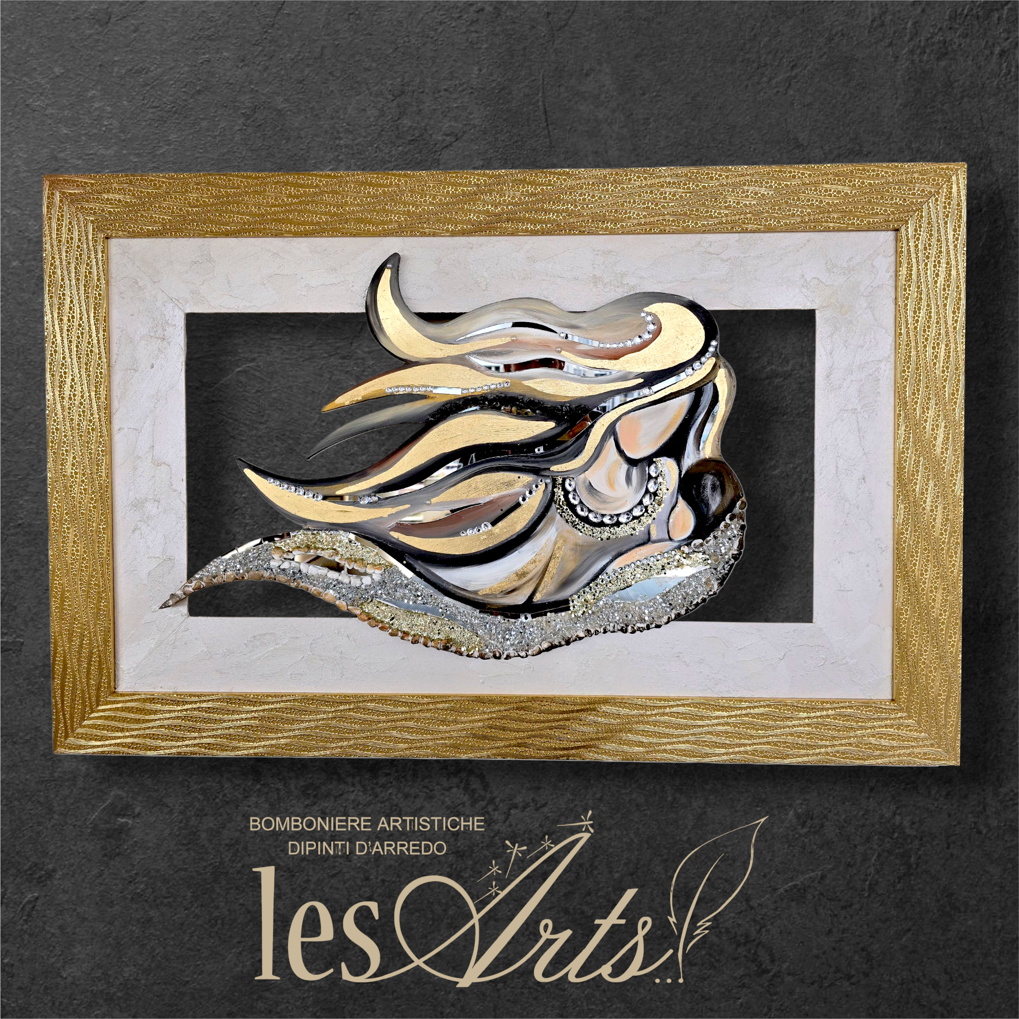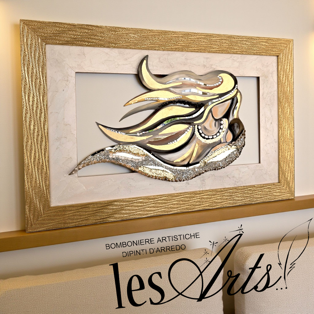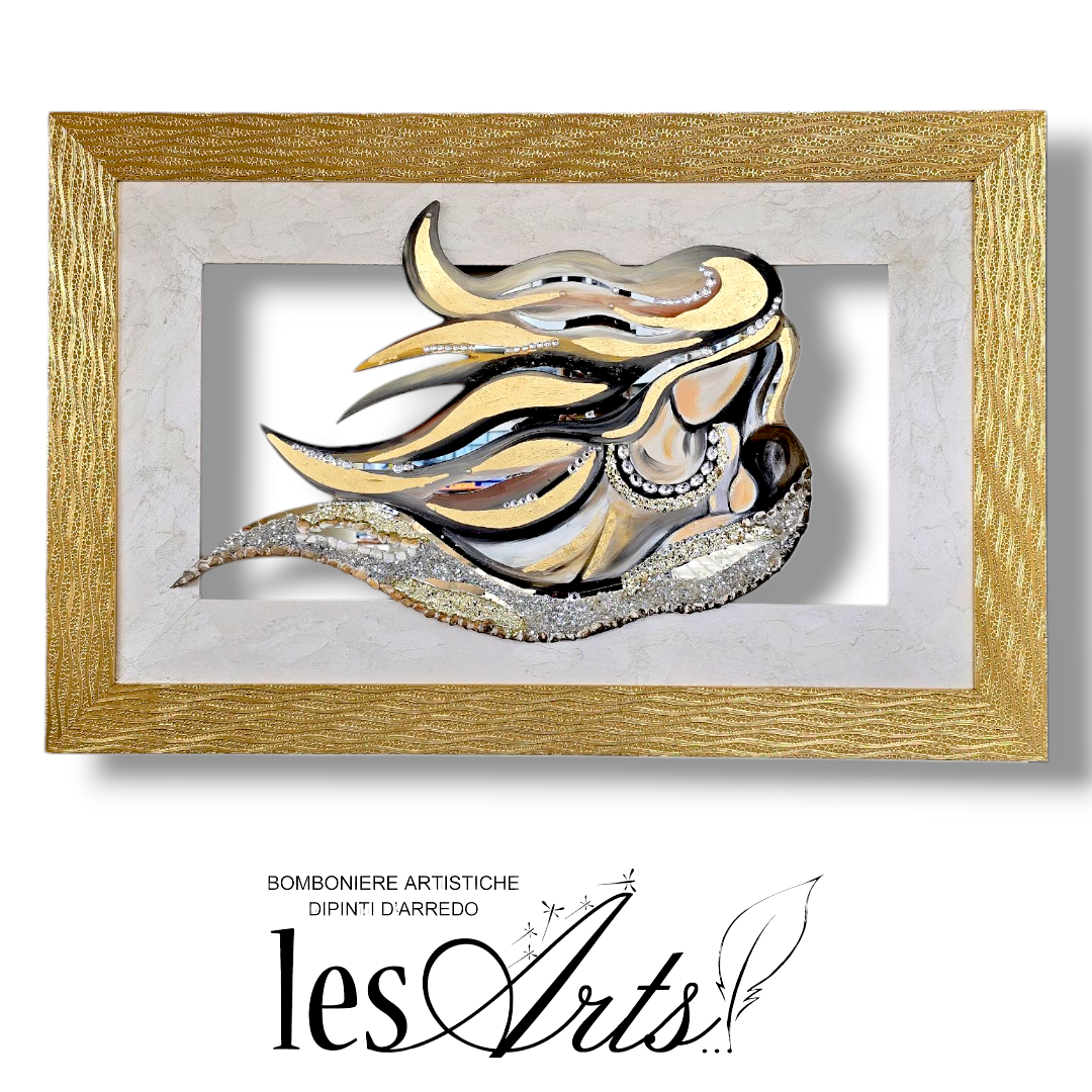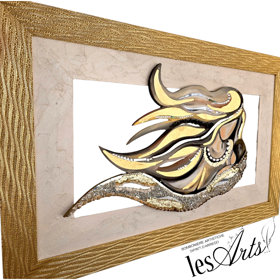 Completo di cornice Artigianale Oro e passpartout bianco perlato.