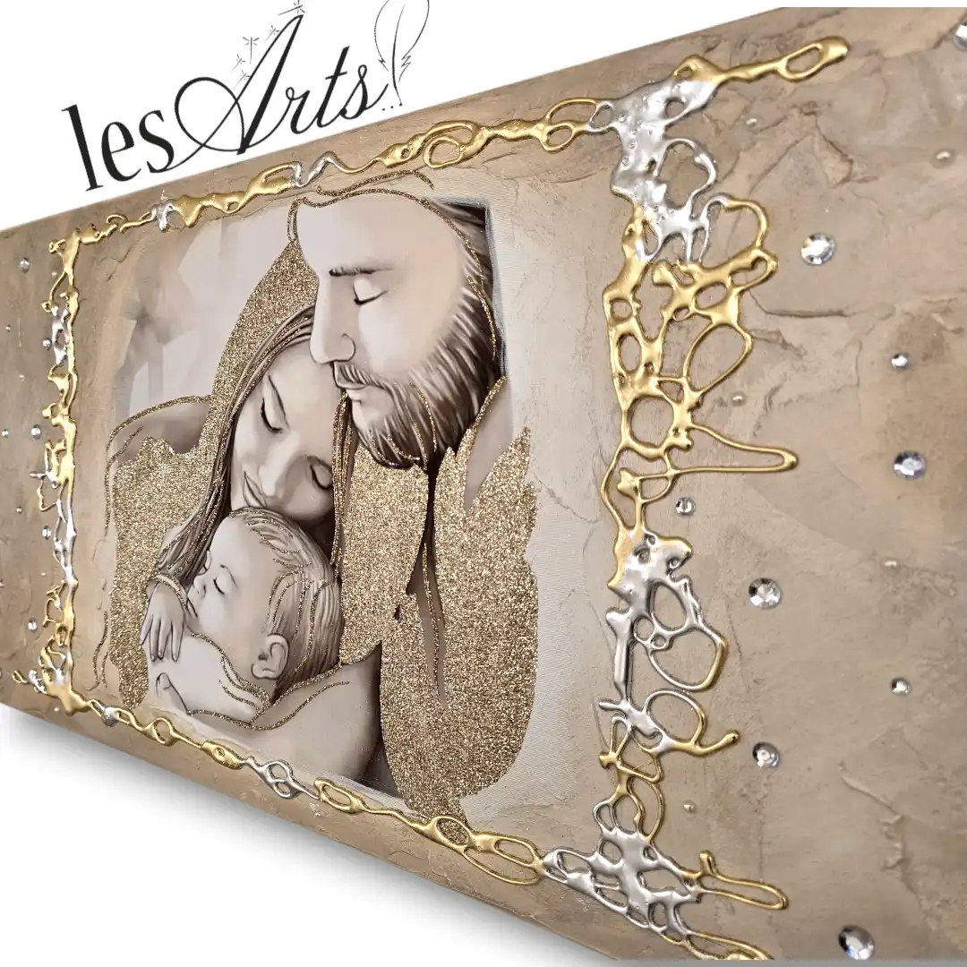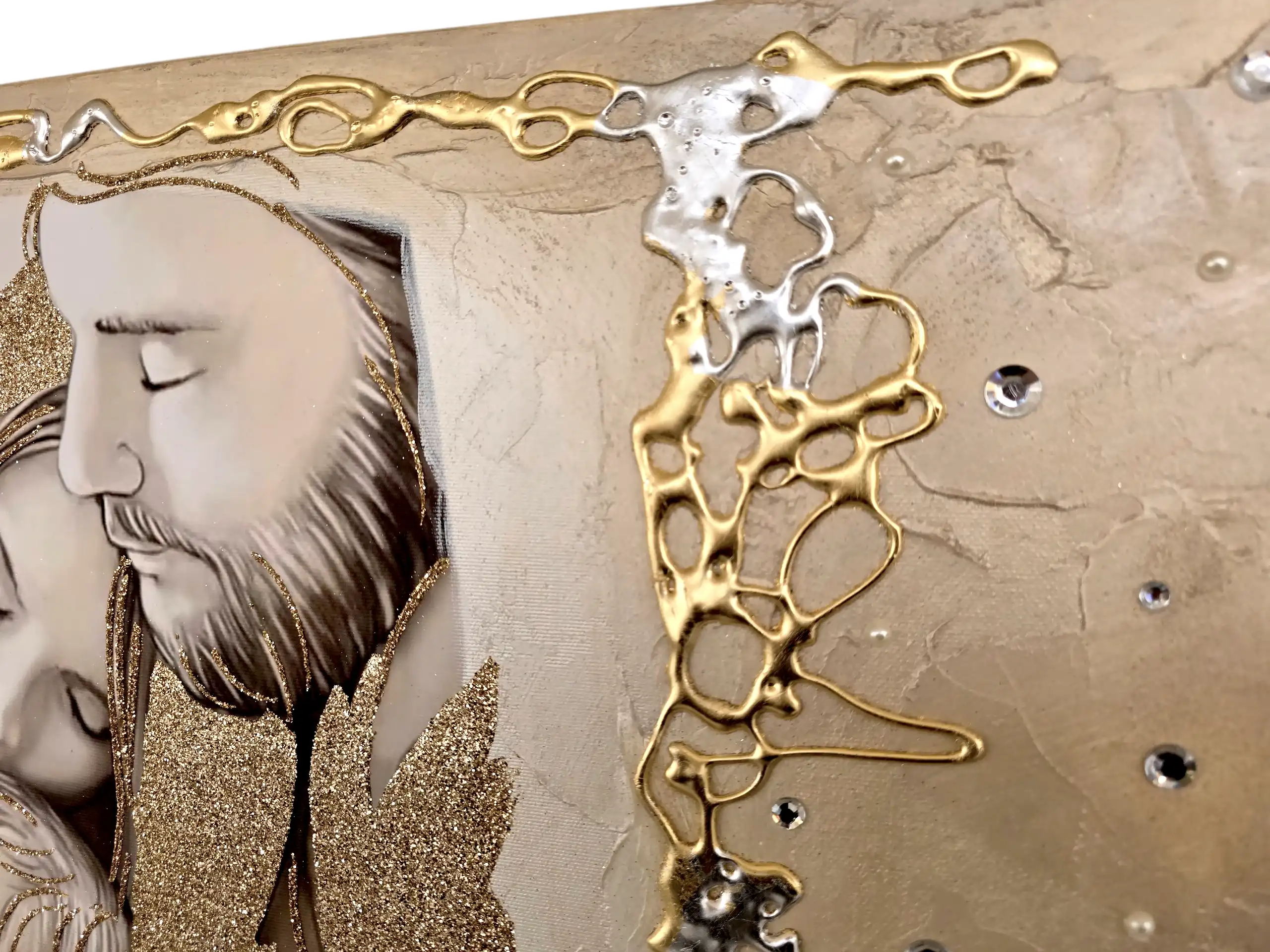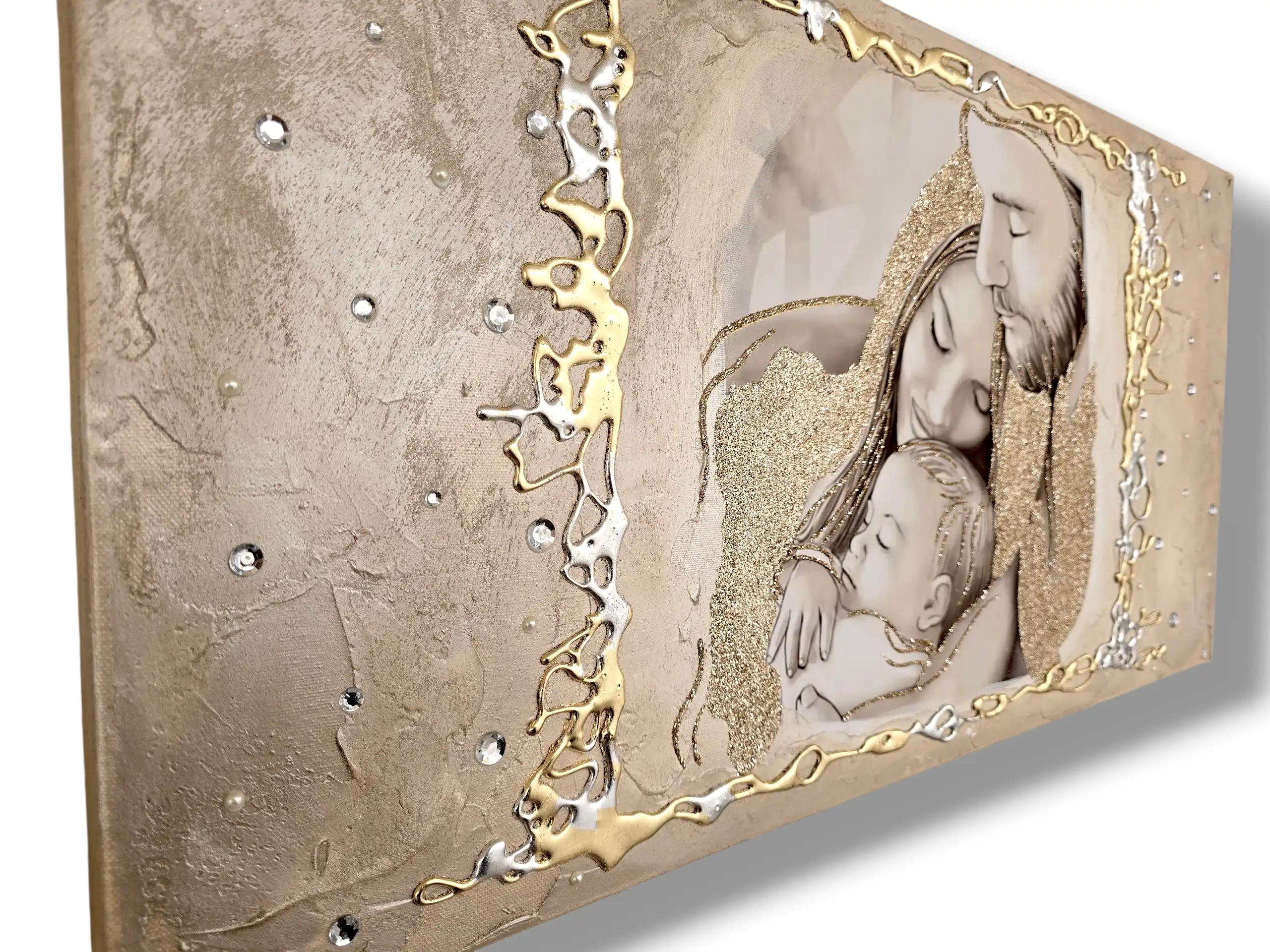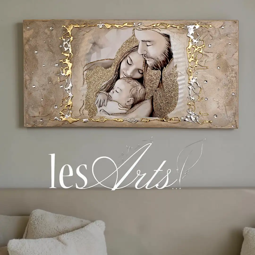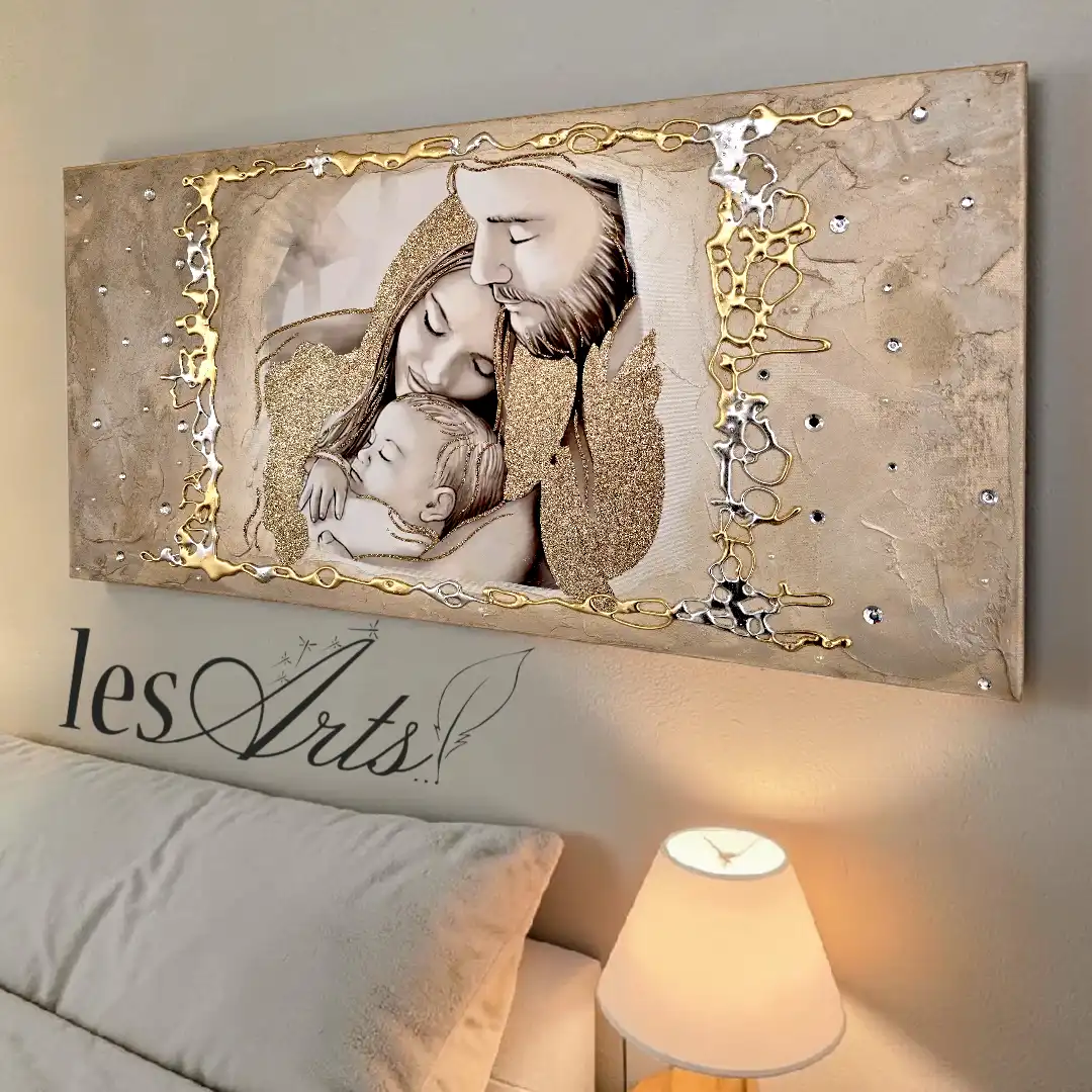 Capezzale D'Arredo realizzato su tela gallery multi-materica, realizzato , dipinto e Decorato a mano Artigianalmente. Impreziosito da particolari a rilievo in foglia oro e argento, Glitter e Strass. I dipinti Les Arts sono realizzati mediante la scelta di materiali di altissima qualità e sono già pronti da appendere e fornite di attaccaglie per la posa in opera. Prodotto 100% made in italy Dimensioni tela gallery: cm 80x40. Personalizzabile con Nomi e/o data. Tempi di realizzazione 10 giorni lavorativi circa dal momento dell'ordine Per maggiori informazioni WhatsApp 328-9210448