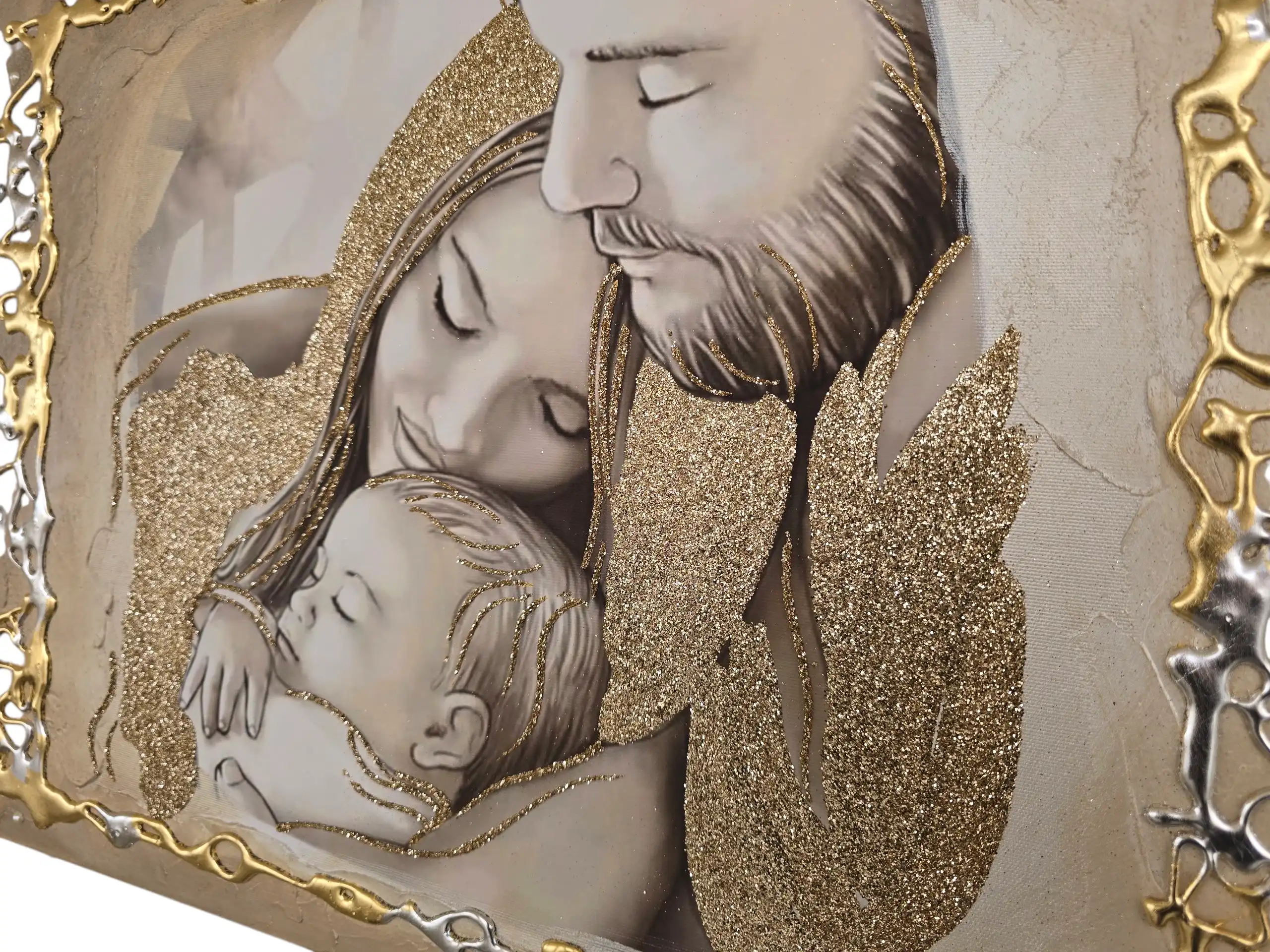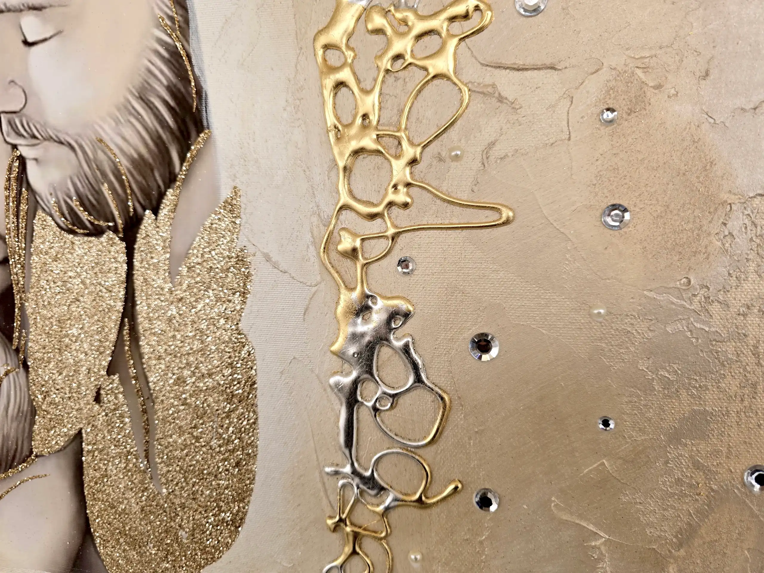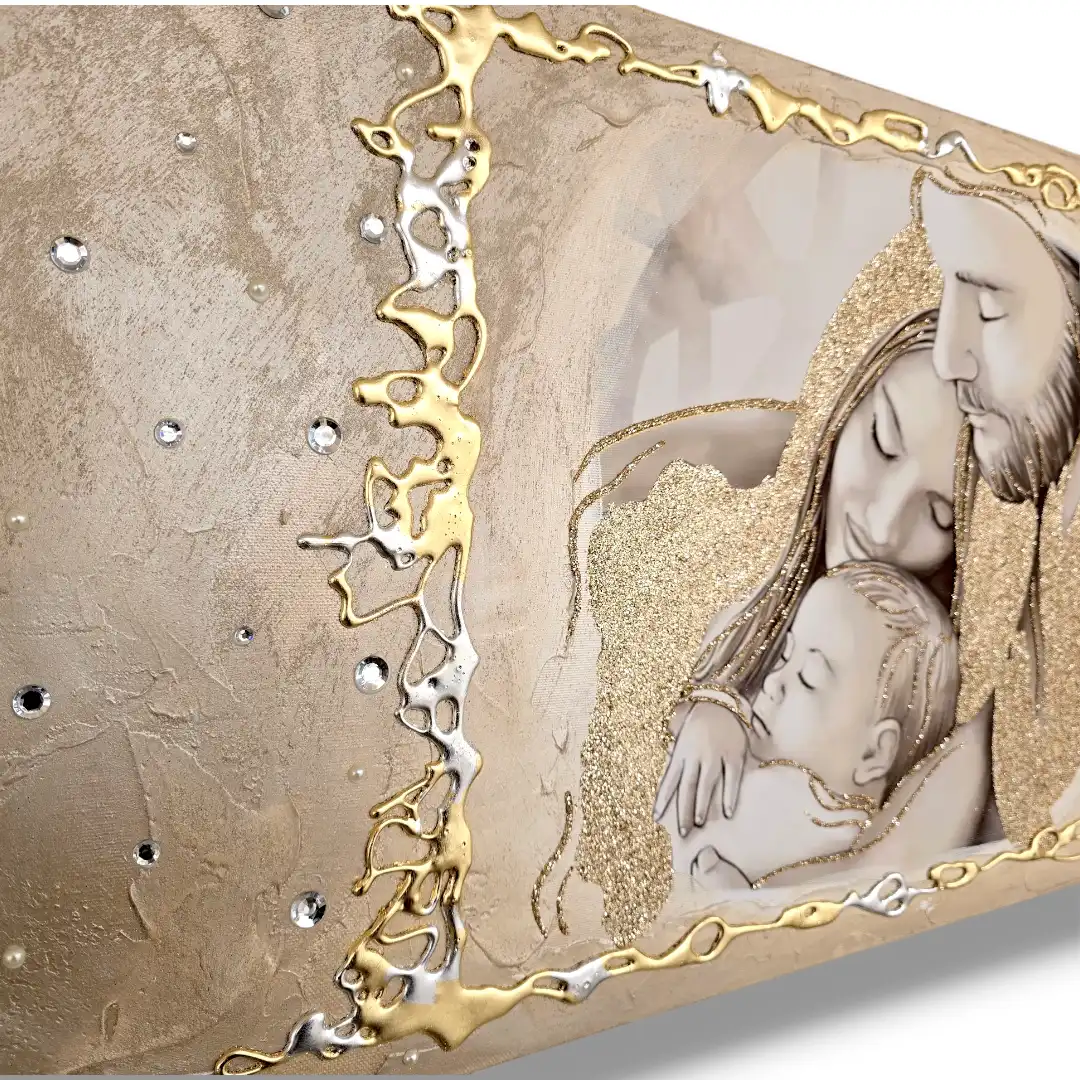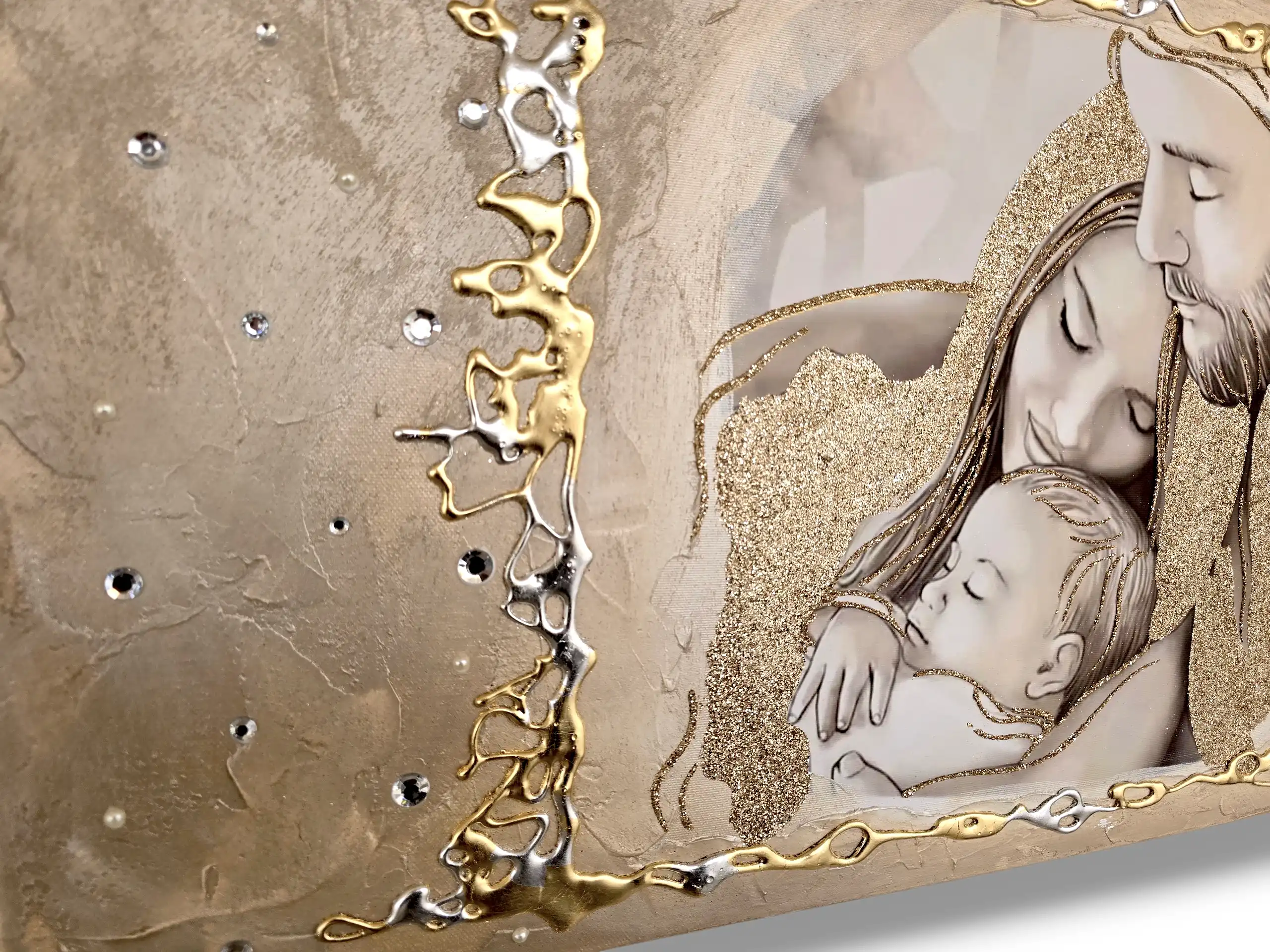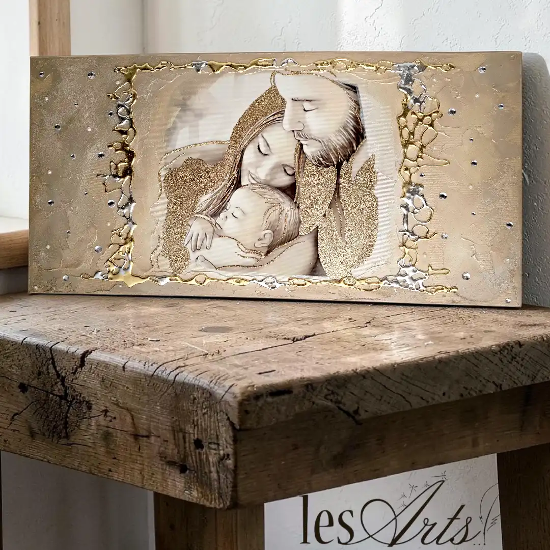 Capezzale D'Arredo realizzato su tela gallery multi-materica, realizzato , dipinto e Decorato a mano Artigianalmente. Impreziosito da particolari a rilievo in foglia oro e argento, Glitter e Strass. I dipinti Les Arts sono realizzati mediante la scelta di materiali di altissima qualità e sono già pronti da appendere e fornite di attaccaglie per la posa in opera. Prodotto 100% made in italy Dimensioni tela gallery: cm 80x40. Personalizzabile con Nomi e/o data. Tempi di realizzazione 10 giorni lavorativi circa dal momento dell'ordine Per maggiori informazioni WhatsApp 328-9210448
