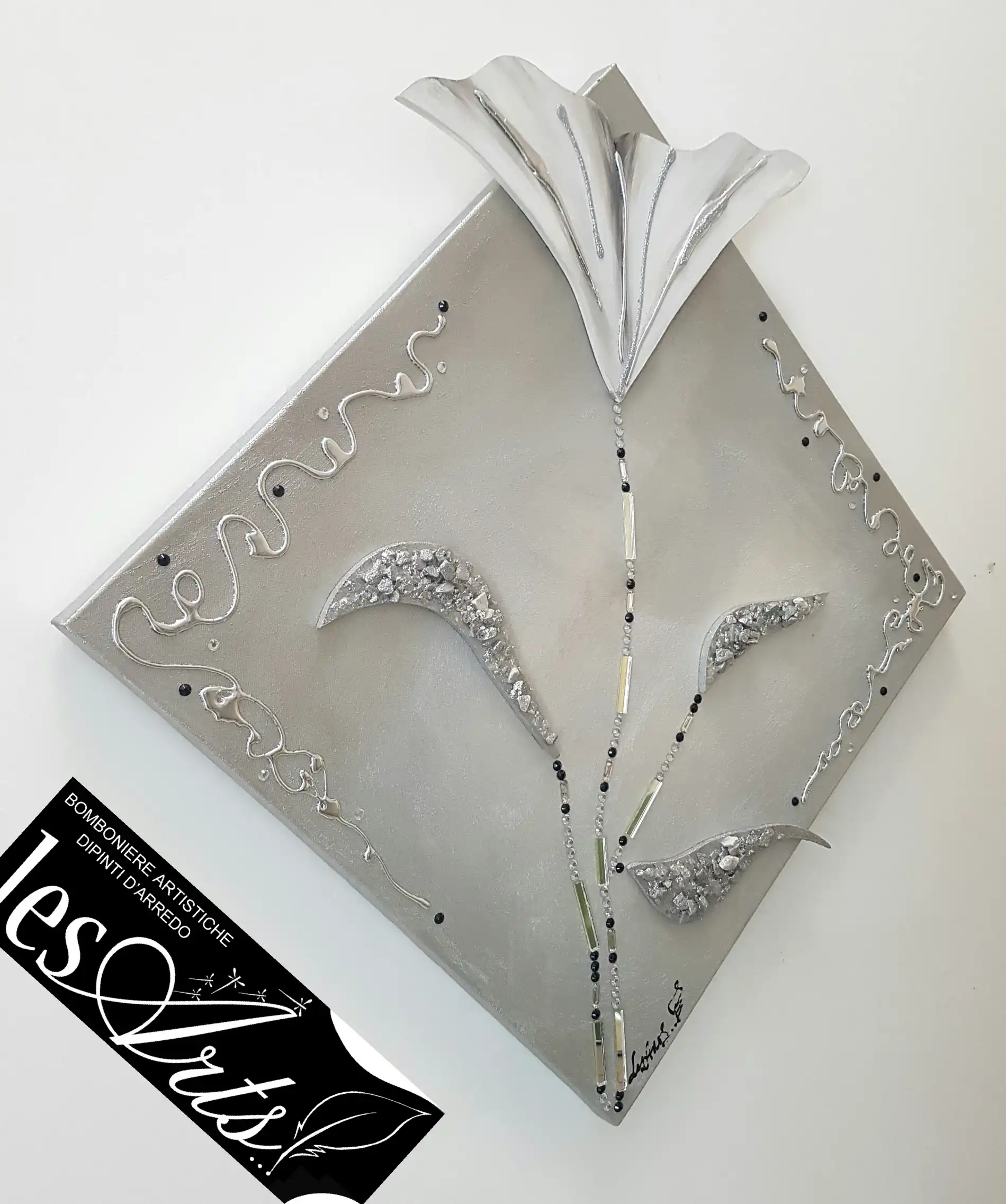 Dipinto d'arredo realizzato su tela gallery misura 50x50 Arricchito da inserti in legno Particolari in foglia argento strass e specchietti Tempi di realizzazione 15 gg lavorativi circa Per maggiori informazioni WhatsApp 328-9210448