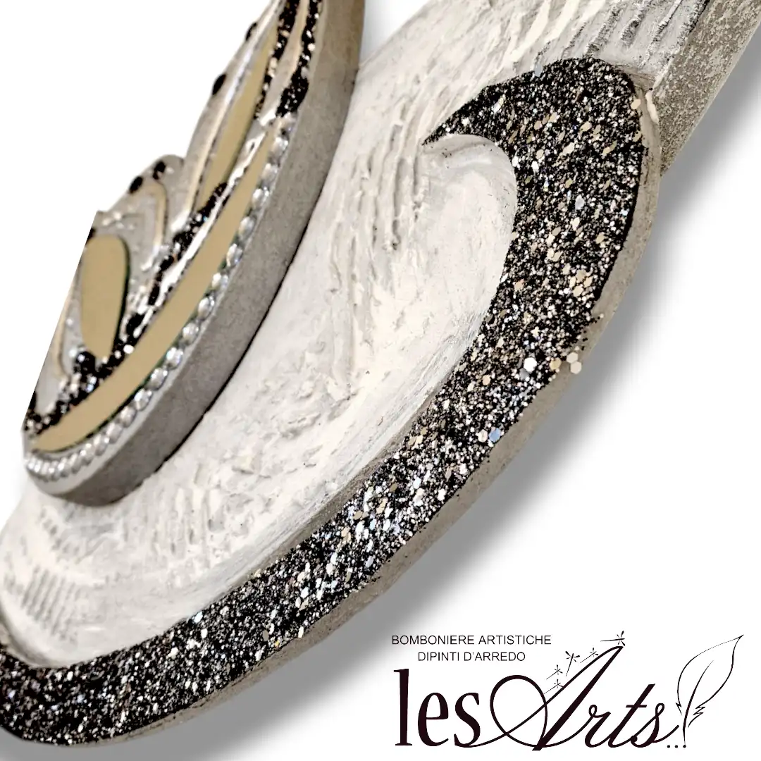Impreziosito da particolari a rilievo in foglia argento, Glitter e strass