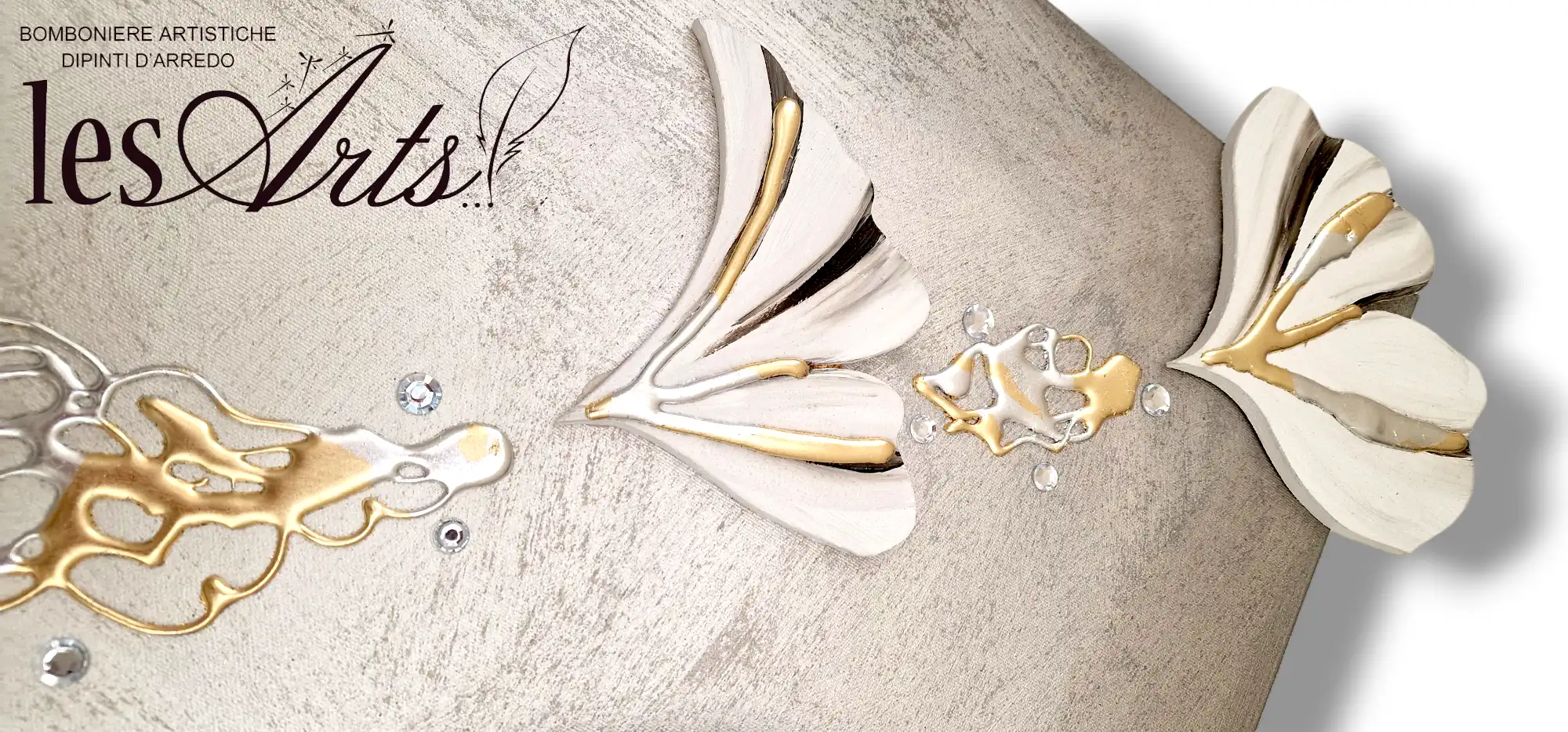 Impreziosito da inserti in legno arricchiti da pietre decorative e particolari in foglia oro e argento, glitter e strass.