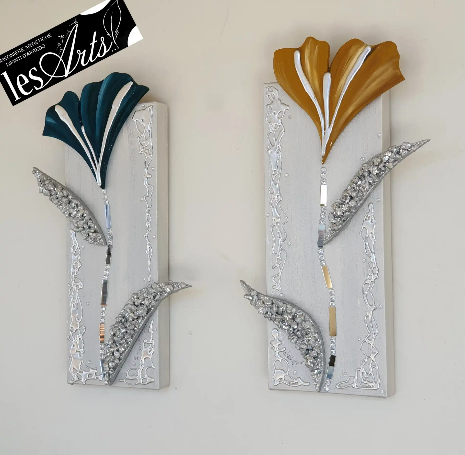 Dipinti D'Arredo interamente realizzati e decorati a mano su 2 tele gallery misura 20x50 l'una.