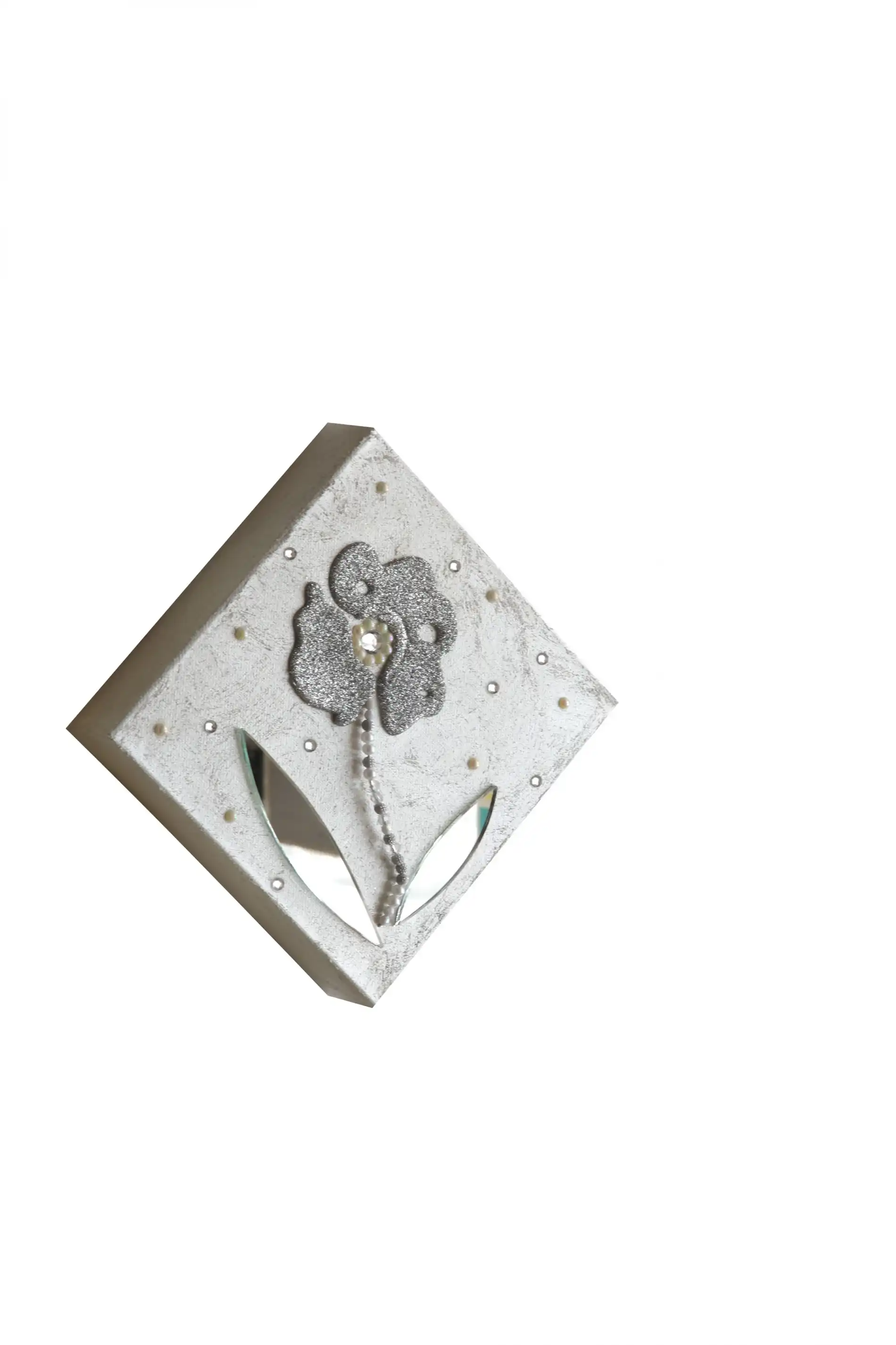 Tela 20x20 interamente realizzata e decorata a mano con decori in glitter , inserti di specchio, perle e strass.