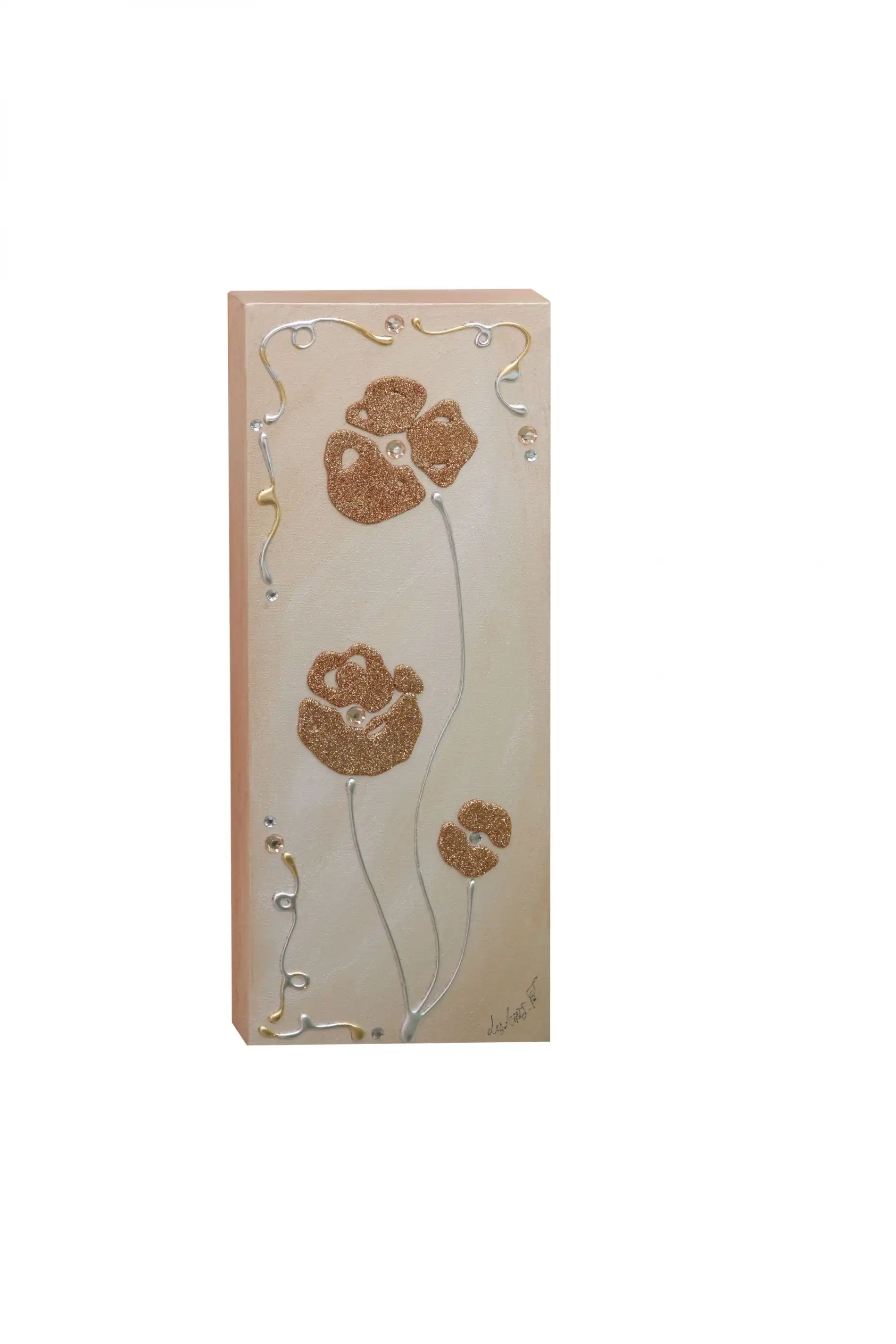 Tela 20x50 interamente realizzata e decorata a mano con inserti materici, decori in foglia oro e foglia argento, glitter e strass.