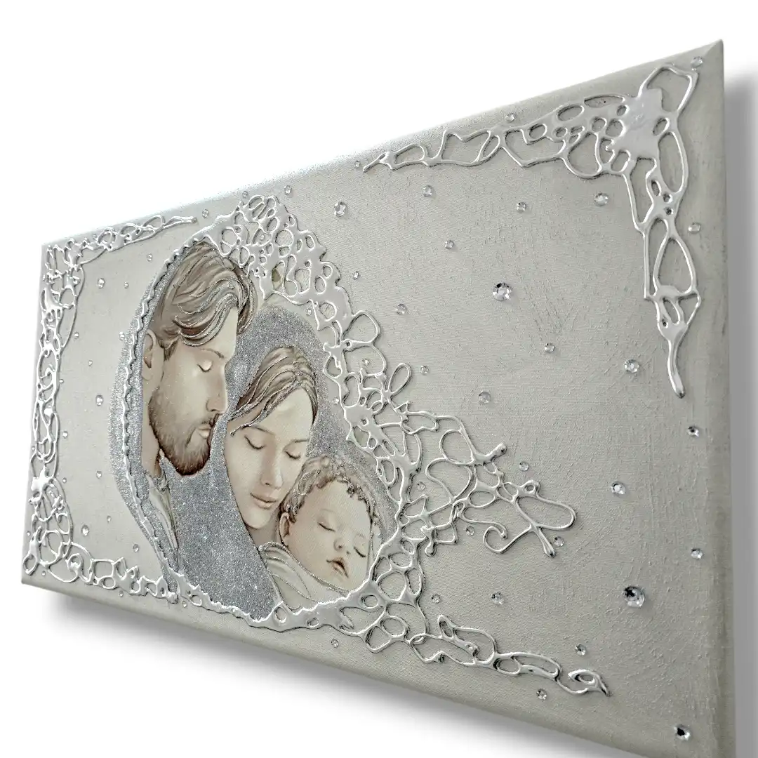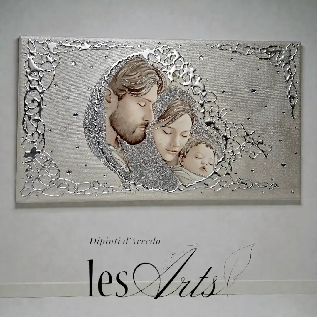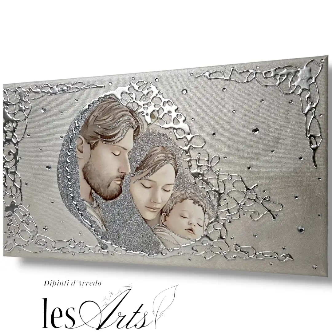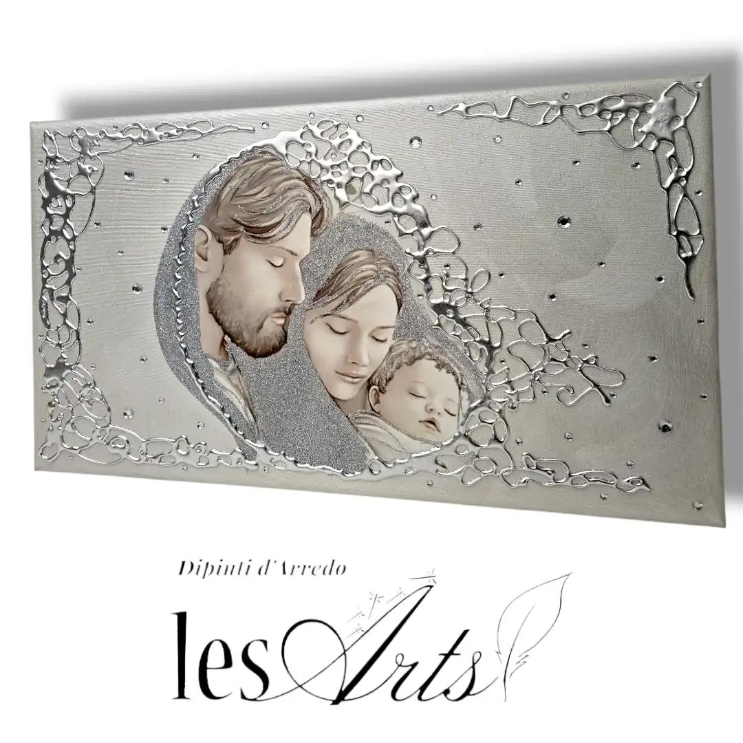 Capezzale D'Arredo realizzato su tela gallery multi-materica, realizzato , dipinto e Decorato a mano Artigianalmente. Impreziosito da particolari a rilievo in foglia Argento, Glitter e Strass. I dipinti Les Arts sono realizzati mediante la scelta di materiali di altissima qualità e sono già pronti da appendere e fornite di attaccaglie per la posa in opera. Prodotto 100% made in italy Dimensioni tela gallery stondata cm : 70X40. Personalizzabile con DEDICA Nomi e/o data. Tempi di realizzazione 10 giorni lavorativi circa dal momento dell'ordine Per maggiori informazioni WhatsApp 328-9210448