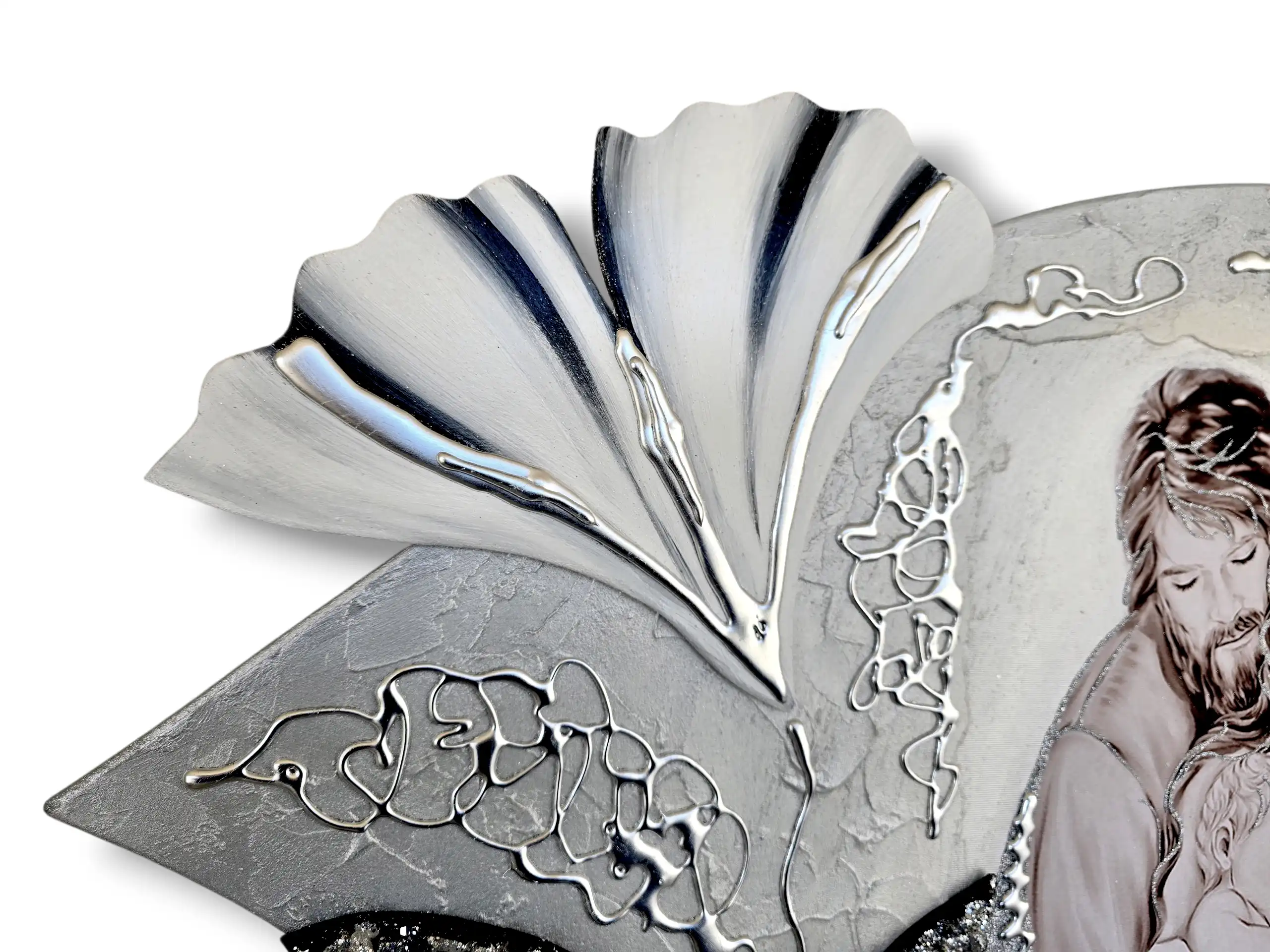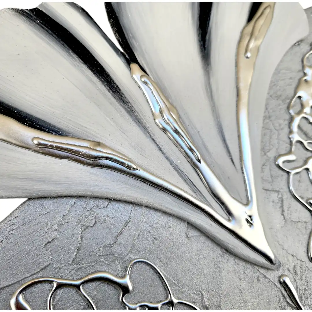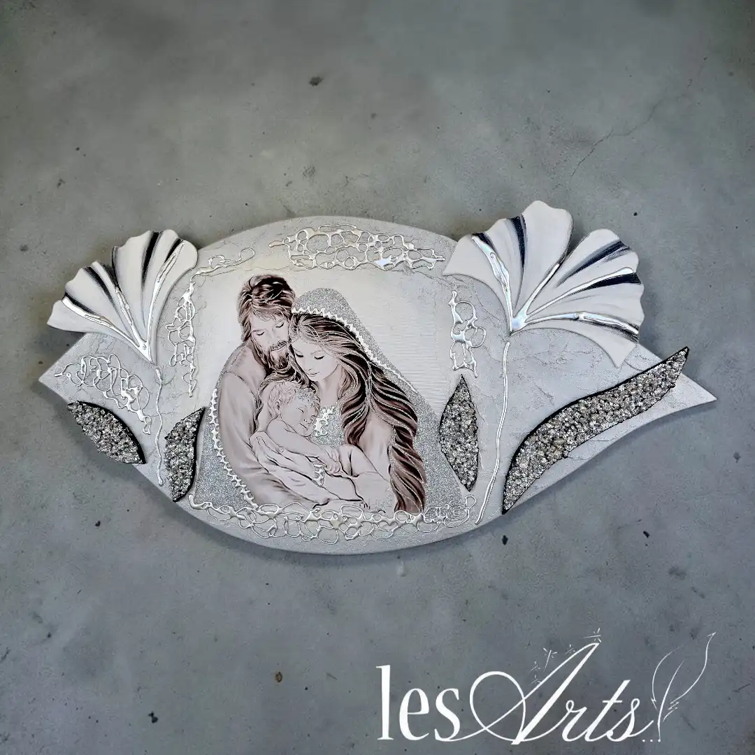 Maternità fiori Capezzale D'Arredo realizzato su pannello in legno sagomato multi-materico, realizzato , dipinto e Decorato a mano Artigianalmente. Impreziosito da inserti in legno arricchiti da pietre decorative glitterate, particolari a rilievo in foglia Argento e Glitter. I dipinti Les Arts sono realizzati mediante la scelta di materiali di altissima qualità e sono già pronti da appendere e fornite di attaccaglie per la posa in opera. Prodotto 100% made in italy Dimensioni : cm 110x55/60 circa . Tempi di realizzazione 10/15 giorni lavorativi circa dal momento dell'ordine Per maggiori informazioni WhatsApp 328-9210448
