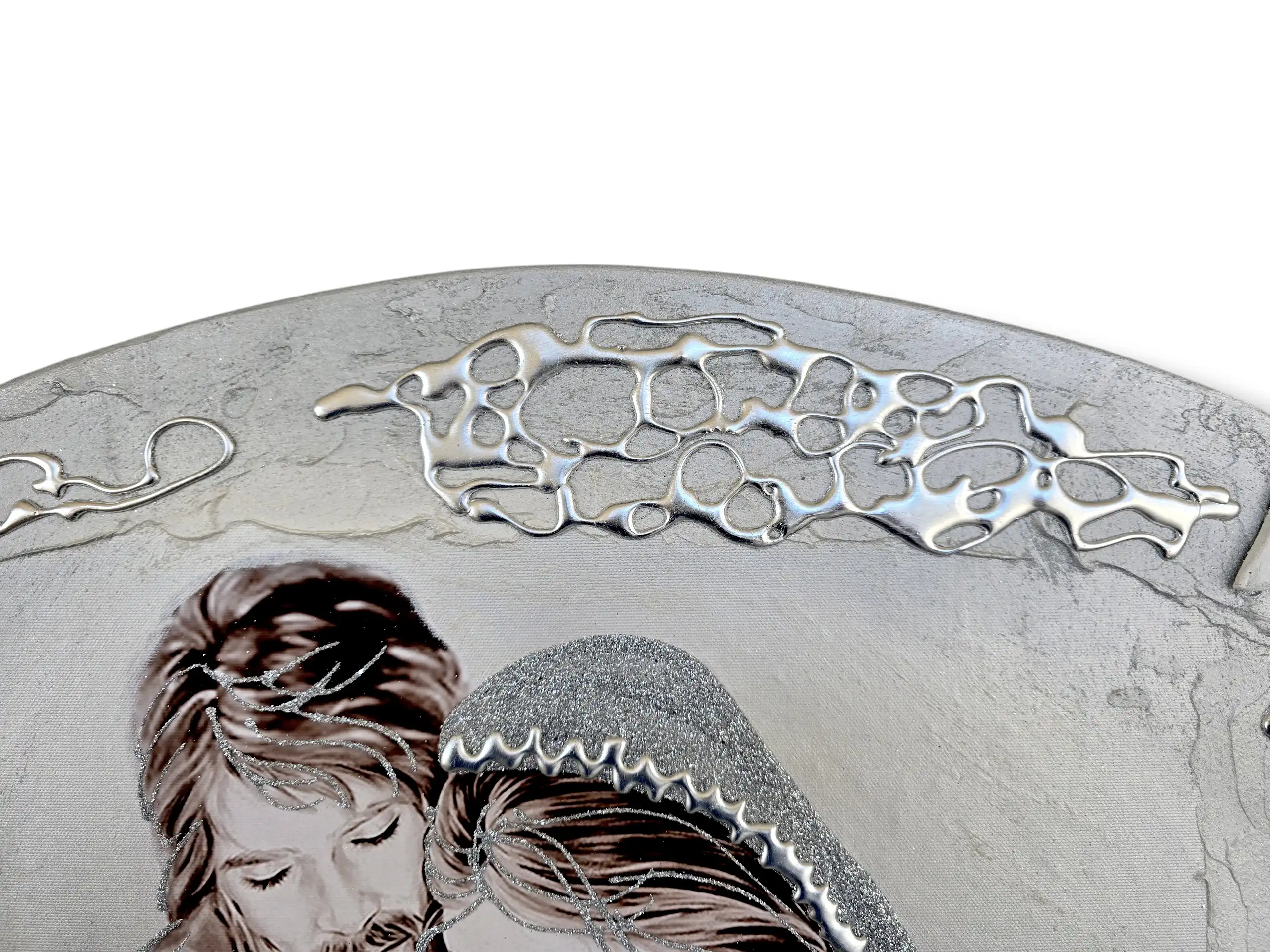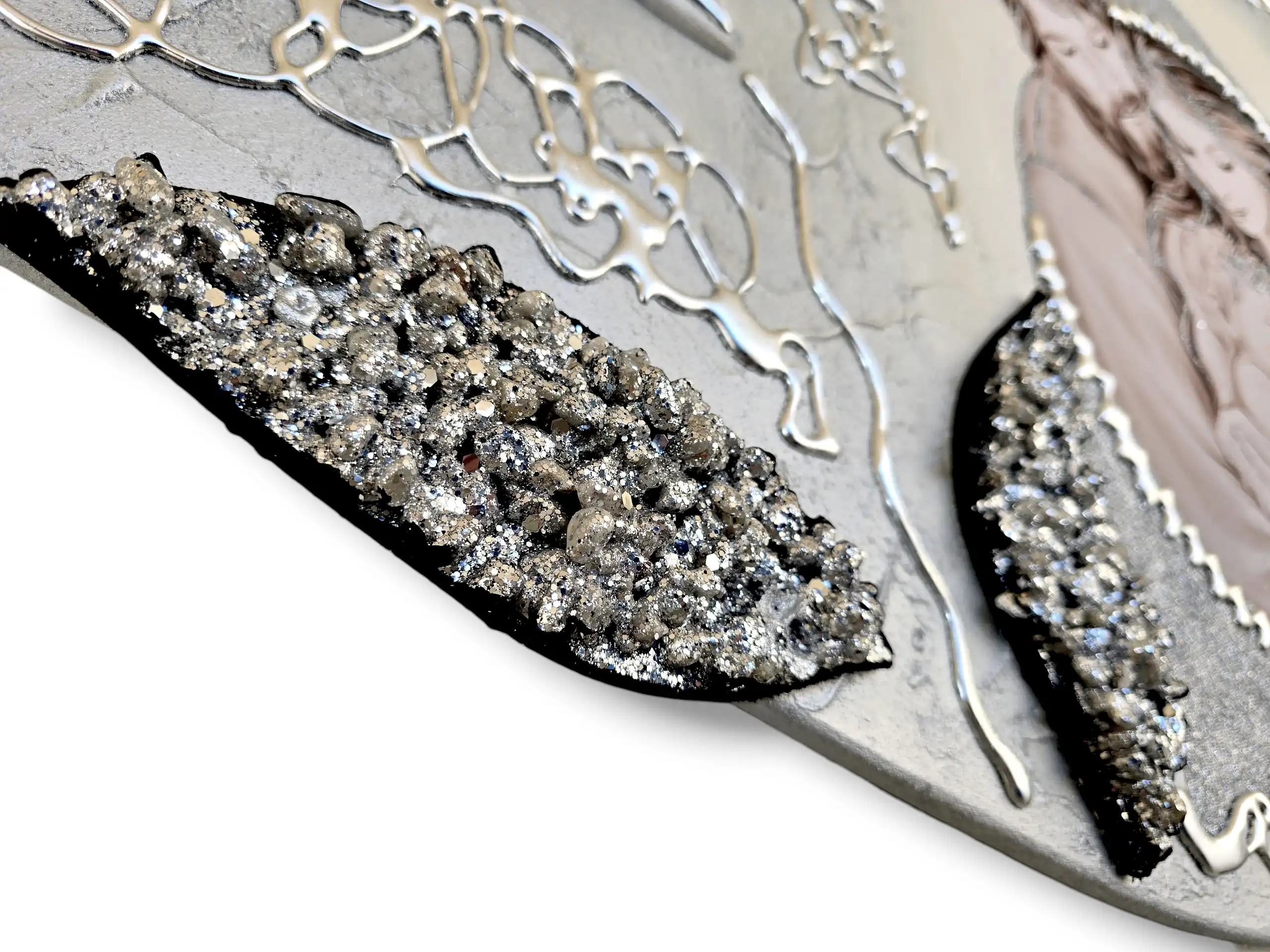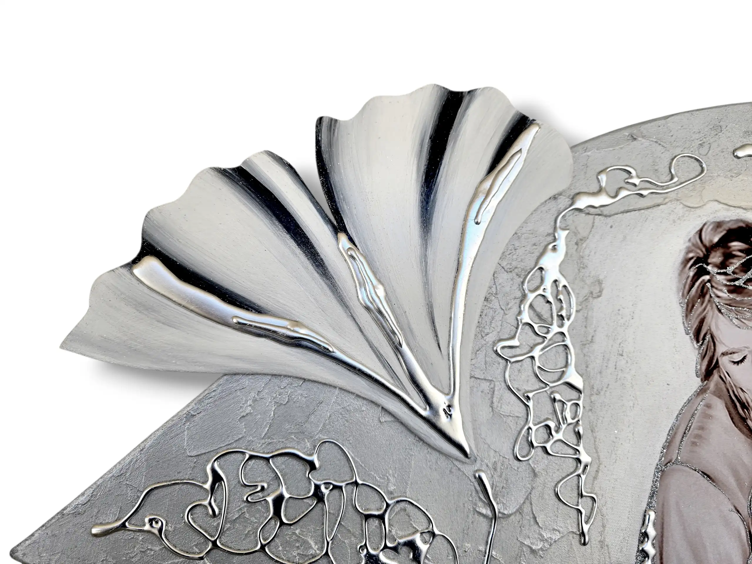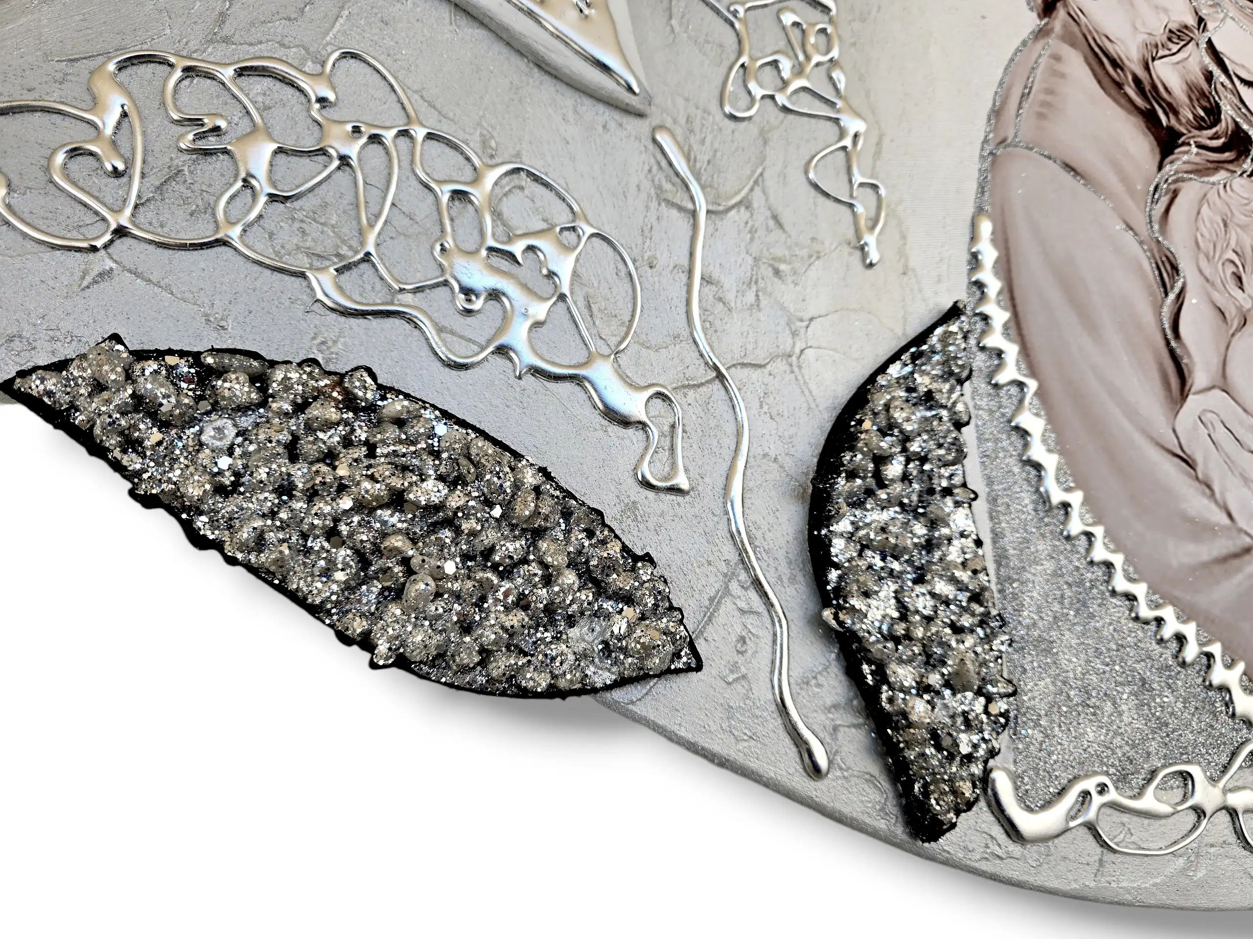 Maternità fiori Capezzale D'Arredo realizzato su pannello in legno sagomato multi-materico, realizzato , dipinto e Decorato a mano Artigianalmente. Impreziosito da inserti in legno arricchiti da pietre decorative glitterate, particolari a rilievo in foglia Argento e Glitter. I dipinti Les Arts sono realizzati mediante la scelta di materiali di altissima qualità e sono già pronti da appendere e fornite di attaccaglie per la posa in opera. Prodotto 100% made in italy Dimensioni : cm 110x55/60 circa . Tempi di realizzazione 10/15 giorni lavorativi circa dal momento dell'ordine Per maggiori informazioni WhatsApp 328-9210448