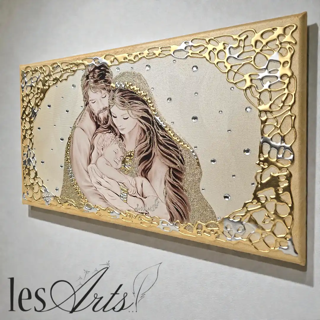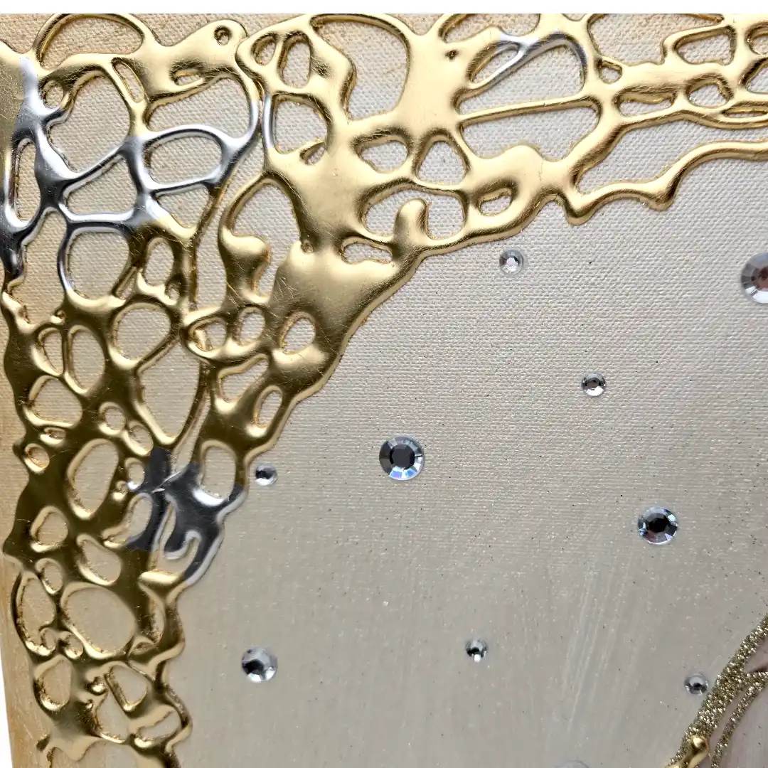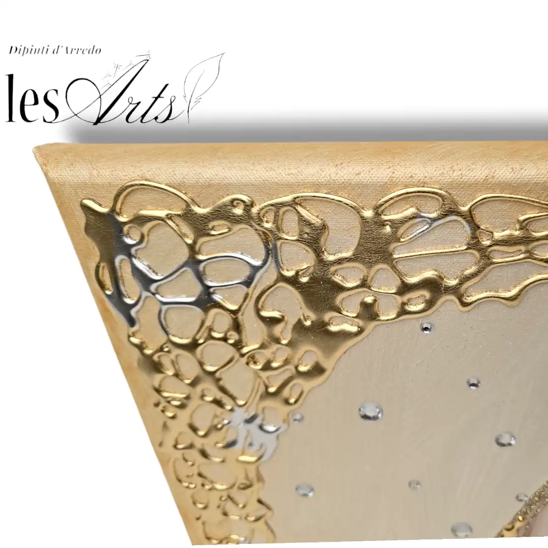 apezzale D'Arredo realizzato su tela gallery multi-materica, realizzato , dipinto e Decorato a mano Artigianalmente. Impreziosito da particolari a rilievo in foglia Oro e Argento, Glitter e Strass. I dipinti Les Arts sono realizzati mediante la scelta di materiali di altissima qualità e sono già pronti da appendere e fornite di attaccaglie per la posa in opera. Prodotto 100% made in italy Dimensioni tela gallery stondata cm : 100x60.