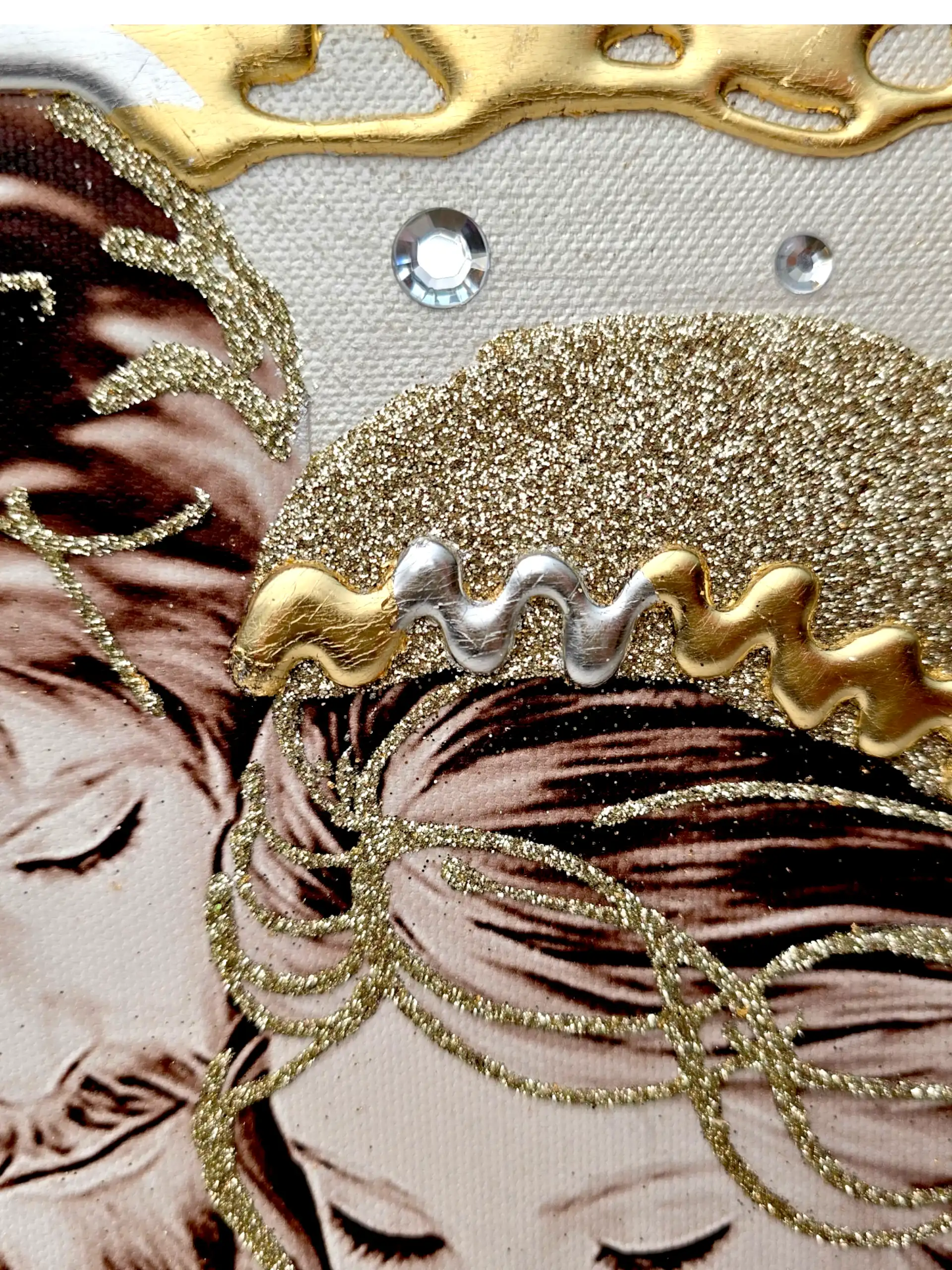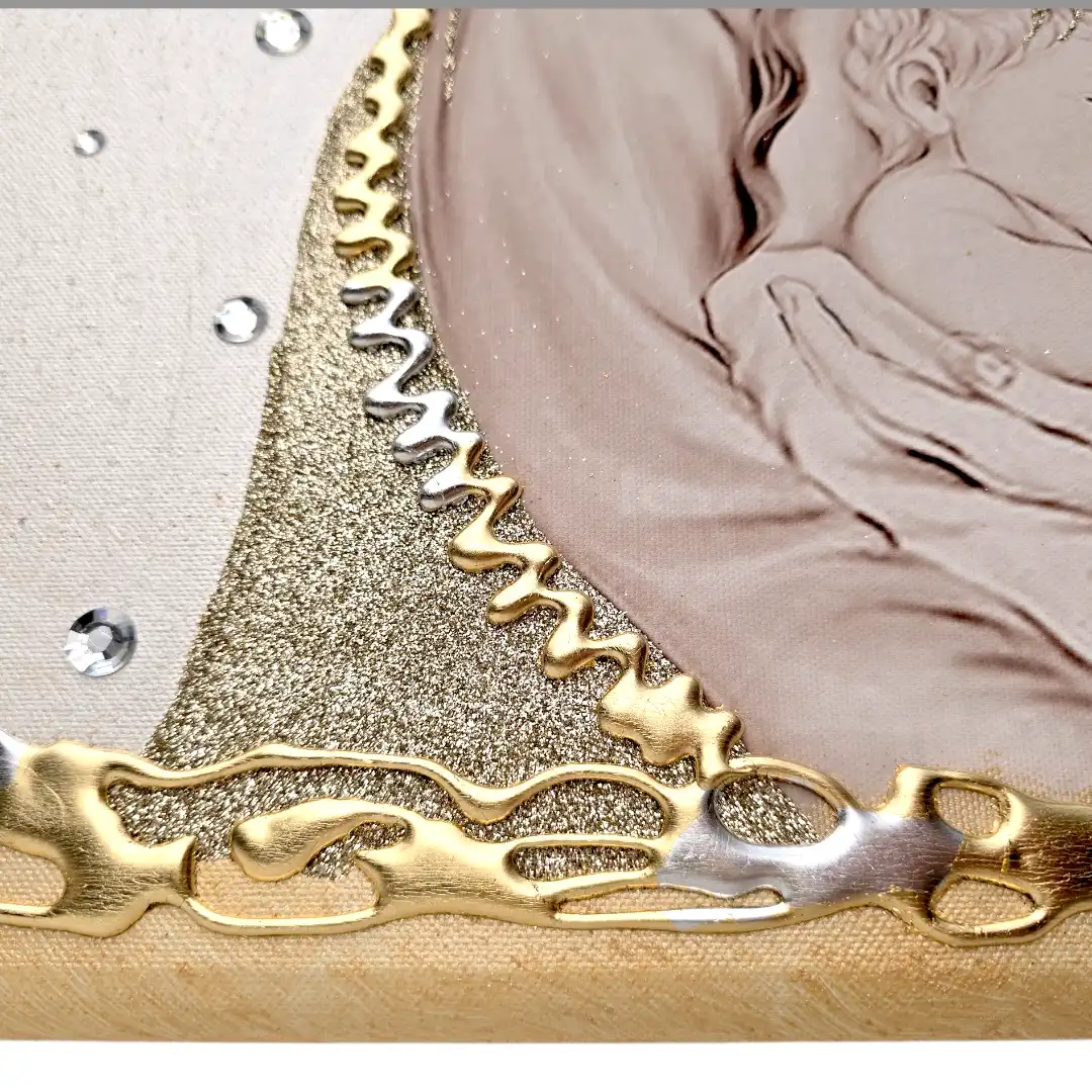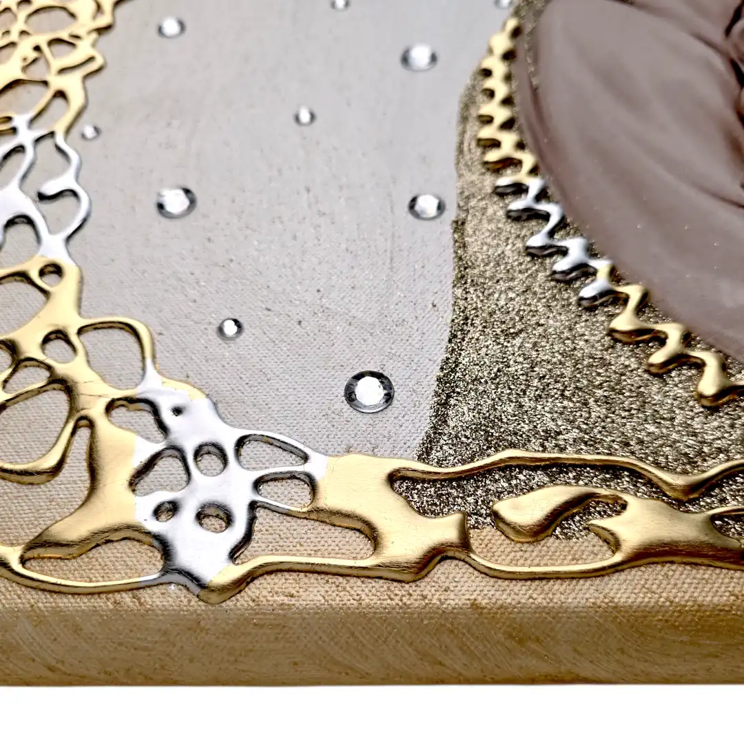 apezzale D'Arredo realizzato su tela gallery multi-materica, realizzato , dipinto e Decorato a mano Artigianalmente. Impreziosito da particolari a rilievo in foglia Oro e Argento, Glitter e Strass. I dipinti Les Arts sono realizzati mediante la scelta di materiali di altissima qualità e sono già pronti da appendere e fornite di attaccaglie per la posa in opera. Prodotto 100% made in italy Dimensioni tela gallery stondata cm : 100x60.