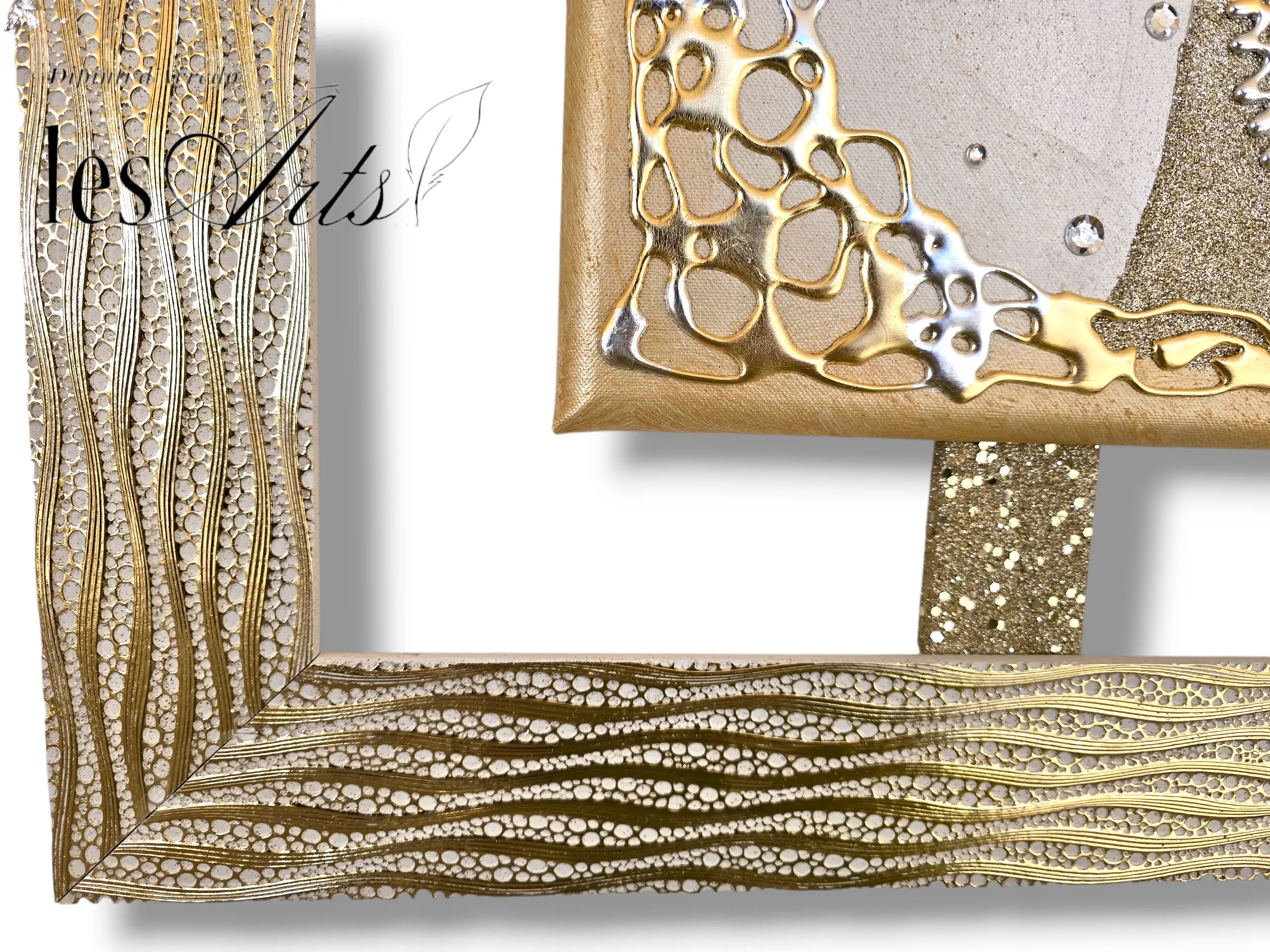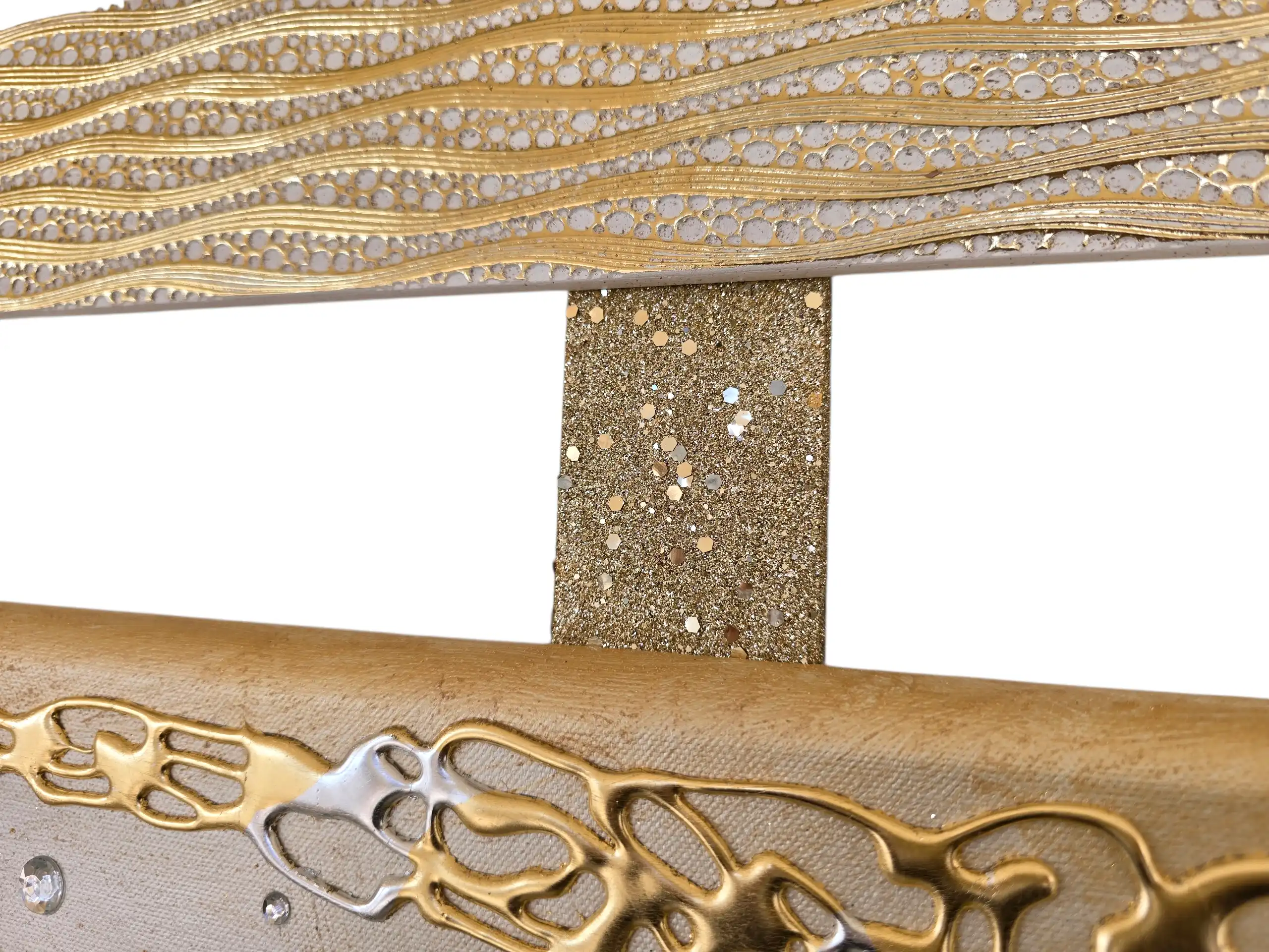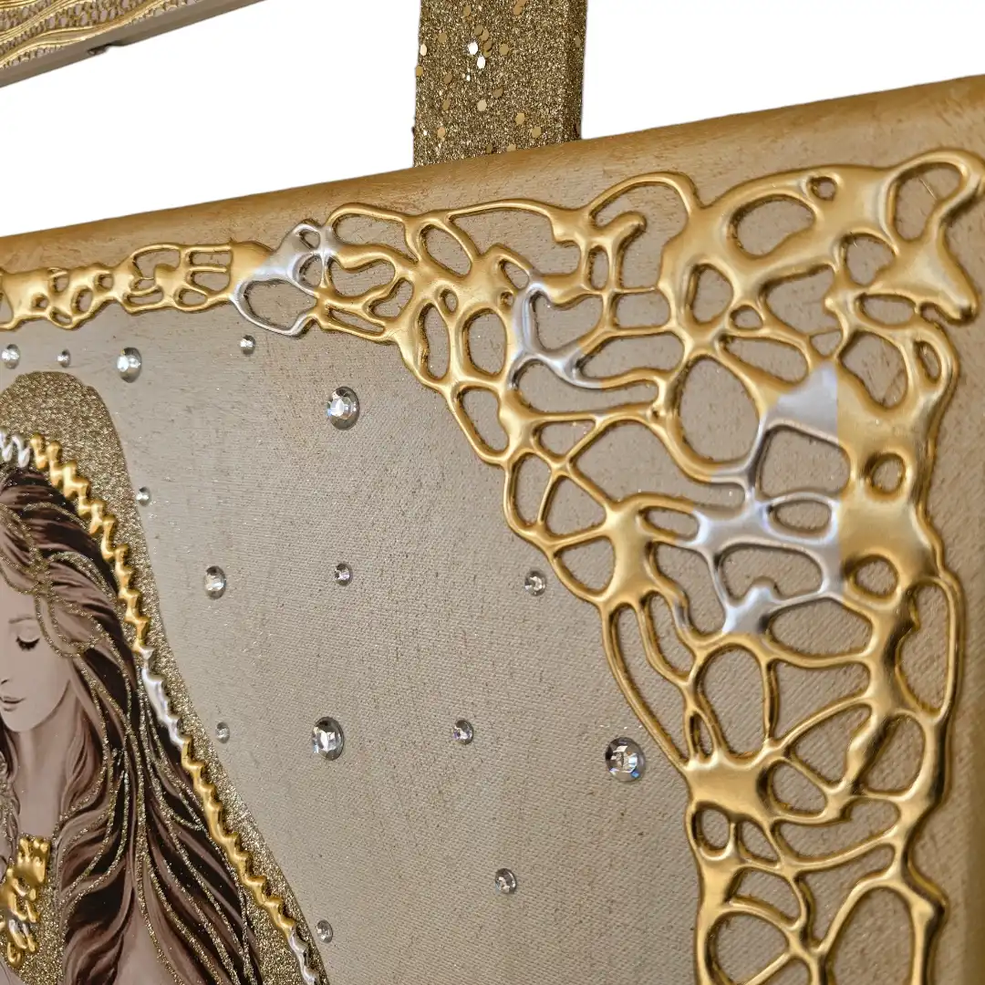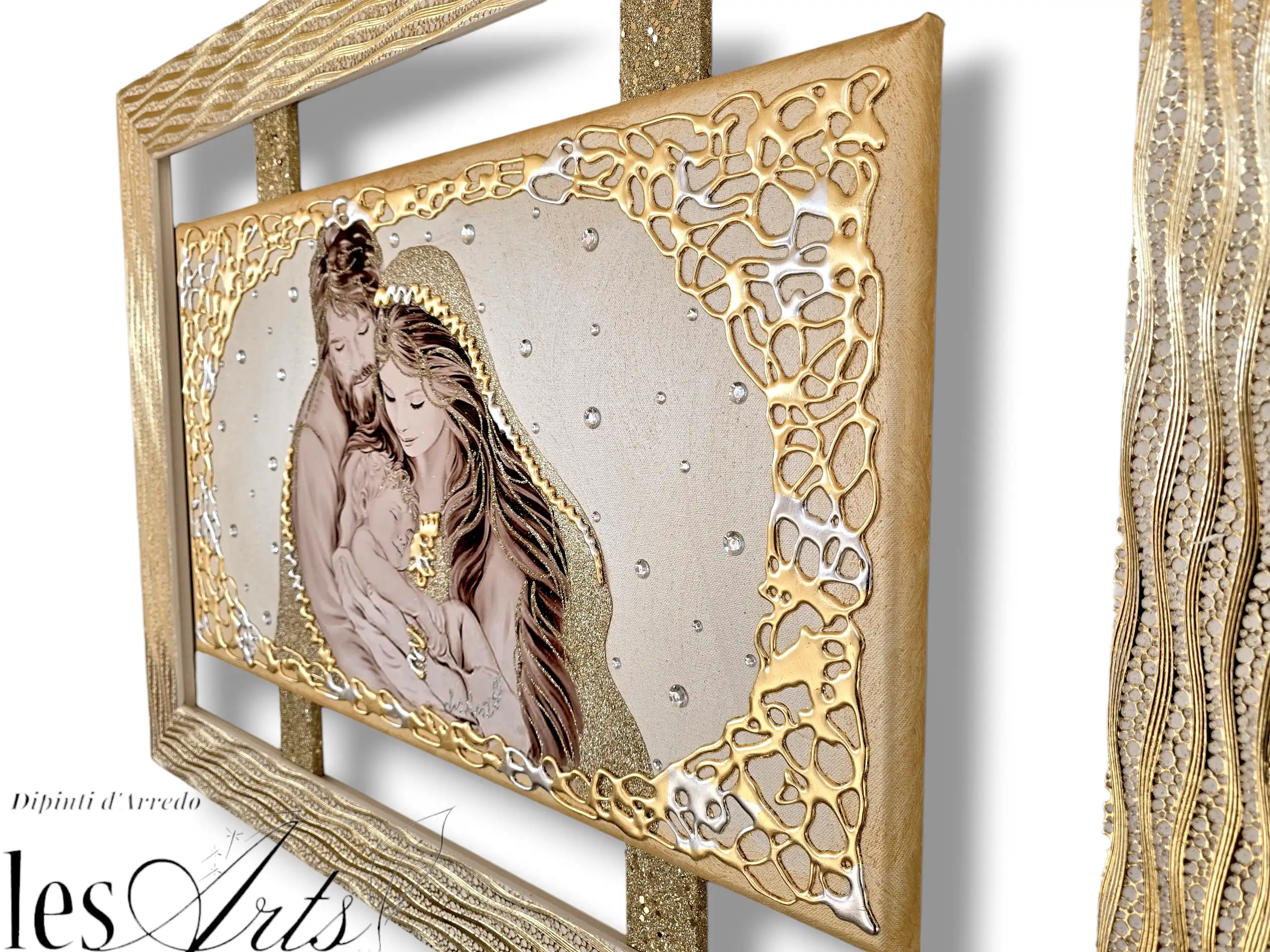 Impreziosita da particolari a rilievo in foglia oro e argento, Glitter e strass di varie dimensioni.