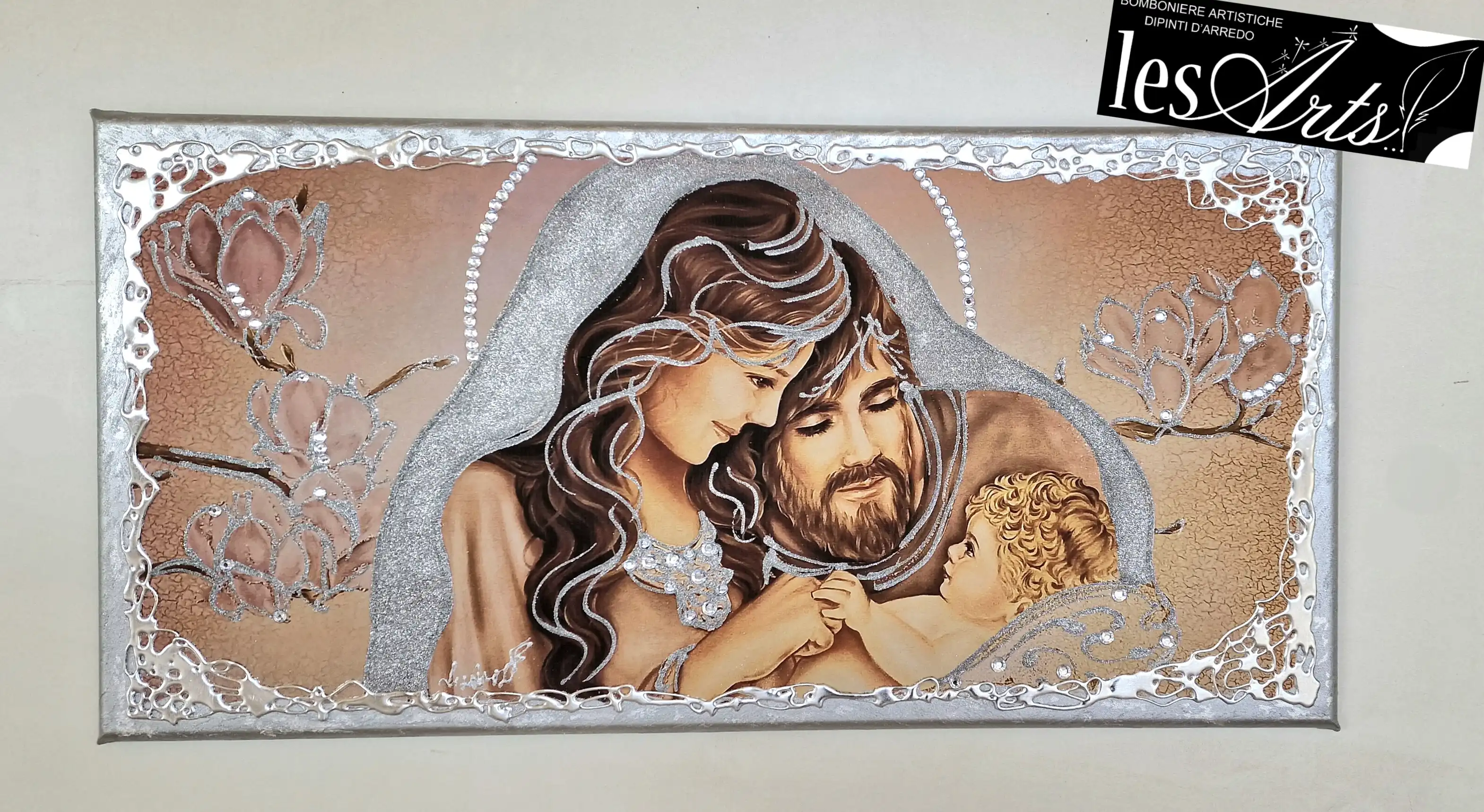 Maternità d'Arredo interamente realizzata e decorata a mano su tela Gallery stondata misura 100x50.