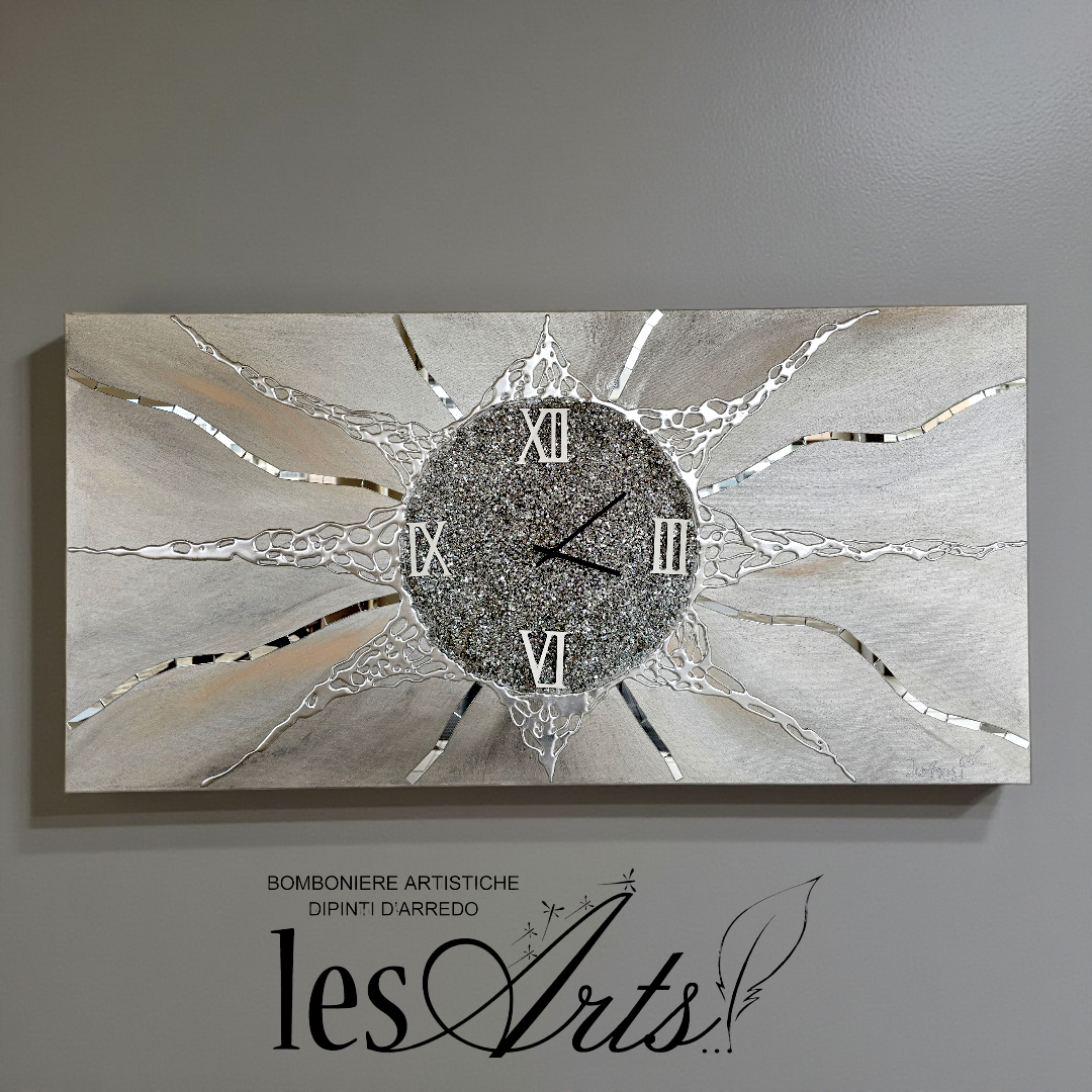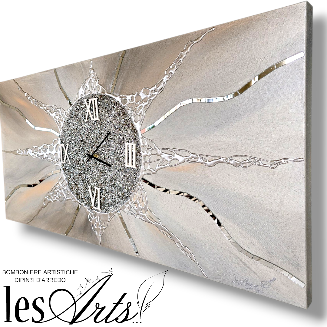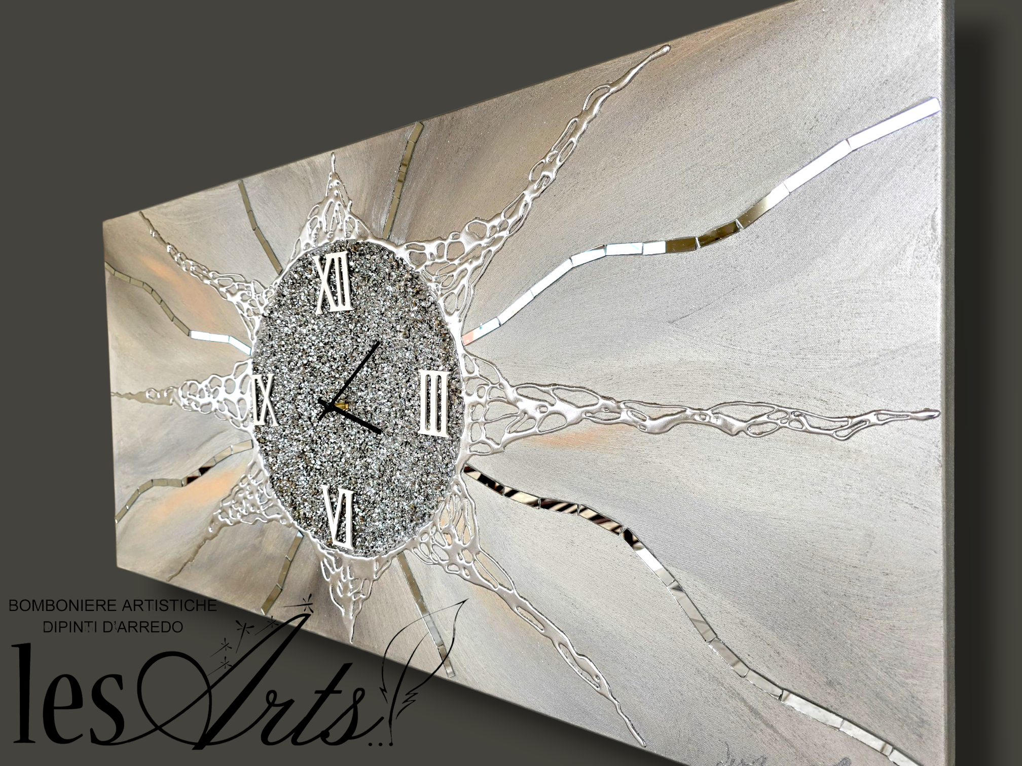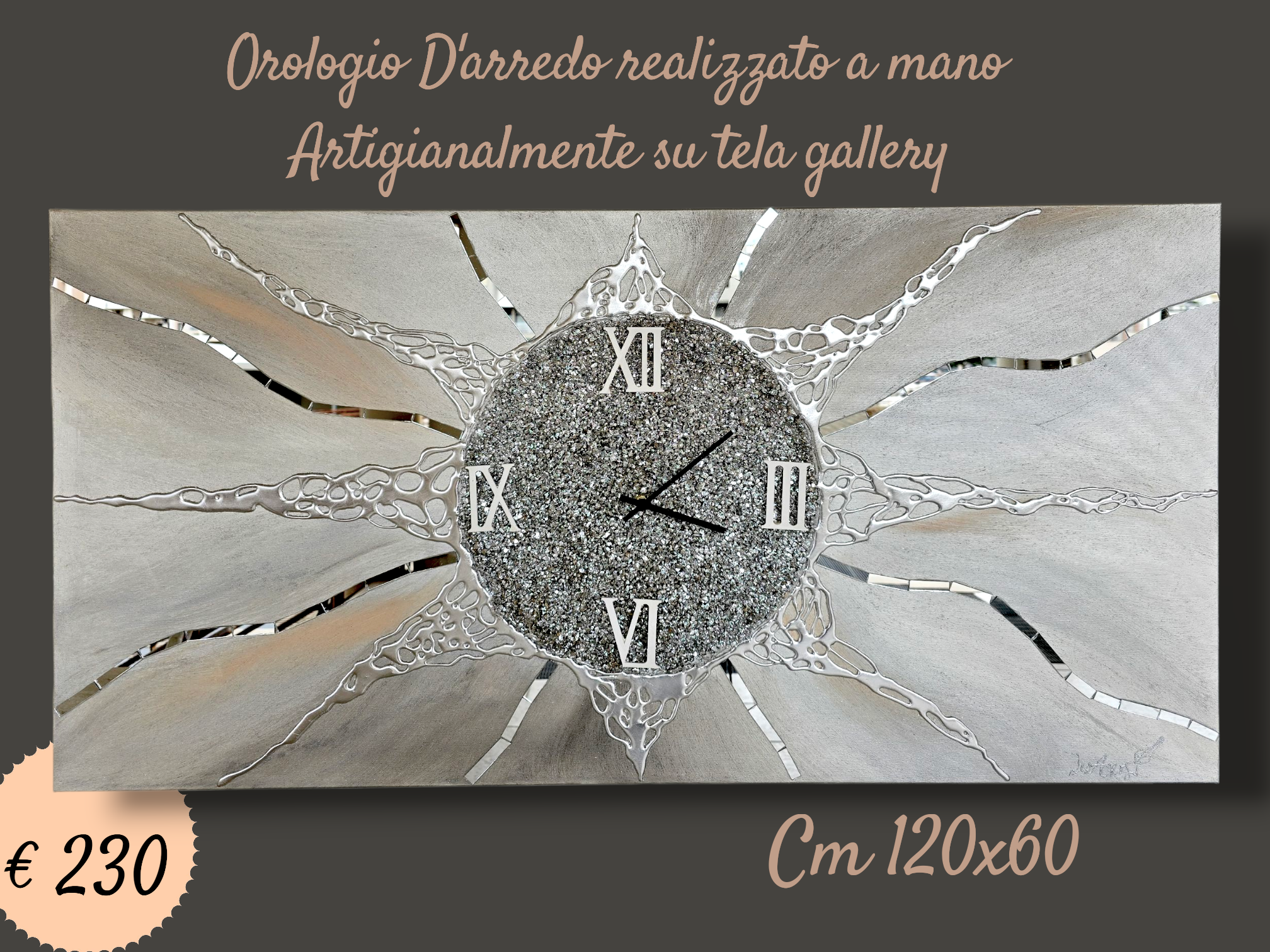Orologio D'Arredo realizzato su tela multi-materica, creato, realizzato, e Decorato a mano Artigianalmente.