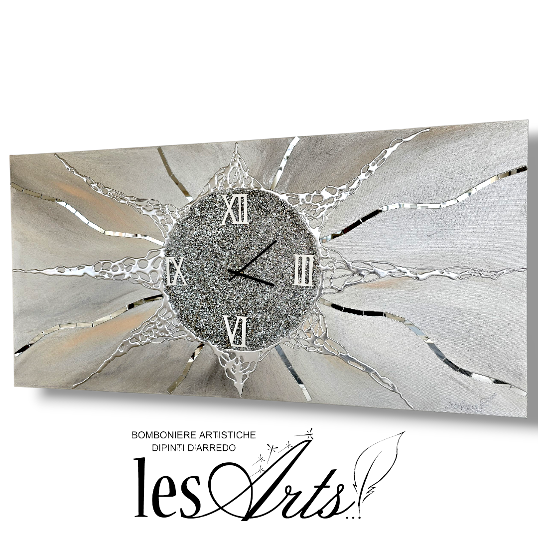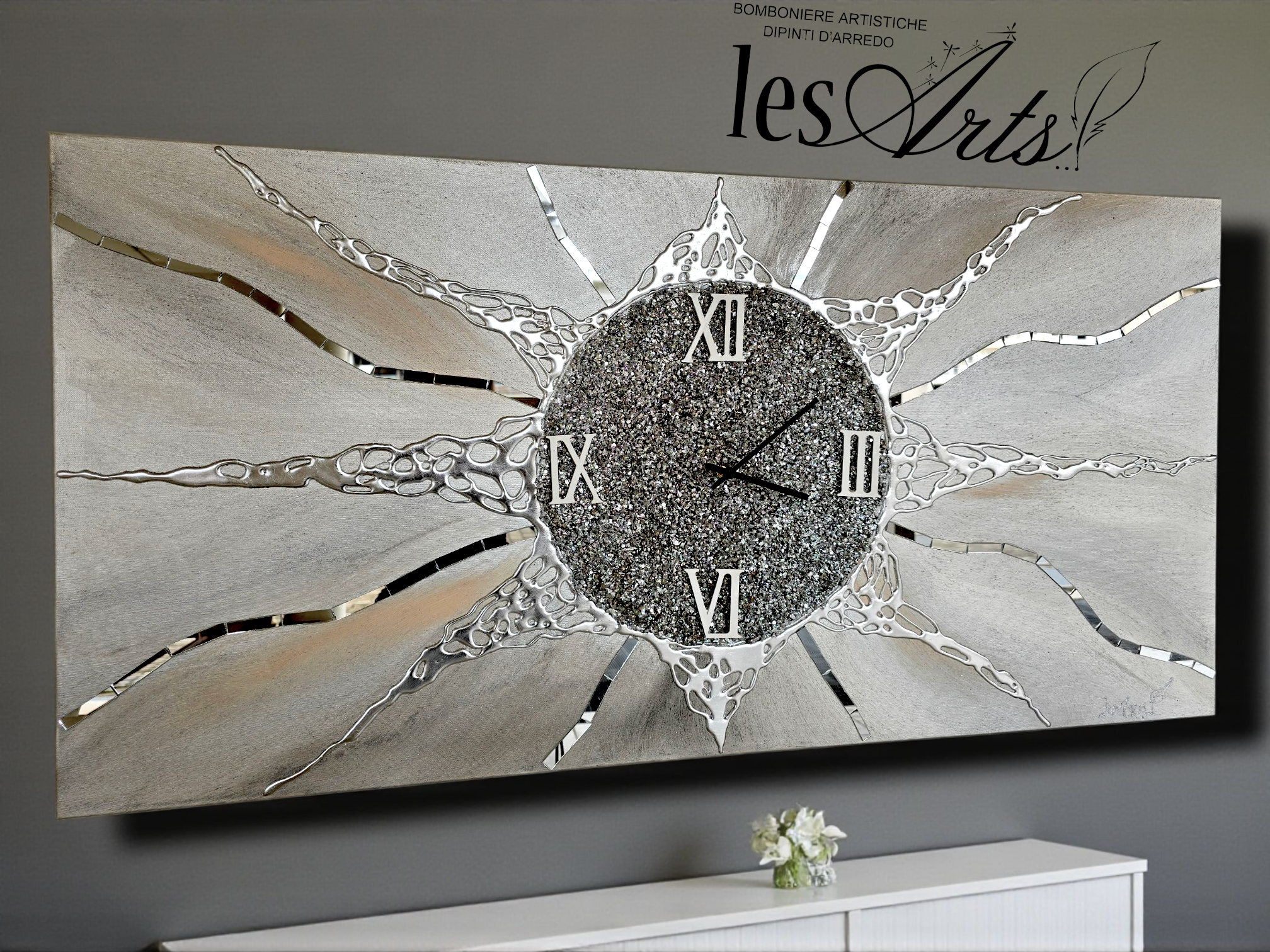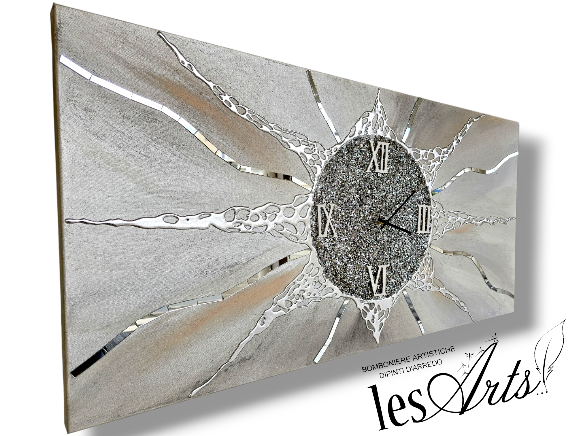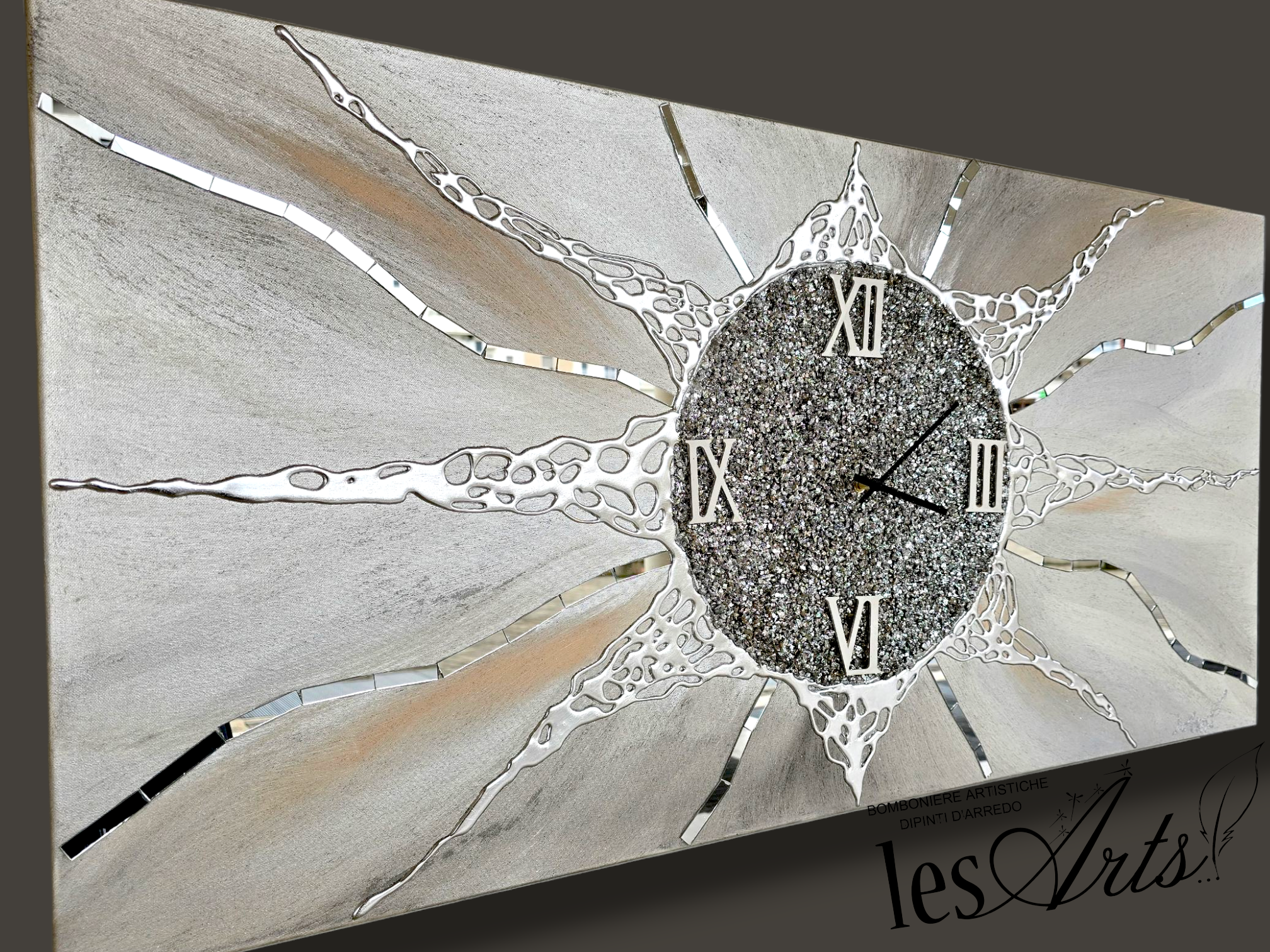 Orologio D'Arredo realizzato su tela multi-materica, creato, realizzato, e Decorato a mano Artigianalmente.