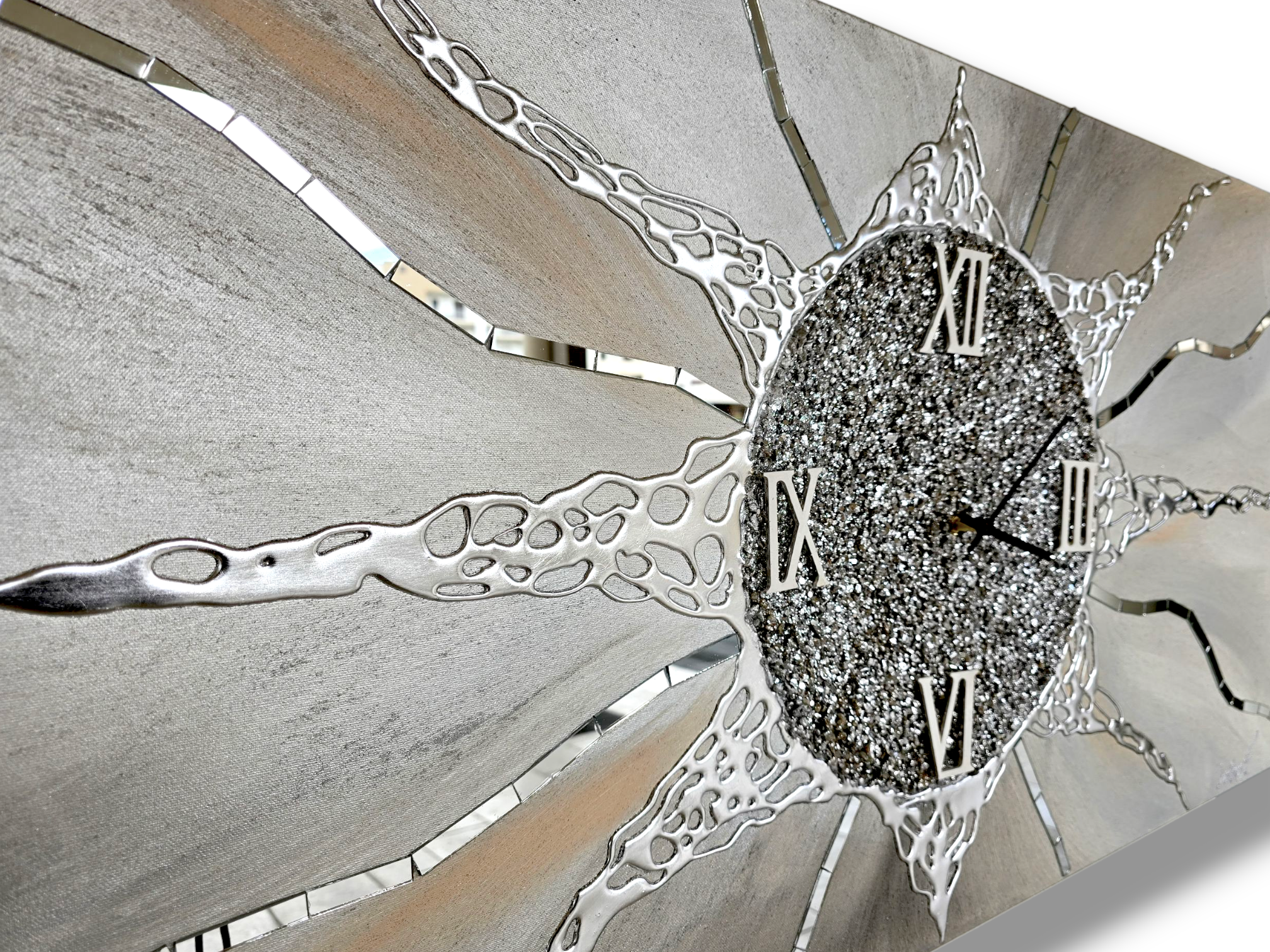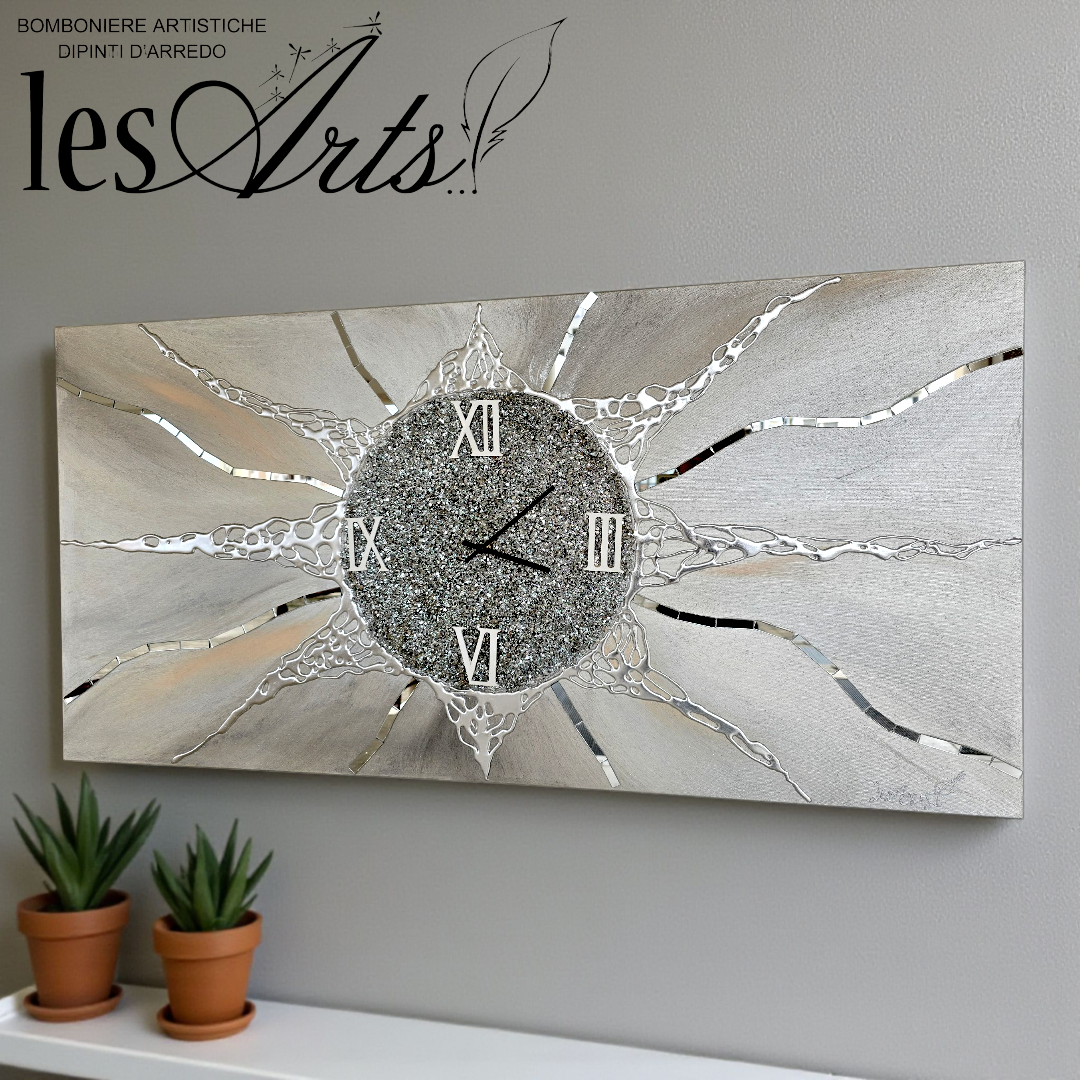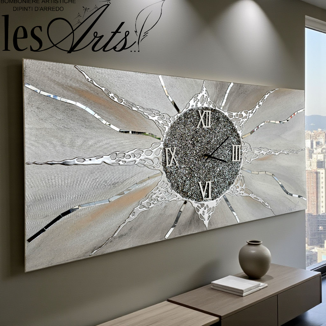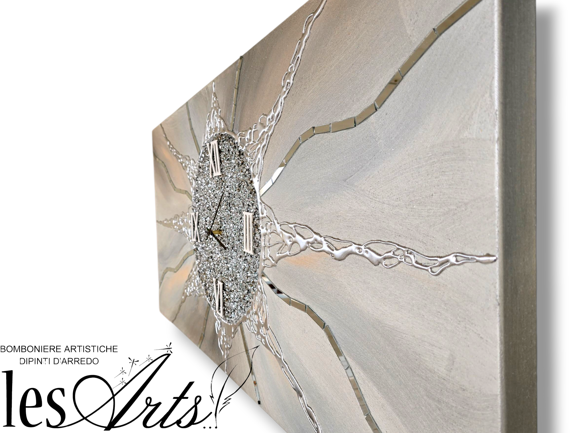 Orologio D'Arredo realizzato su tela multi-materica, creato, realizzato, e Decorato a mano Artigianalmente.