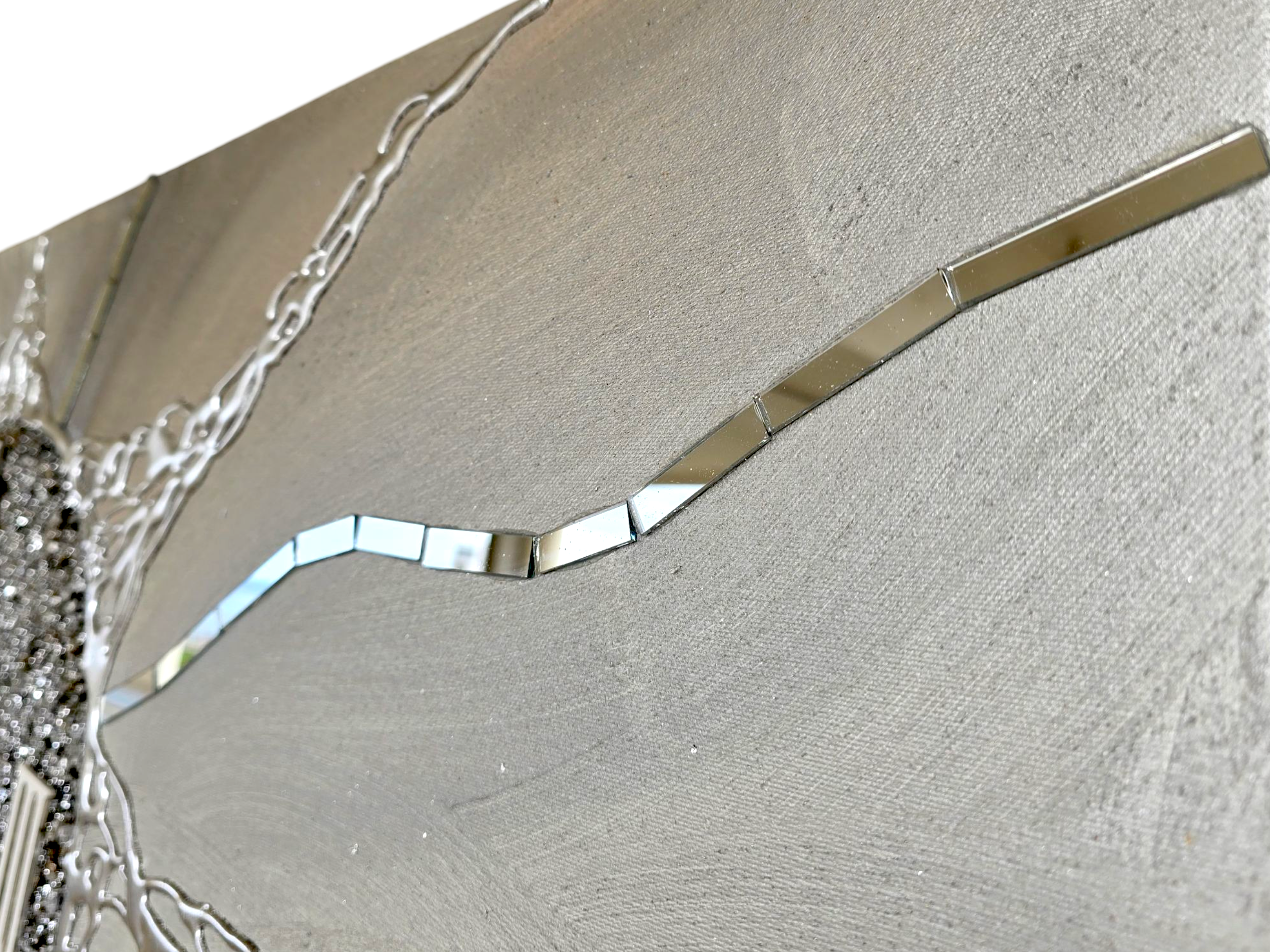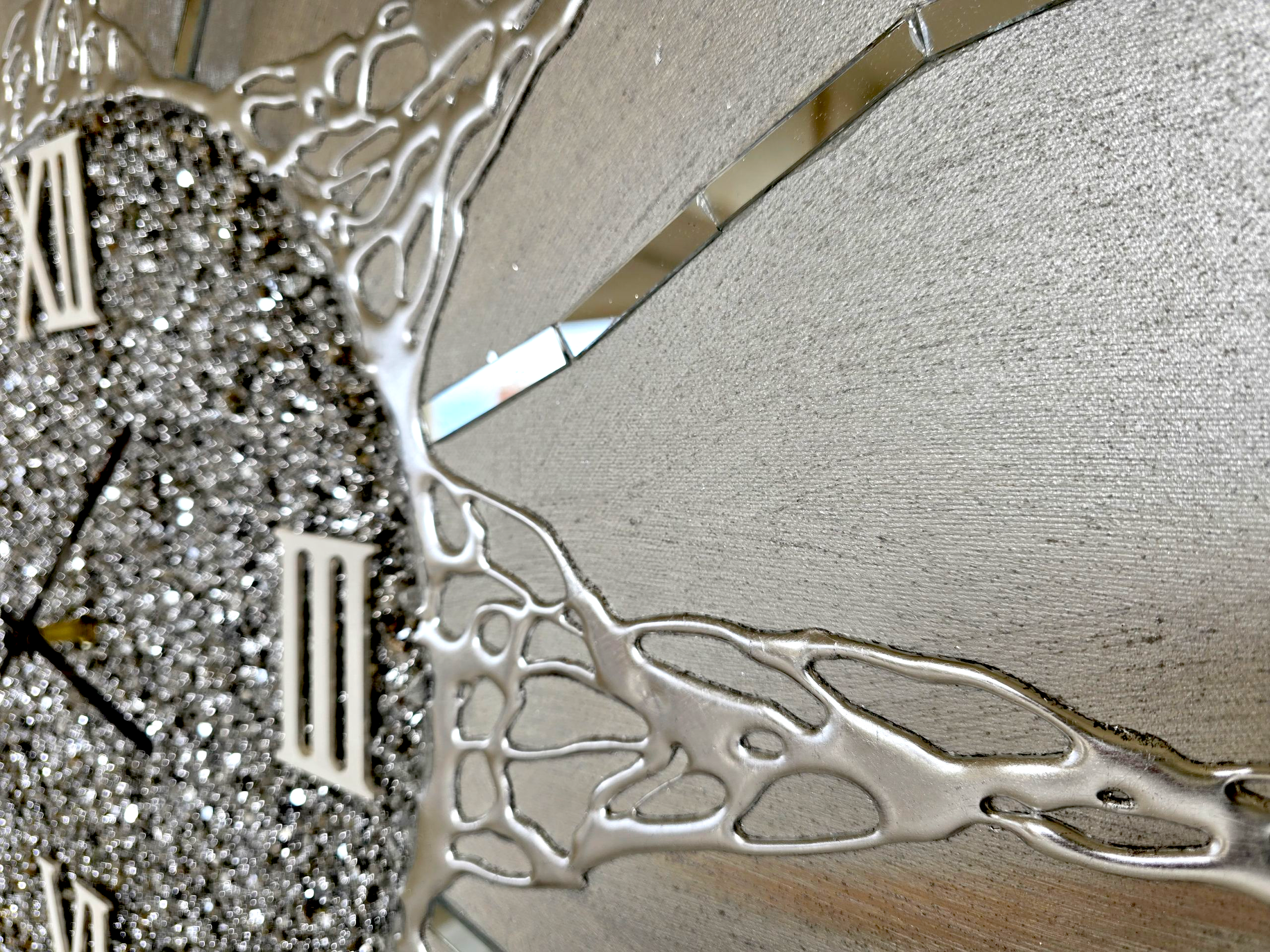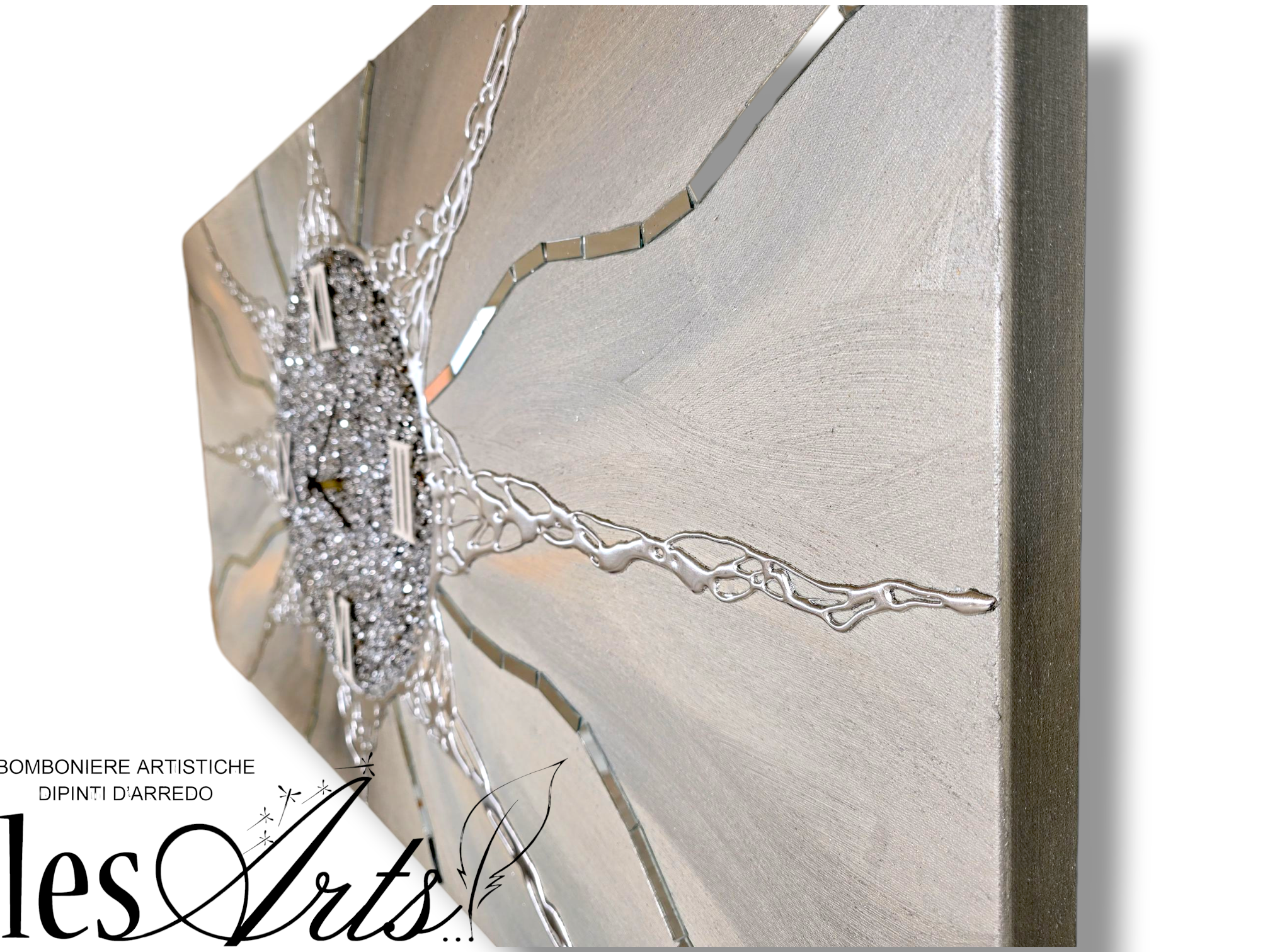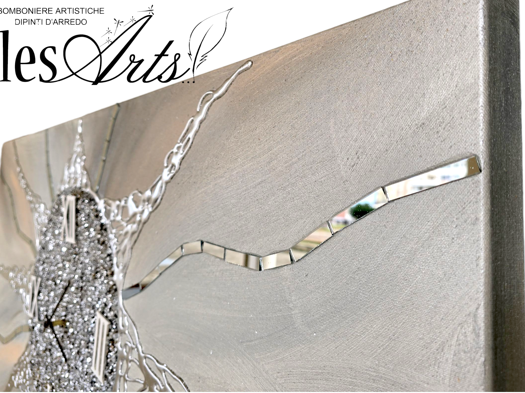 Impreziosito da particolari a rilievo in foglia Argento, Pietre decorative glitterate e Specchietti.