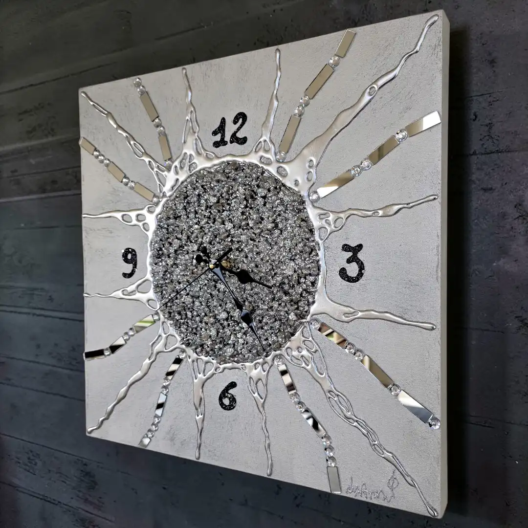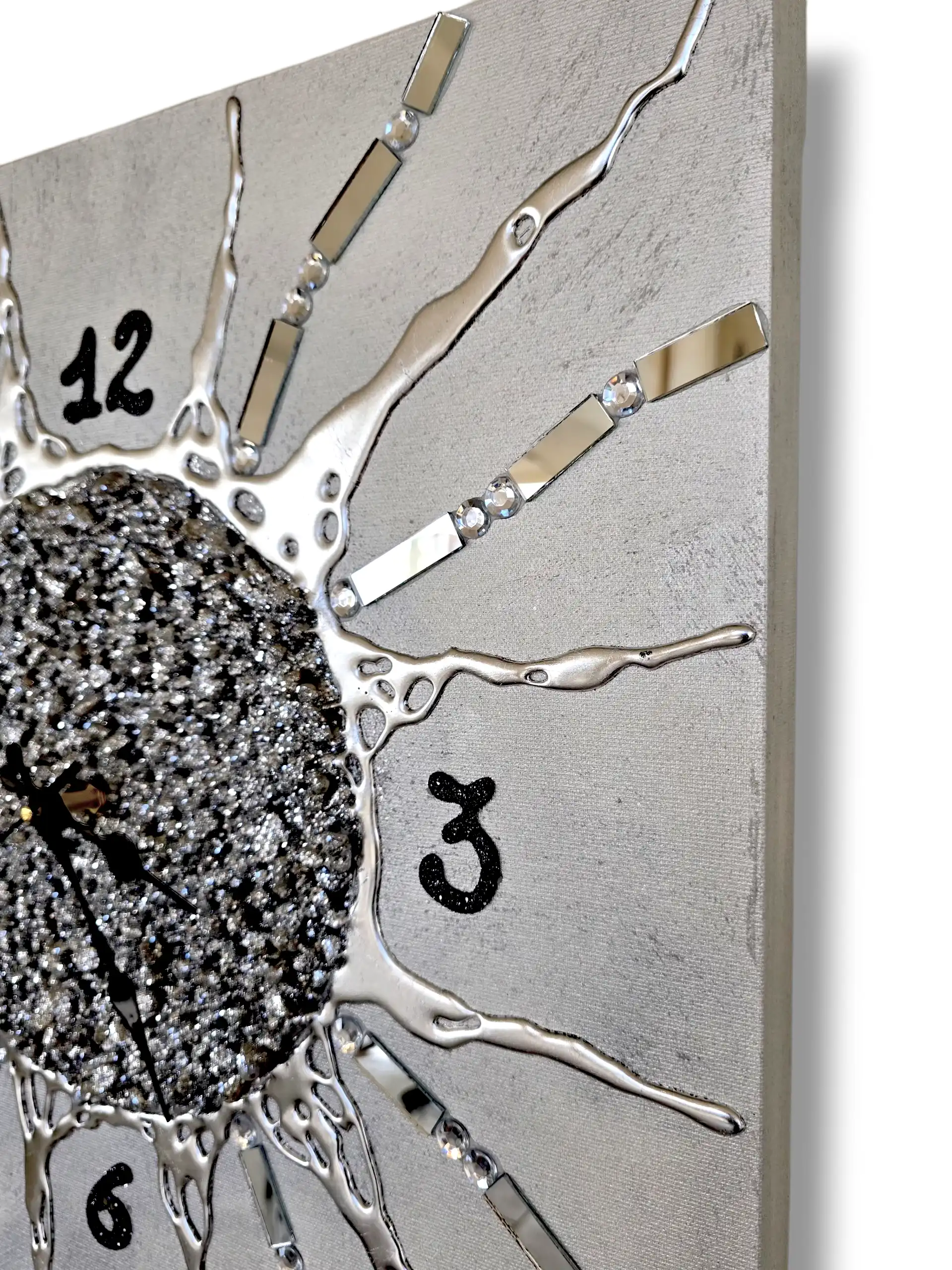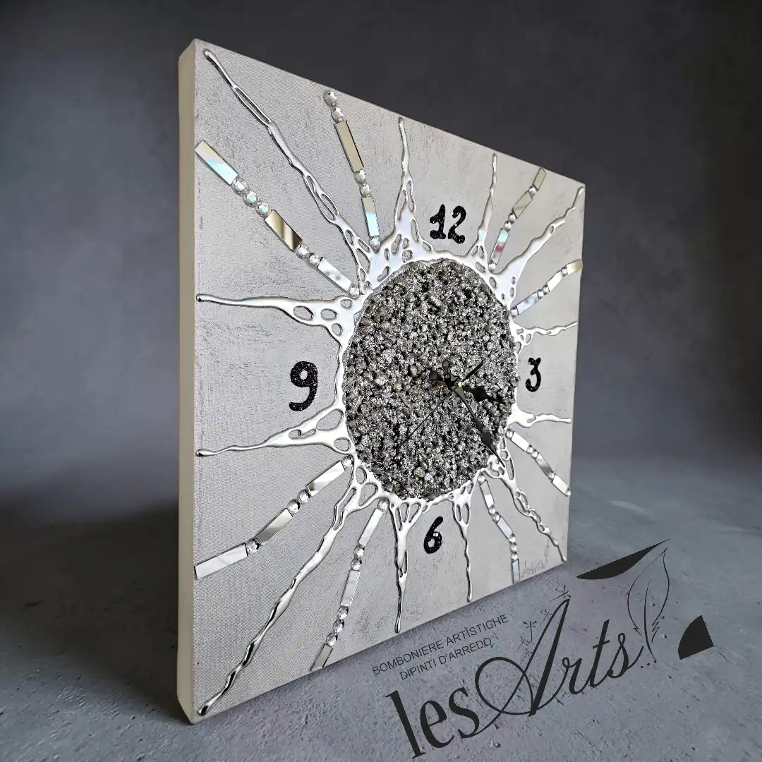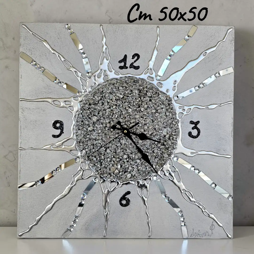 Orologio D'Arredo realizzato su tela gallery multi-materica, realizzato , dipinto e Decorato a mano Artigianalmente.