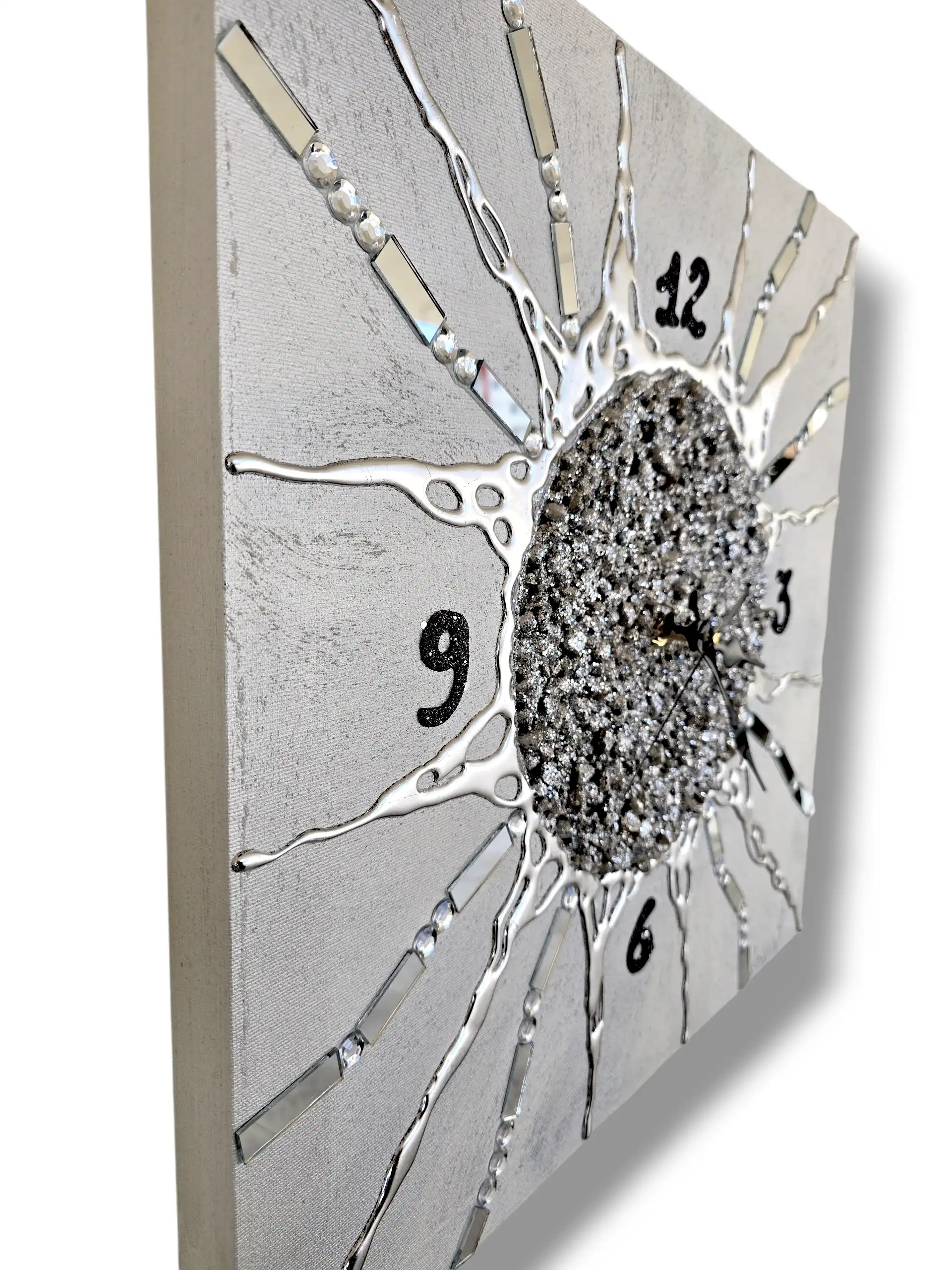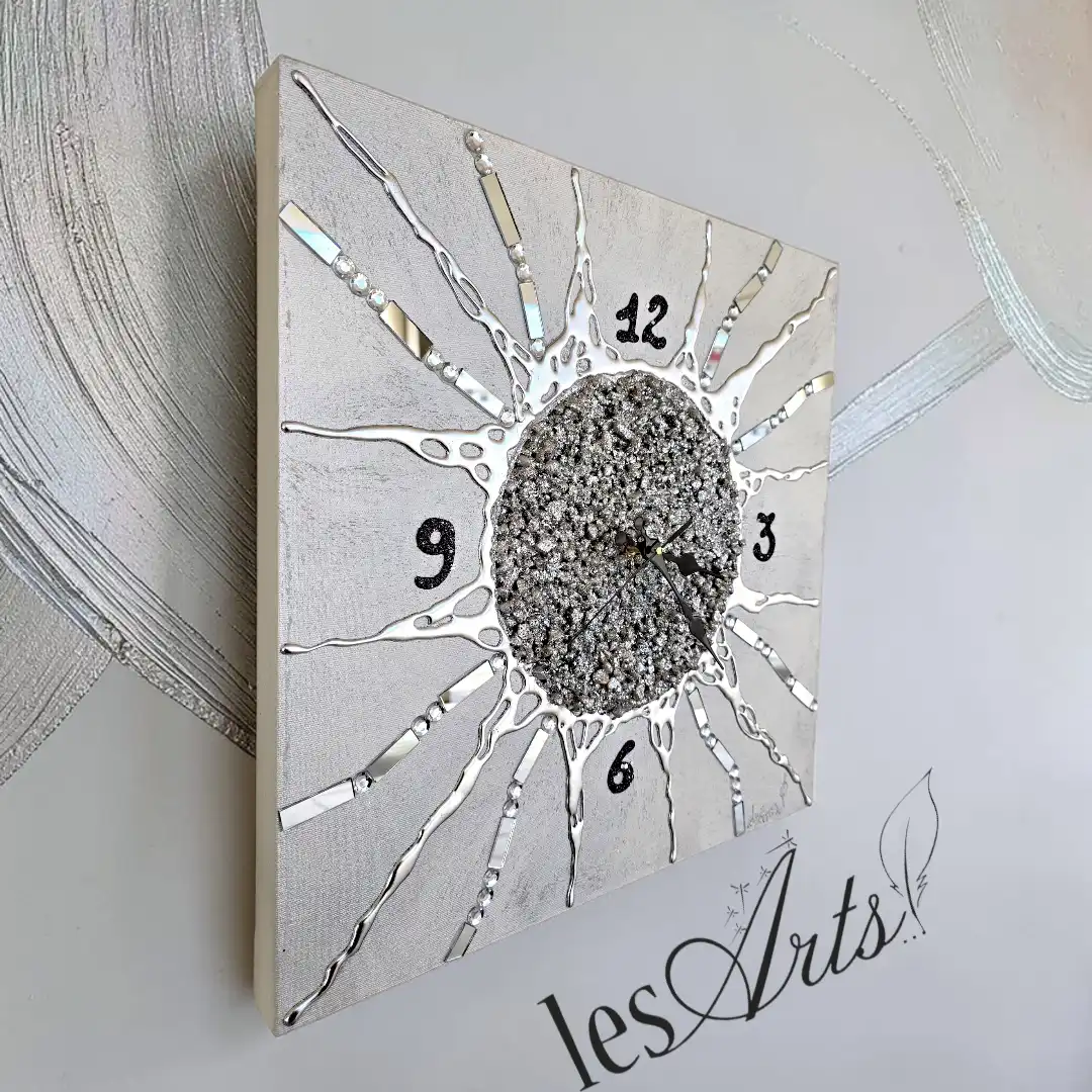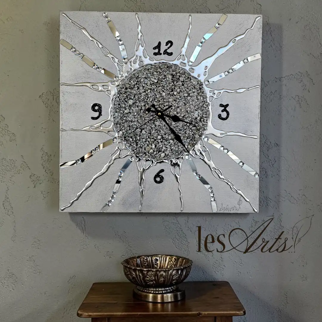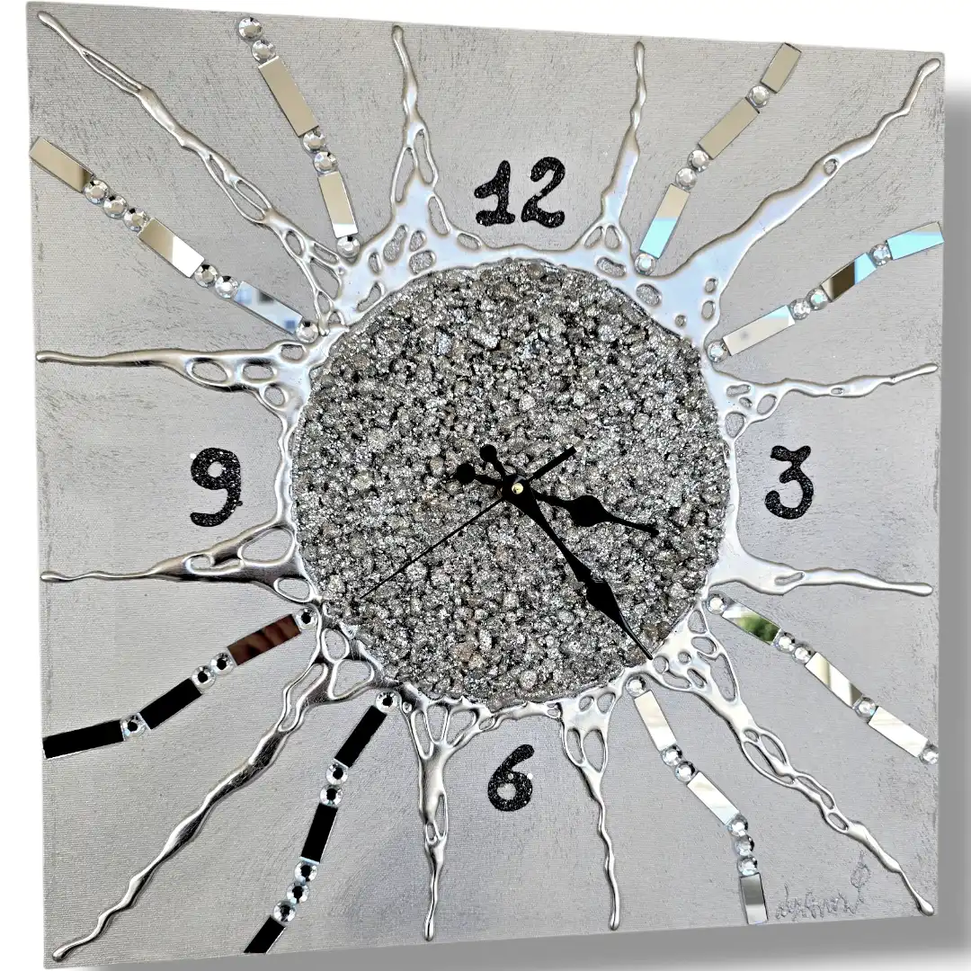 Orologio D'Arredo realizzato su tela gallery multi-materica, realizzato , dipinto e Decorato a mano Artigianalmente.