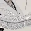 Impreziosito da inserti in legno arricchiti da pietre decorative e particolari in foglia argento e strass