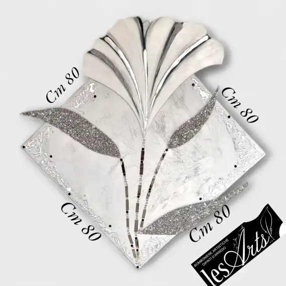 Impreziosito da inserti in legno arricchiti da pietre decorative, particolari in foglia argento, glitter, strass e specchietti.