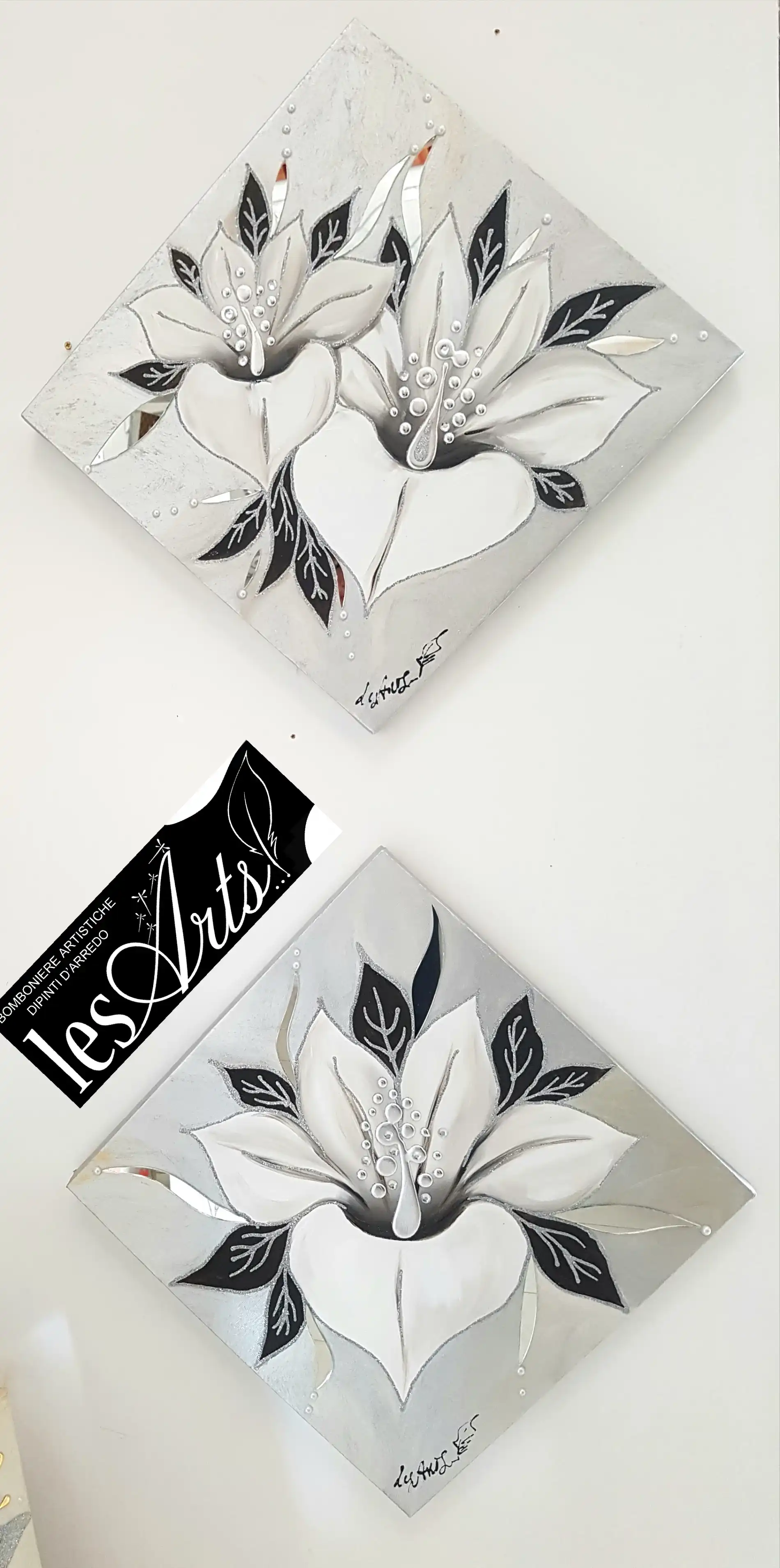 Scomposto d'arredo interamente realizzato dipinto e decorato a mano su 2 tele gallery misura 40x40 l'una.