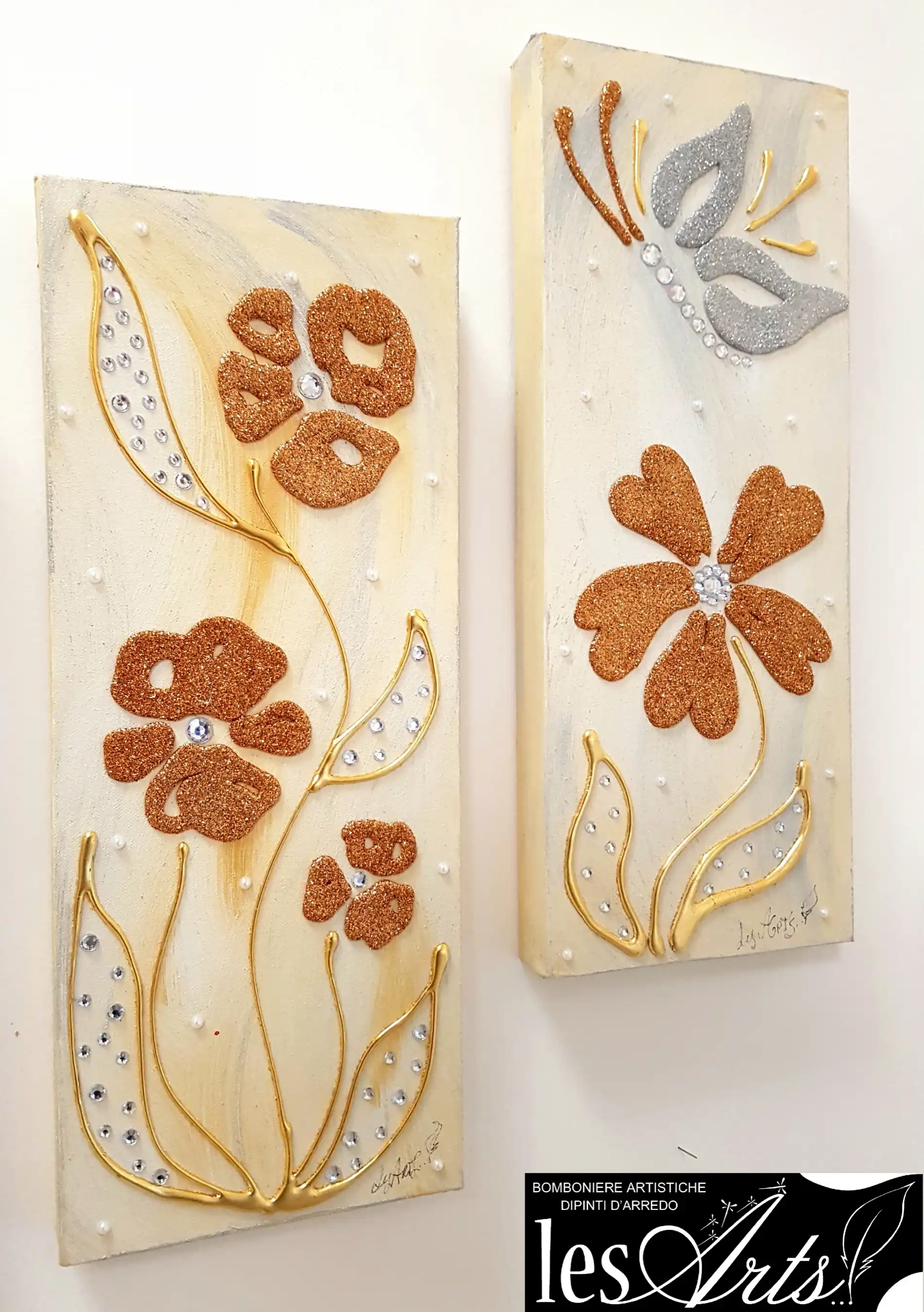 Impreziosite da Particolari in foglia oro, glitter e strass.