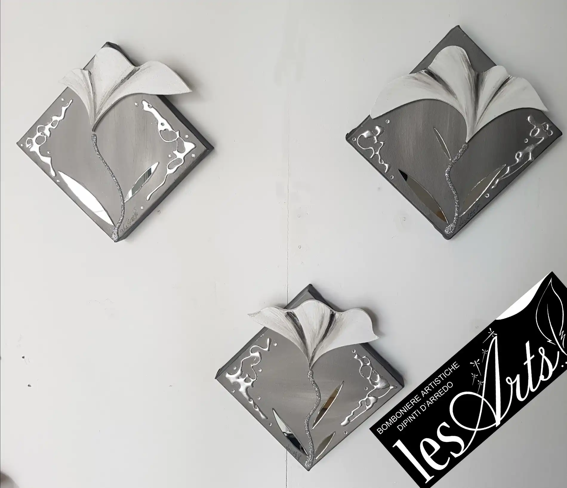 Trittico d'arredo interamente realizzato dipinto e decorato a mano su 3 tele gallery misura cm 20x20 l'una.